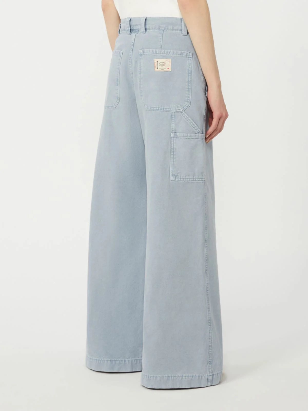 Pantalone wide leg, caratterizzato da dettagli workwear e tasche carpenter sulla gamba.