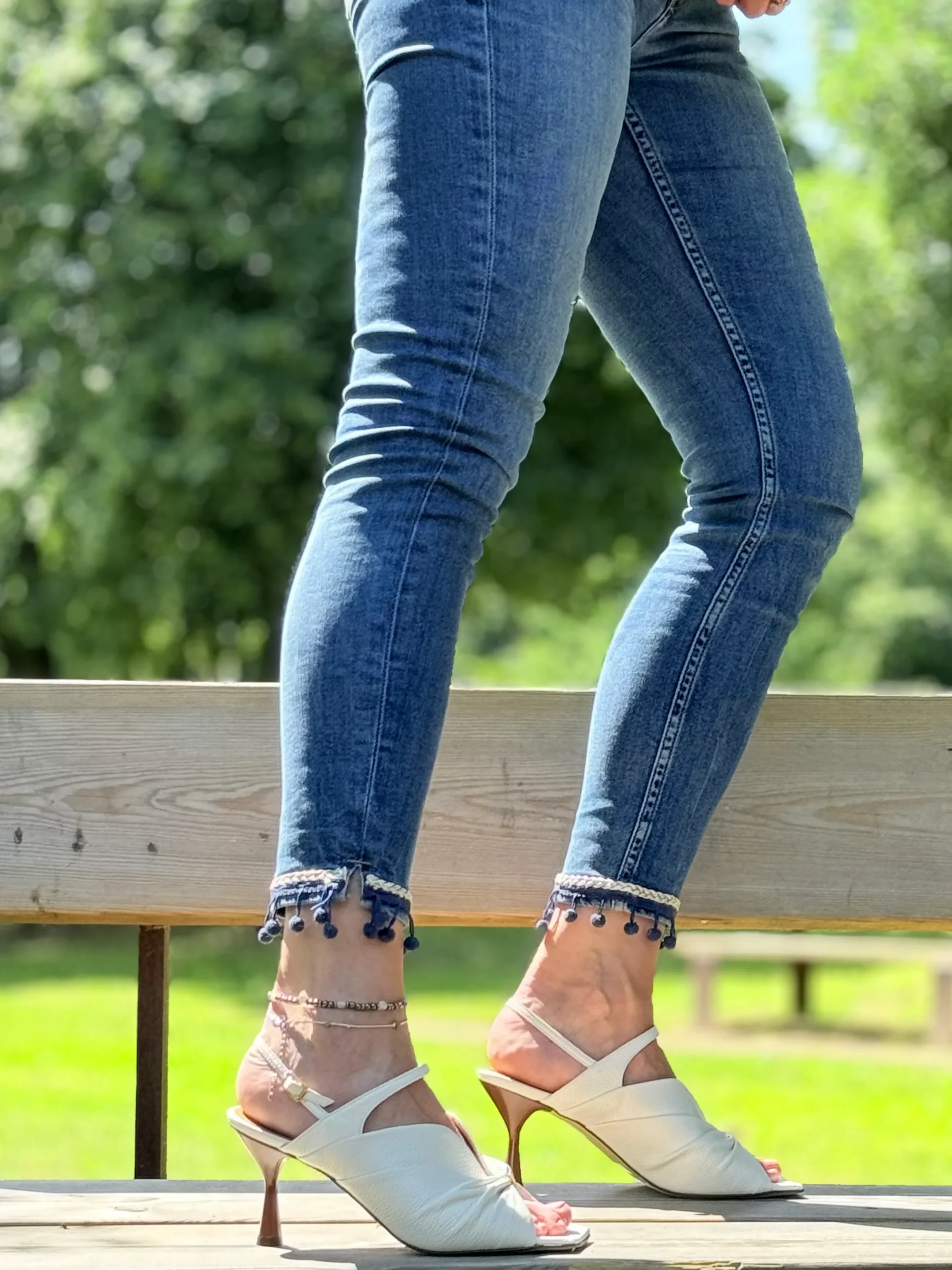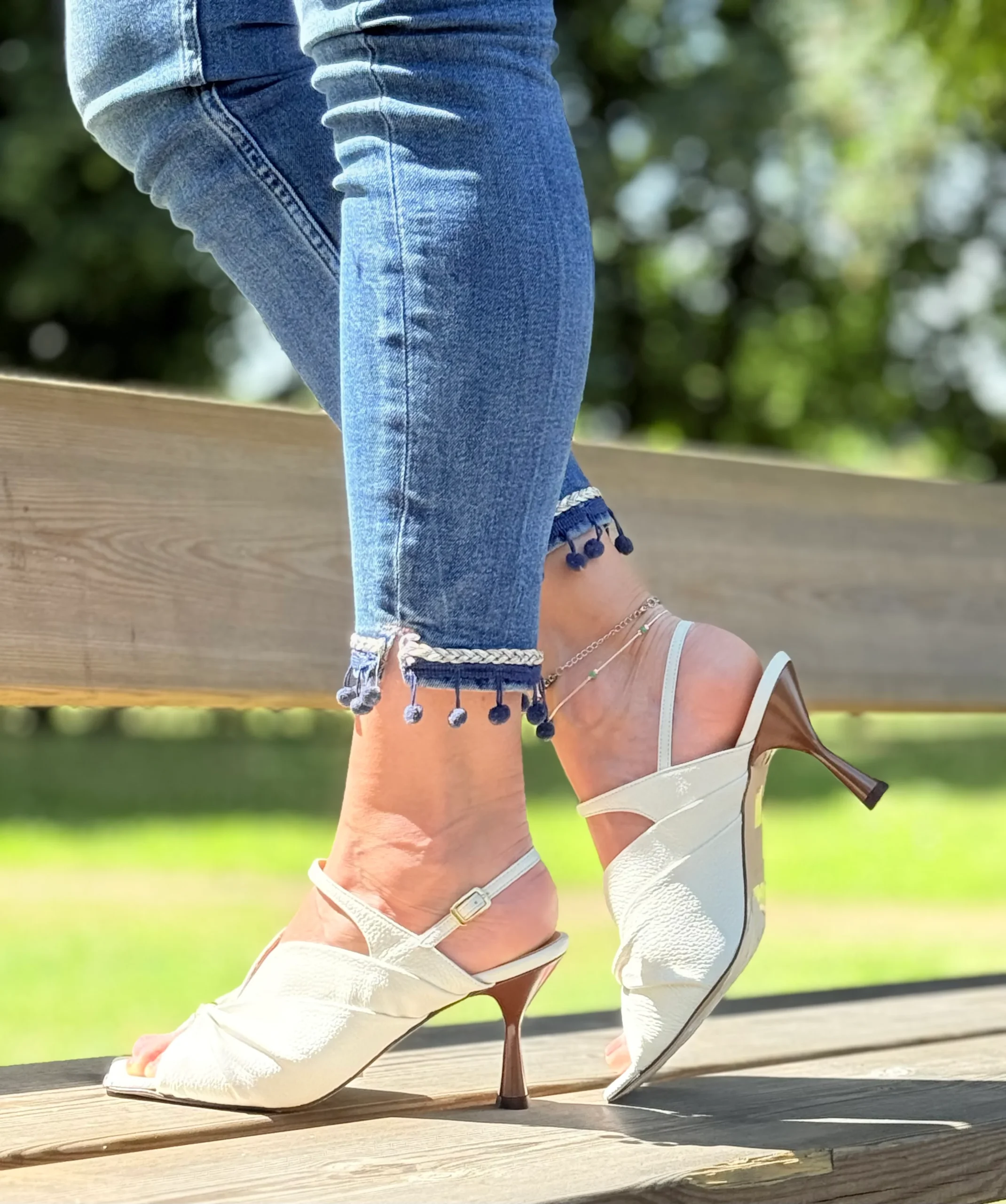 Un sandalo dal fascino delicato, in nappa color panna, con punta squadrata e tacco slanciato da 8 cm che valorizza la silhouette senza rinunciare al comfort.