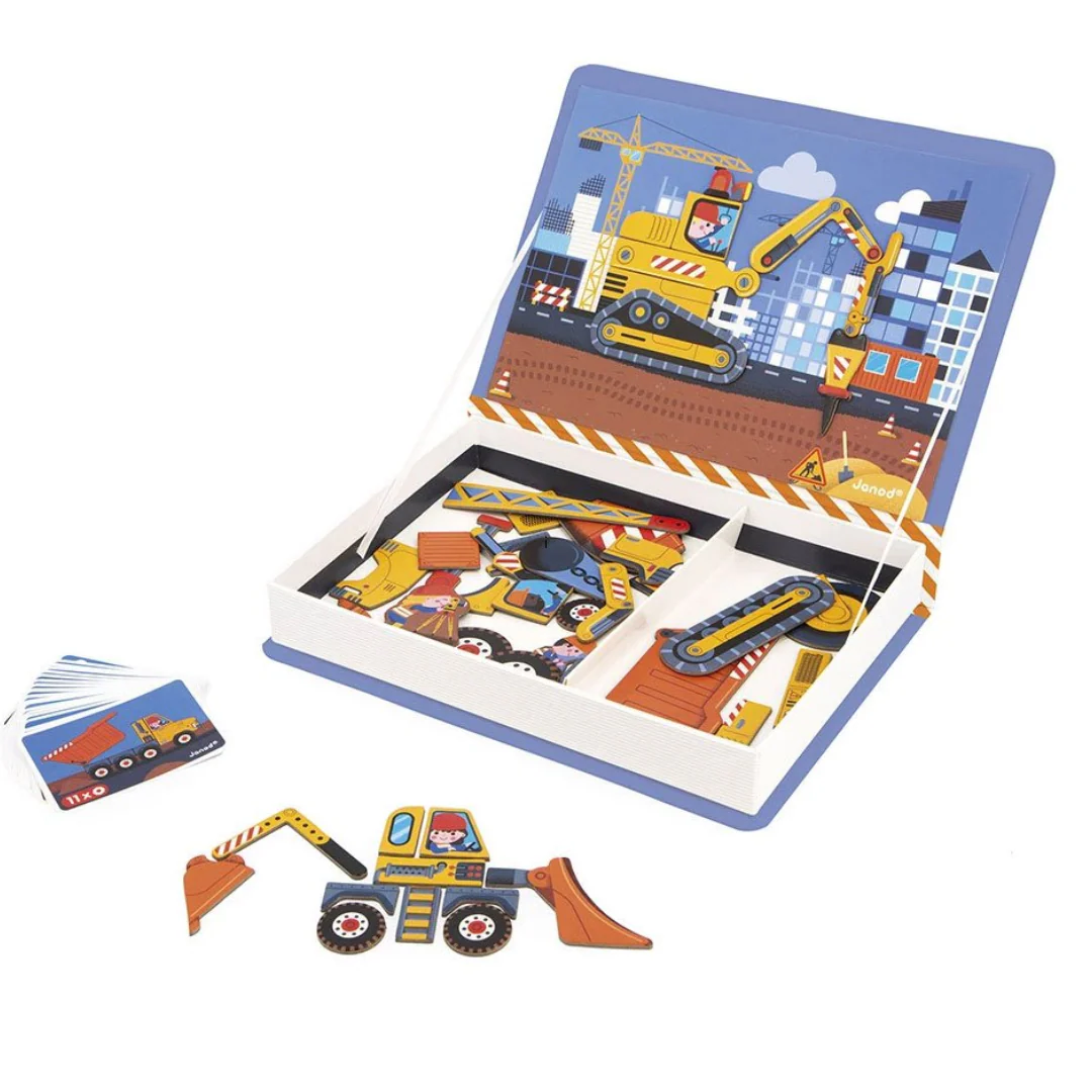 Crea e scopri il mondo dei veicoli con il Magneti’Book Ruspe del Cantiere di Janod! Questo gioco magnetico è perfetto per stimolare la creatività dei bambini dai 3 agli 8 anni, permettendo loro di costruire automobili, aerei, elicotteri ed escavatori grazie ai pezzi magnetici inclusi.