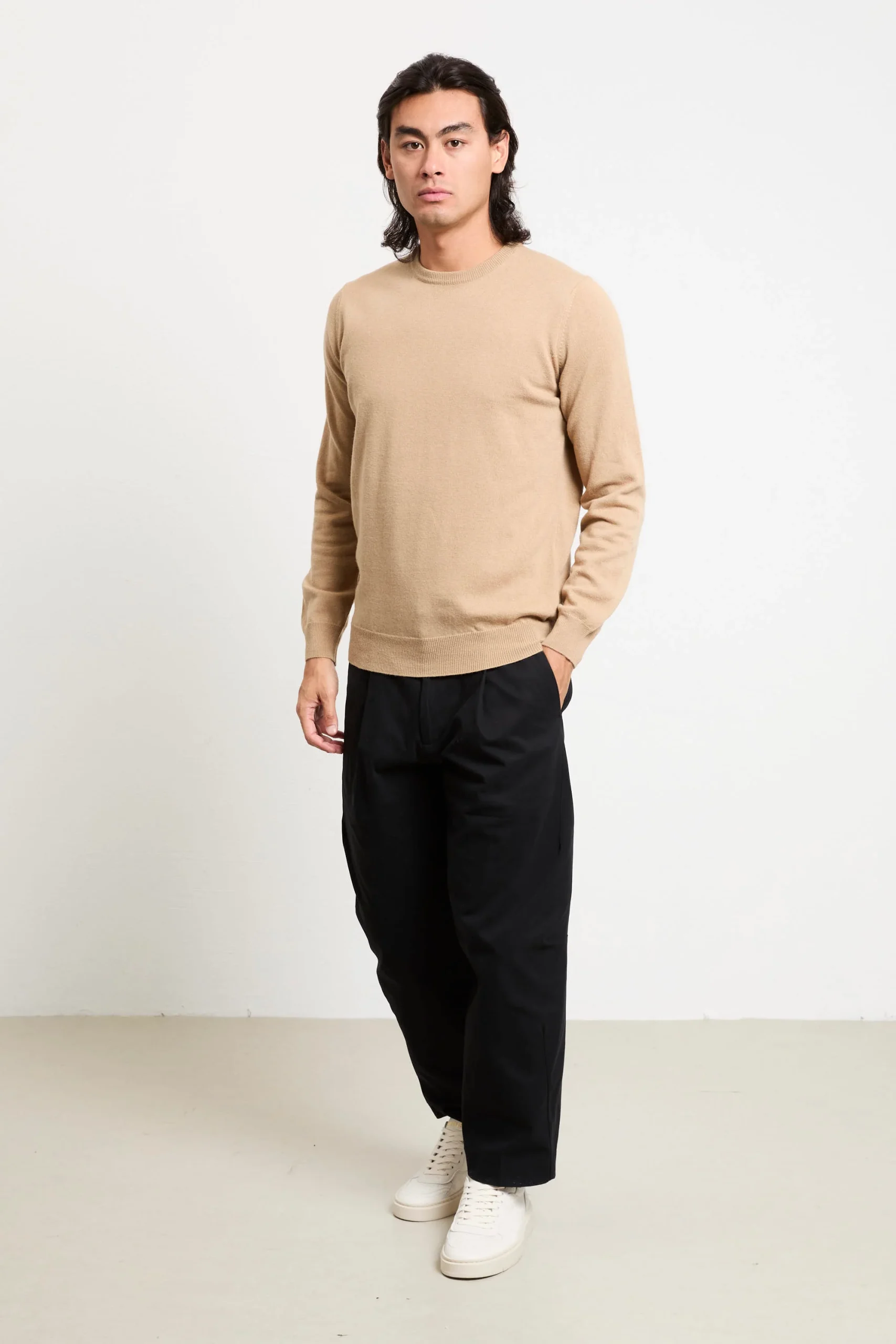 Un capo caldo e sofisticato, perfetto per affrontare l’inverno con stile. Il colore sabbia si abbina splendidamente a pantaloni in lana panna o neri, mentre un cappotto blu navy o una giacca in pelle completano un look elegante e contemporaneo. Ideale per l’ufficio, cene informali o weekend in città , dona un tocco di classe senza tempo a ogni outfit.