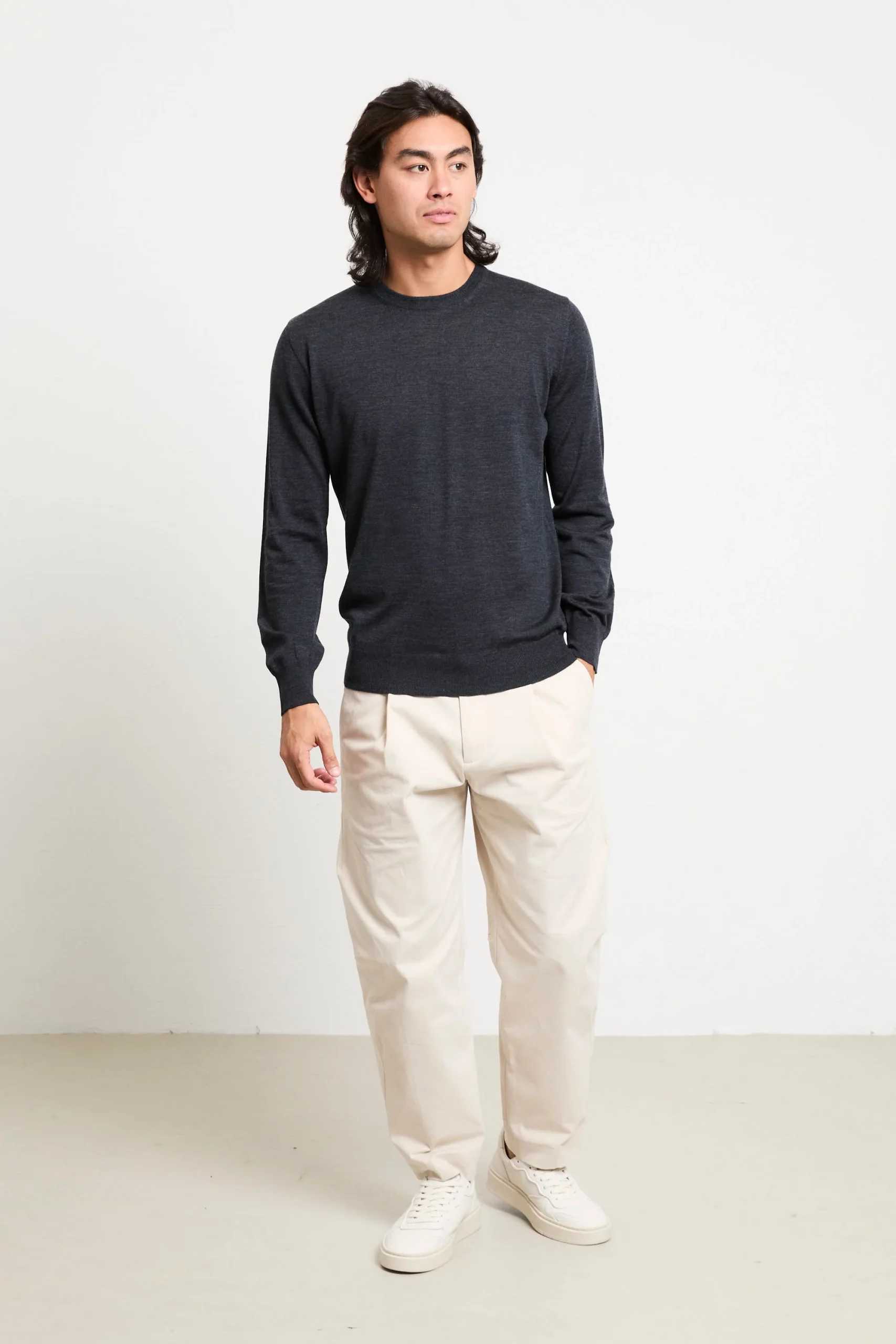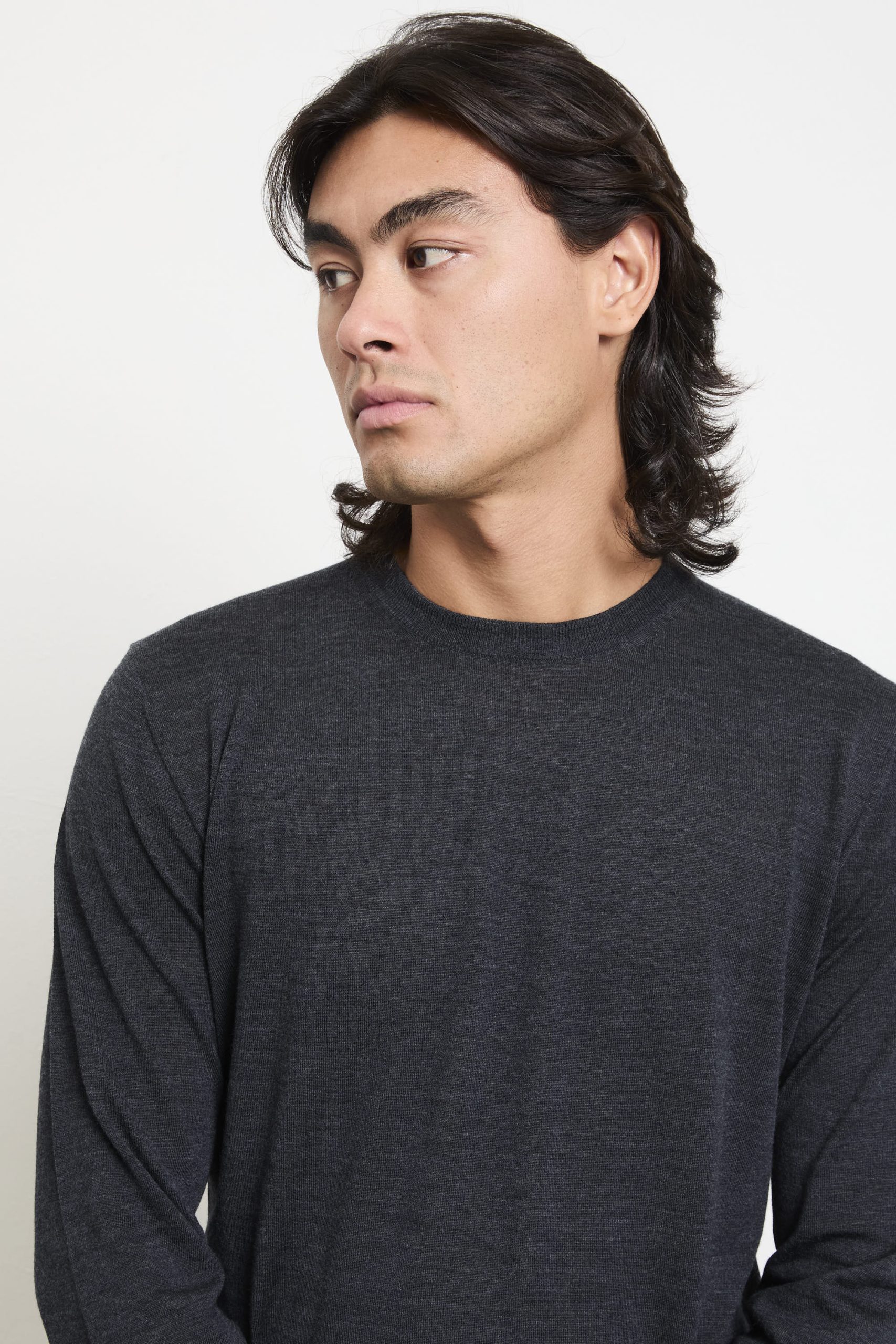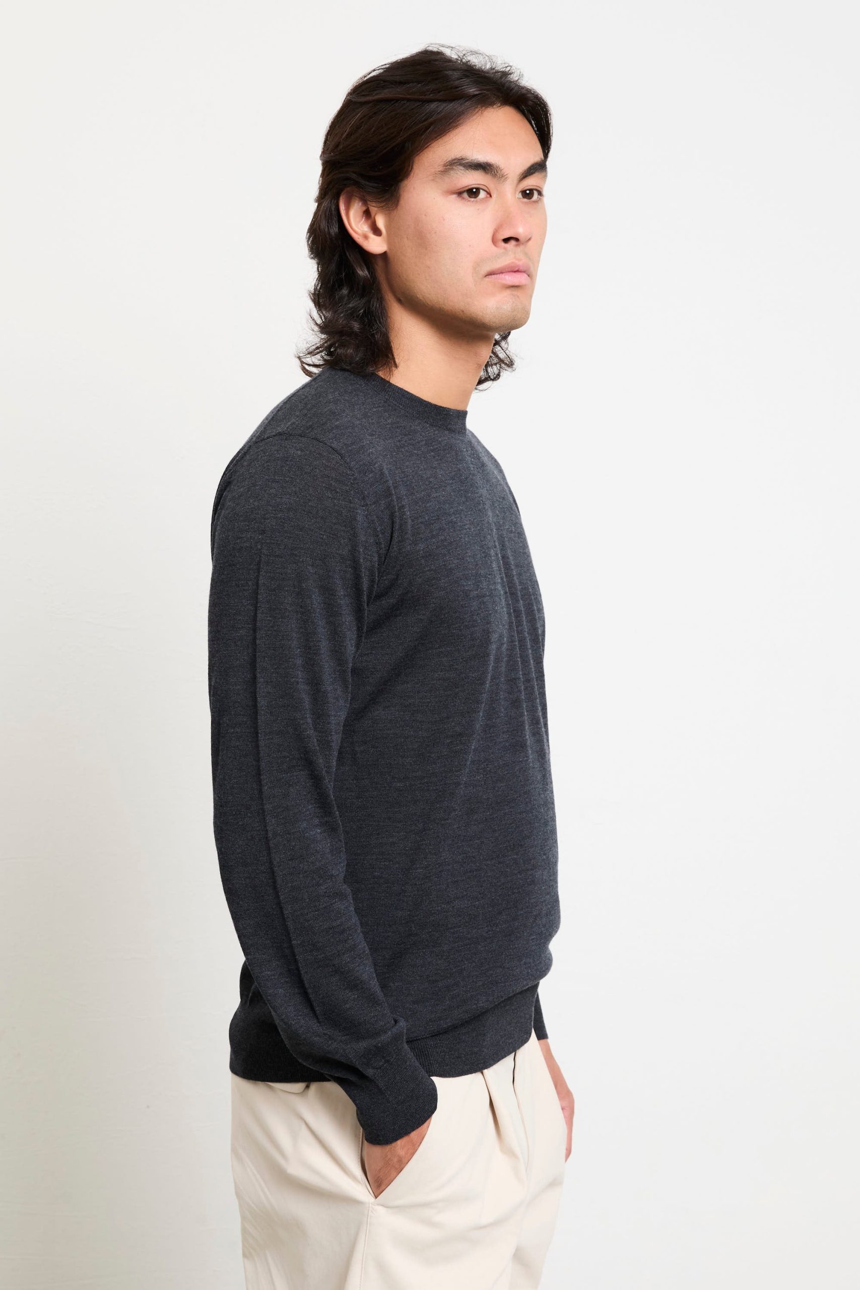 Sobria e raffinata, la maglia Kangra in lana extra fine grigia è il capo perfetto per un guardaroba versatile. La morbidezza del filato la rende ideale sia per stratificazioni leggere sia da sola. Combinala con pantaloni in lana blu scuro e stivaletti in pelle per un look elegante da ufficio, oppure con chinos color cammello e sneakers per un outfit più casual e contemporaneo.