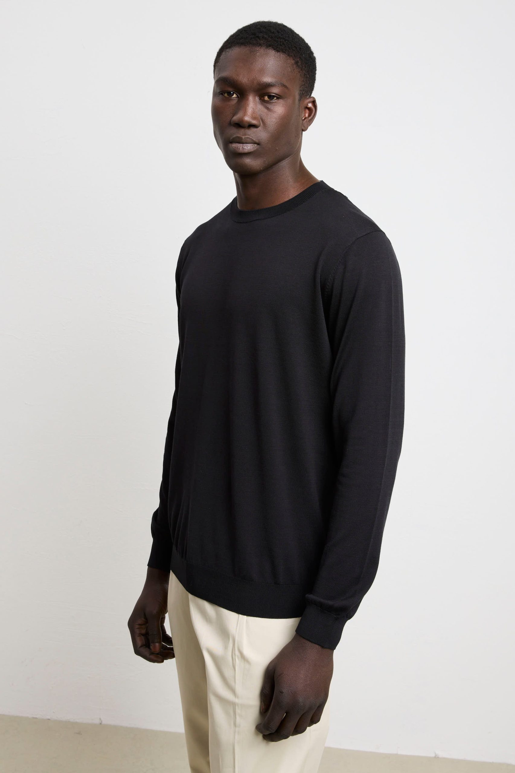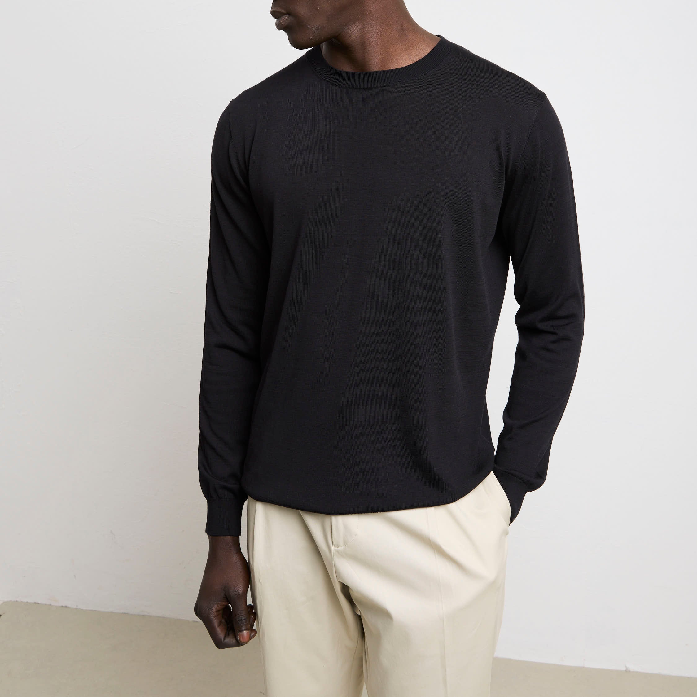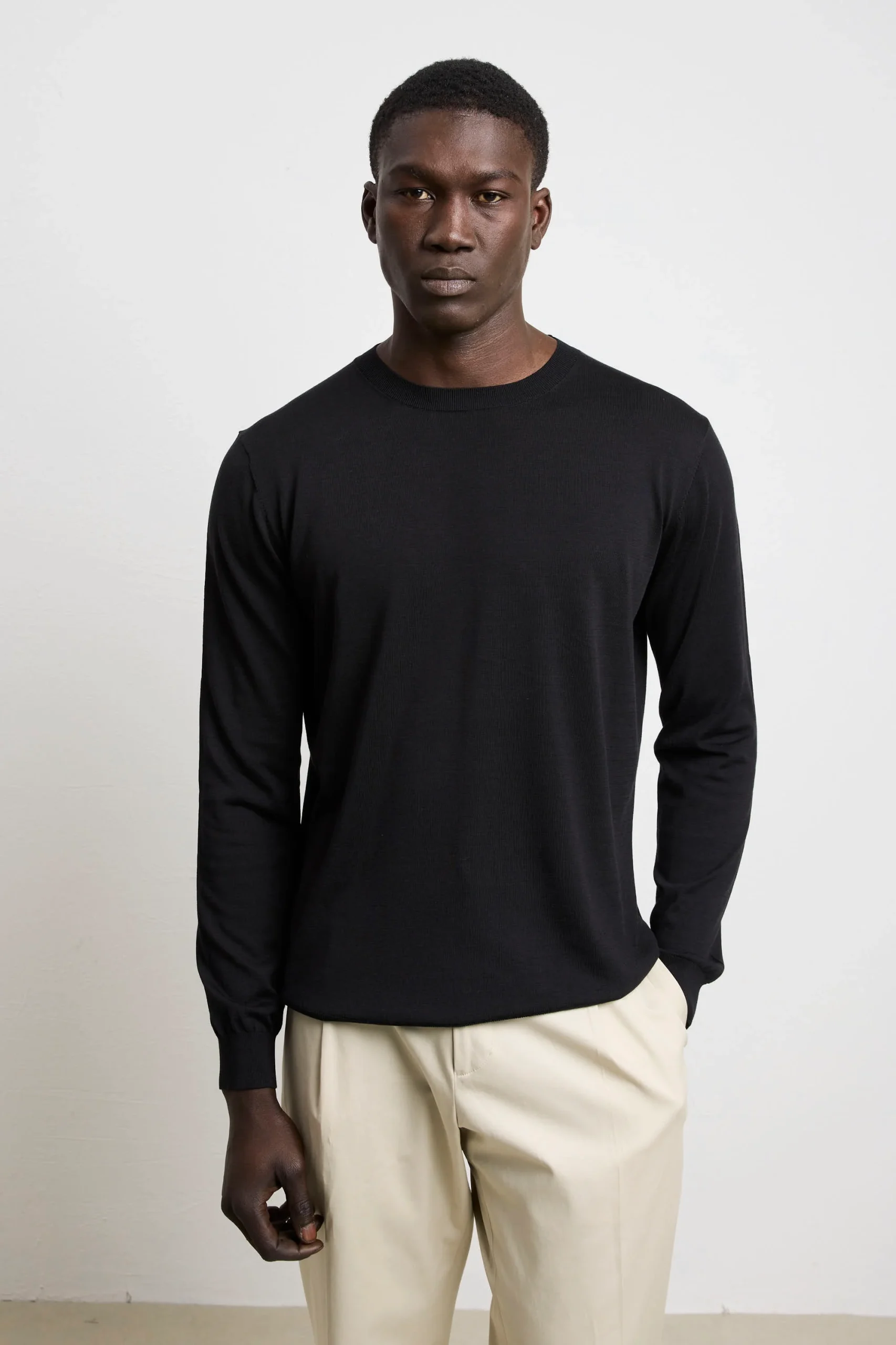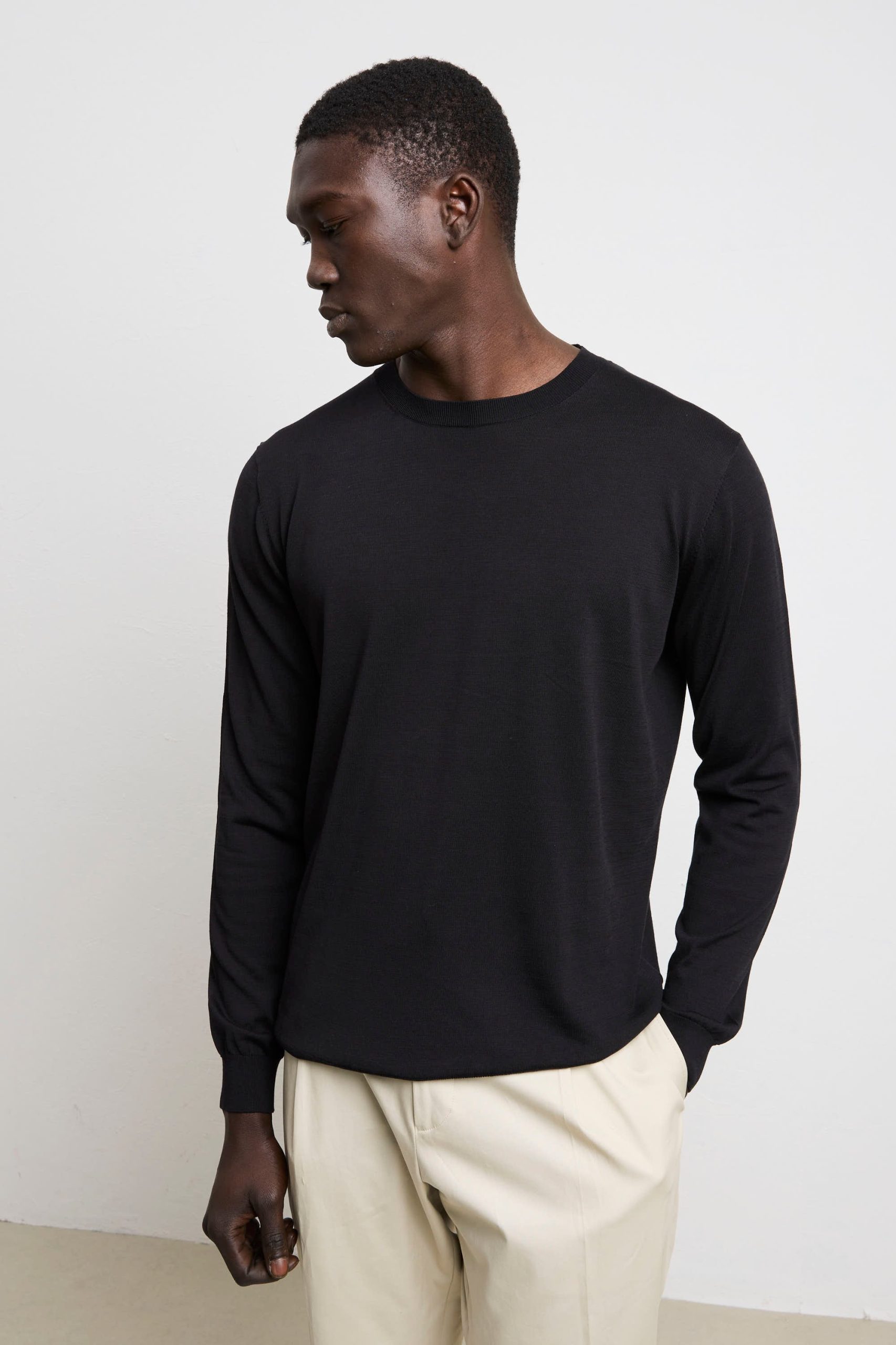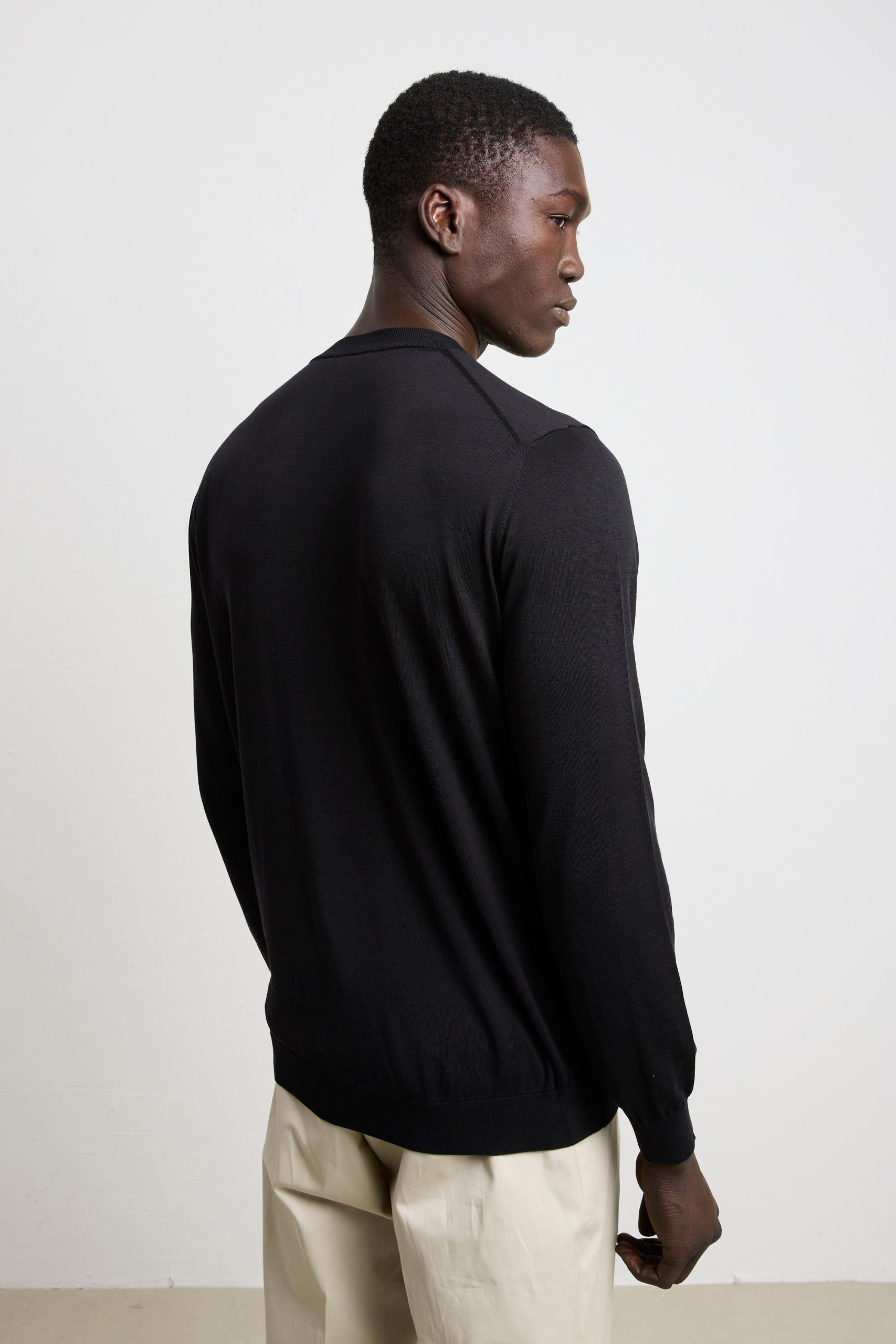 Una maglia tessuta con seta e cotone, avvolge il corpo in una sensazione di benessere che solo i materiali nobili sanno regalare. Si rivela straordinariamente versatile, passando senza sforzo da una cena informale a un contesto professionale. Il nero è una tonalità che amplifica la sofisticatezza di ogni abbinamento, permettendoti di costruire look raffinati con semplicità e sicurezza. Un capo che rappresenta l’essenza dello stile consapevole: qualità costruttiva impeccabile, eleganza discreta e una bellezza che cresce con il tempo, diventando sempre più prezioso nel tuo guardaroba personale.