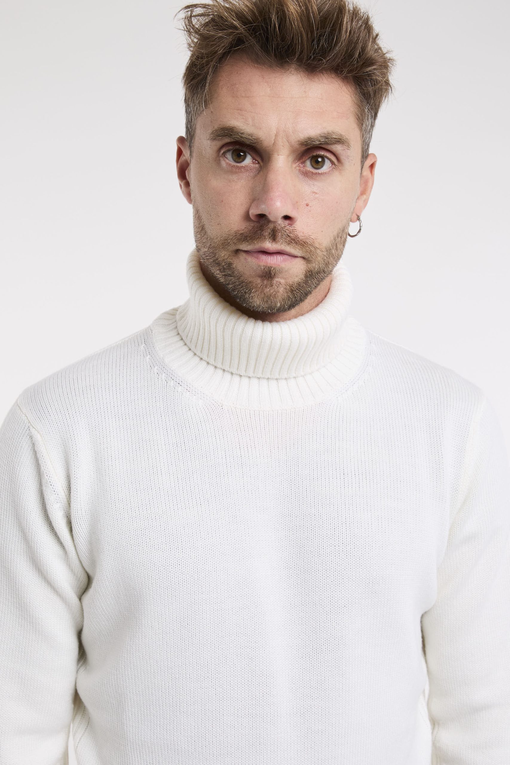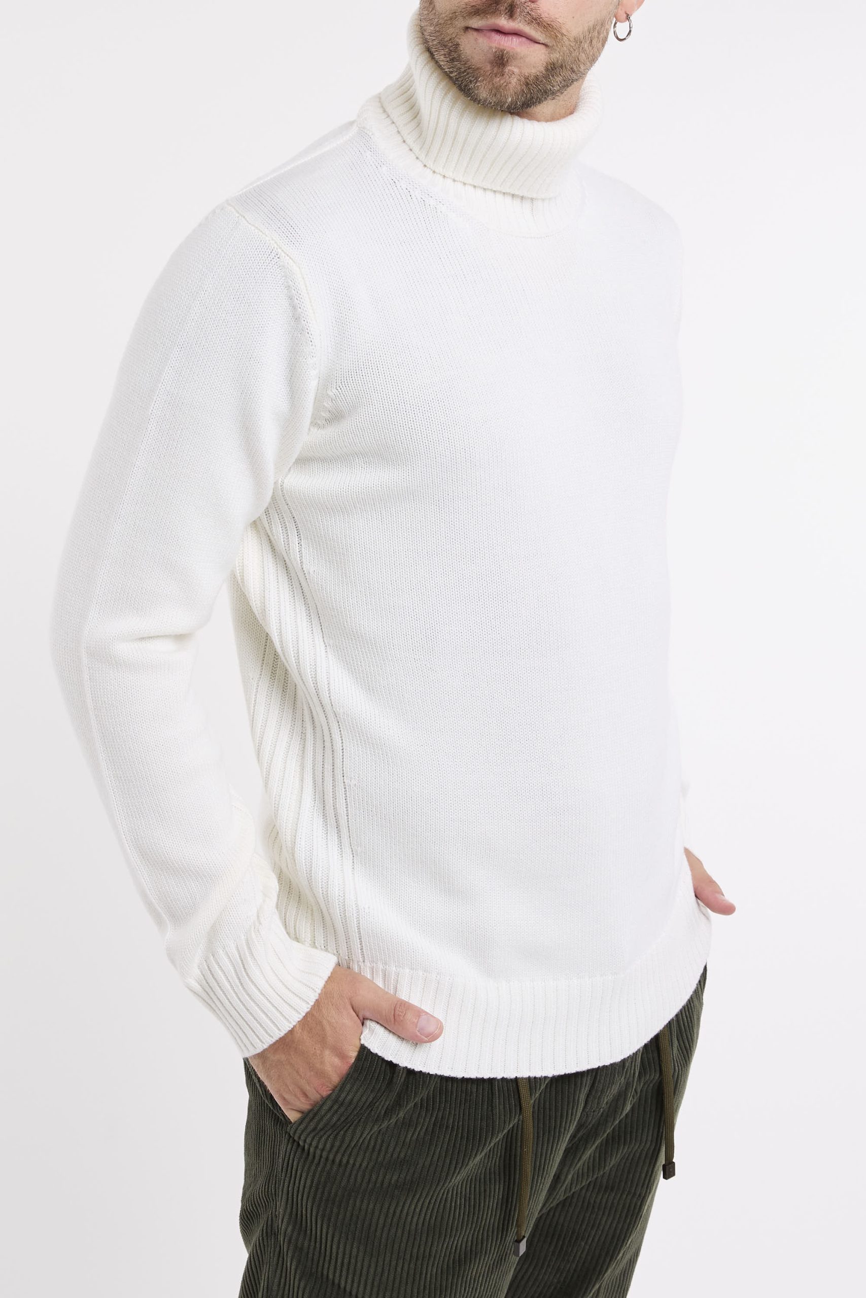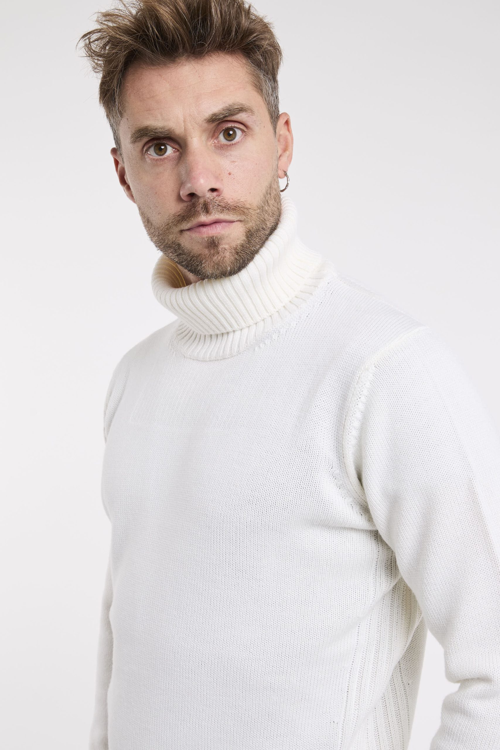 Maglia in lana; Collo Alto; Righe laterali; Maniche lunghe; Polsini e fondo a costine; Made in Italy; Composizione: 100% Lana