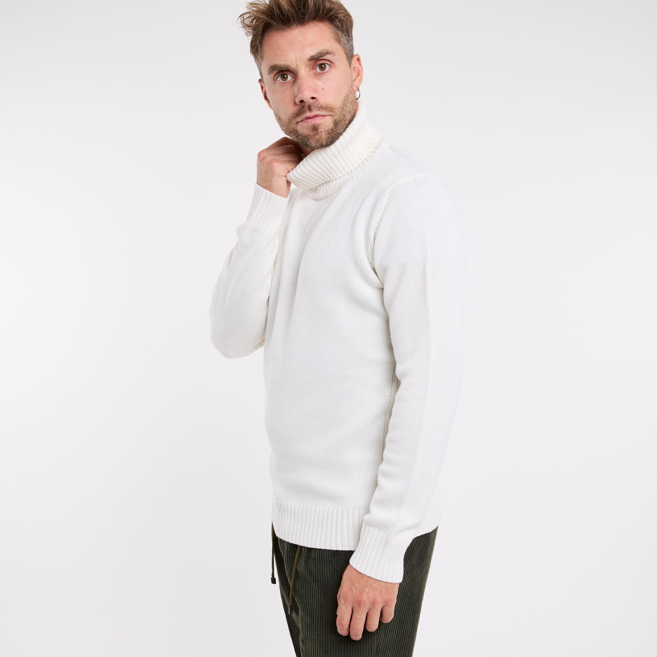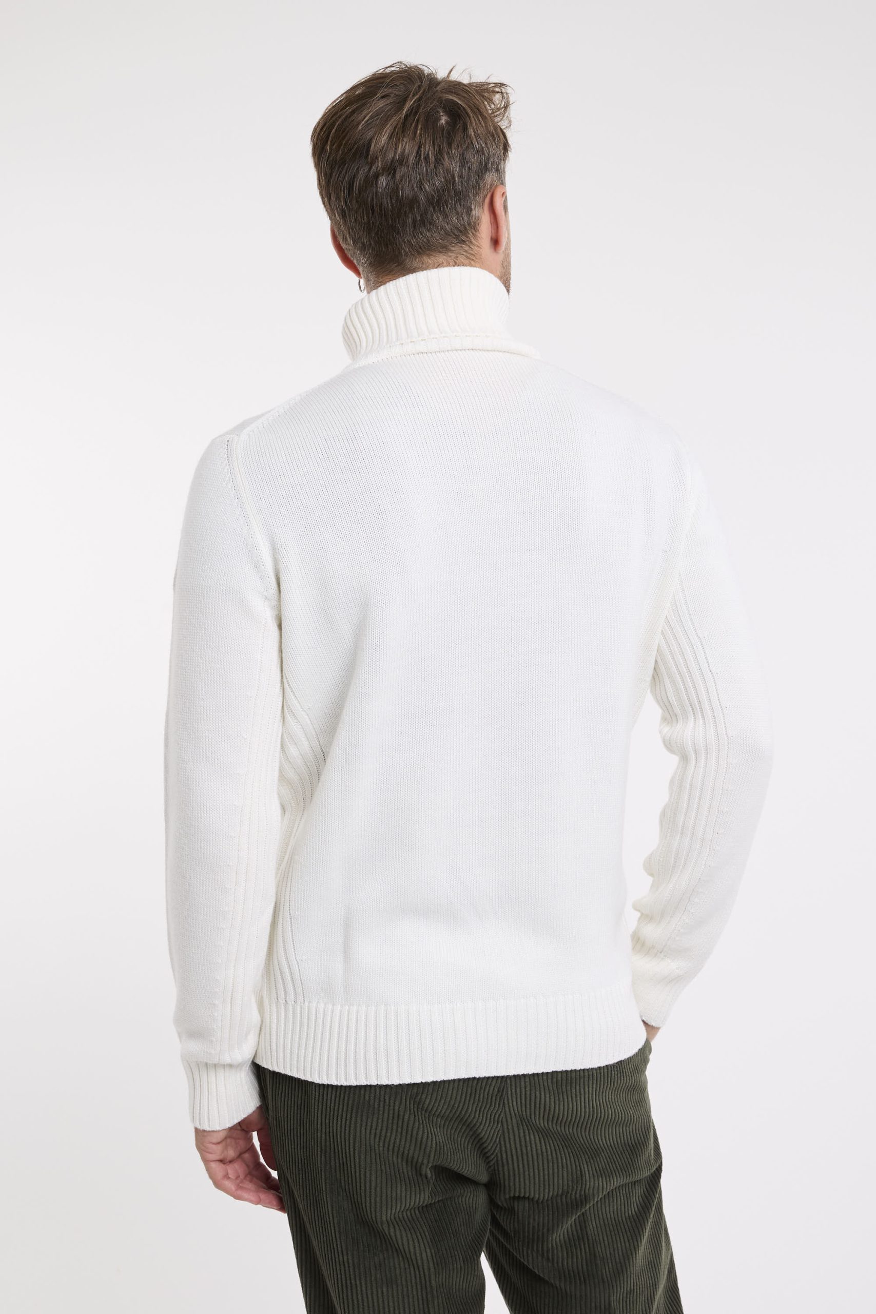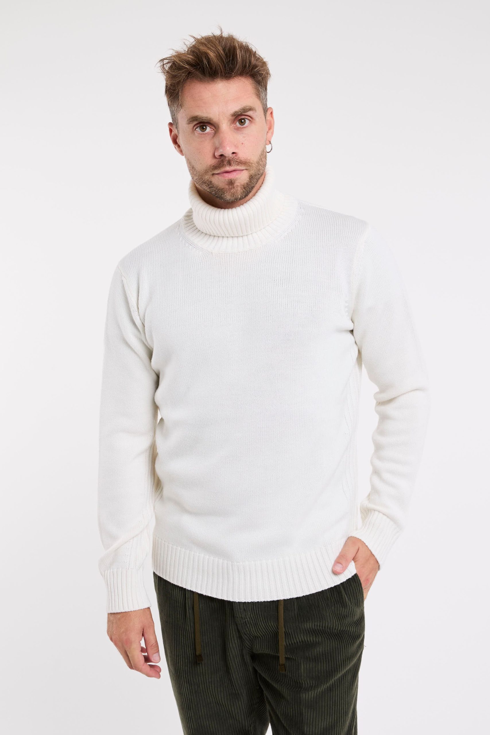 Maglia in lana; Collo Alto; Righe laterali; Maniche lunghe; Polsini e fondo a costine; Made in Italy; Composizione: 100% Lana