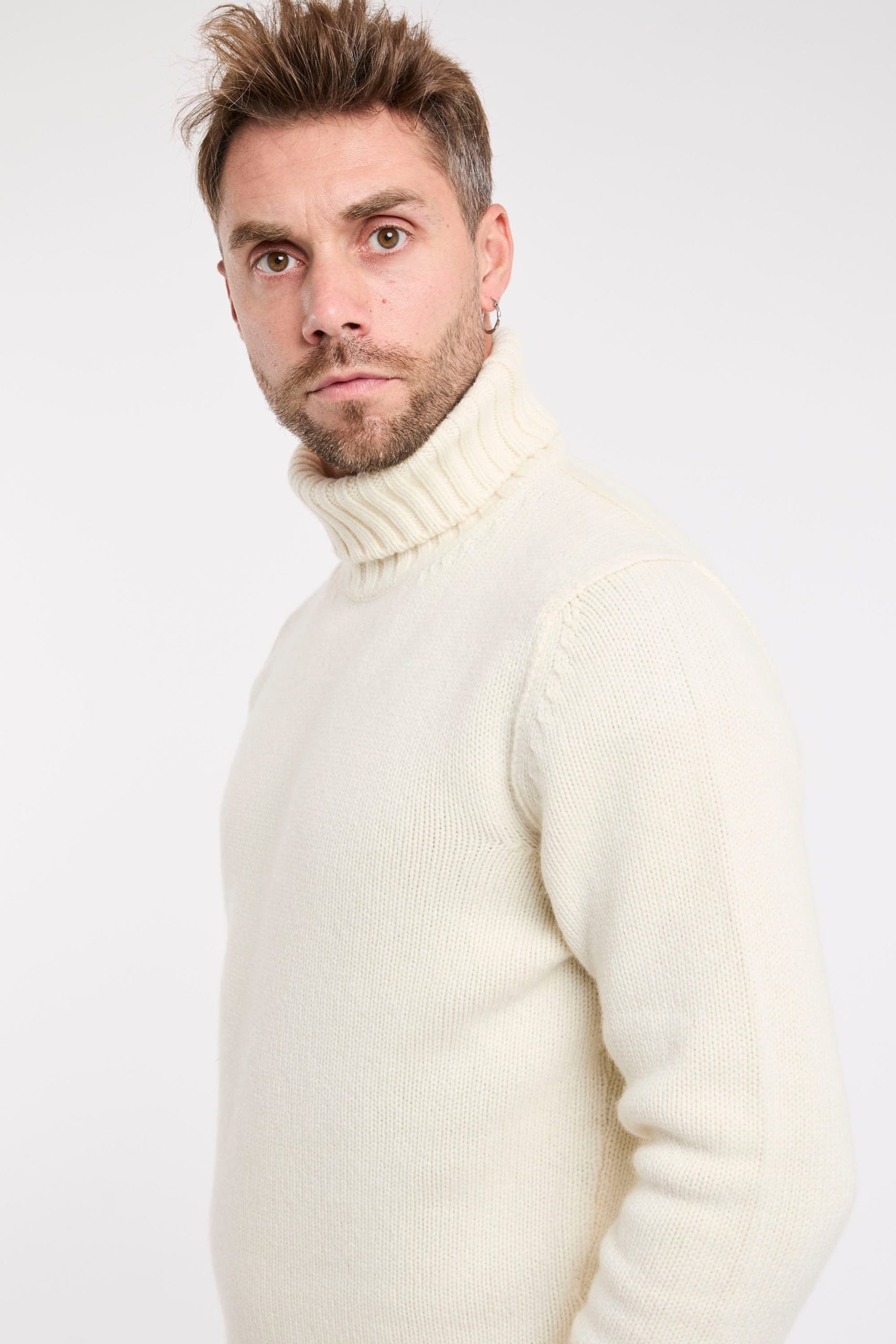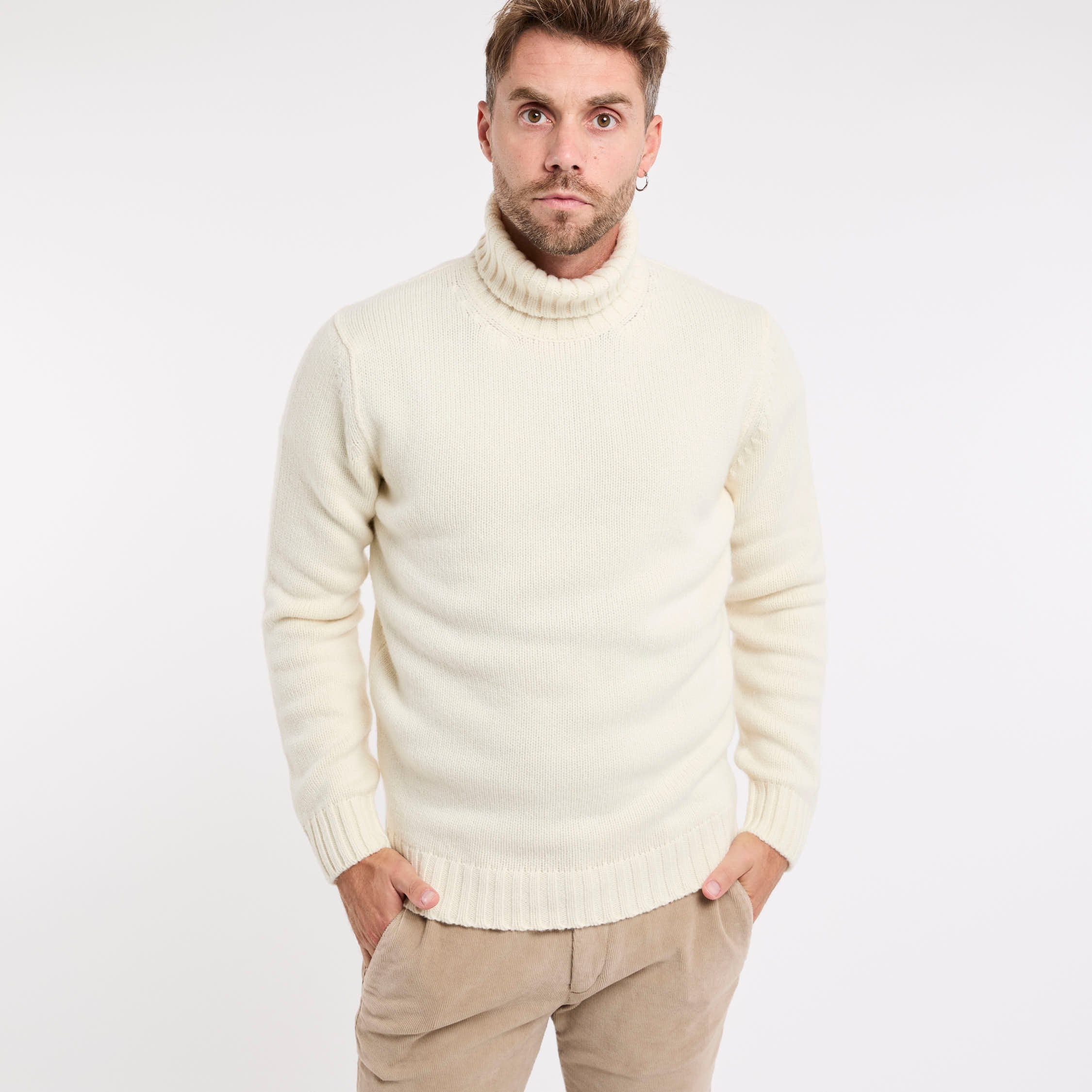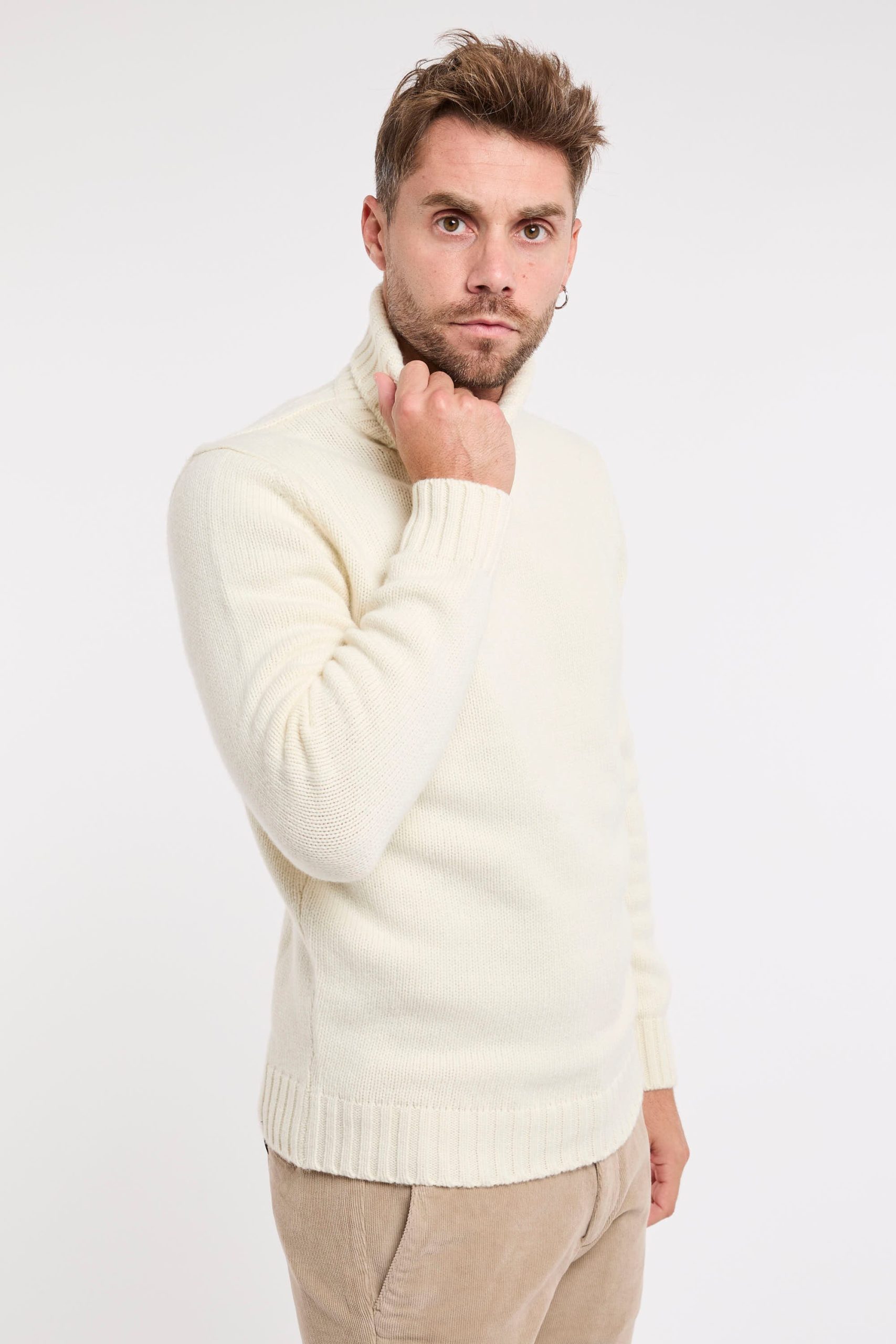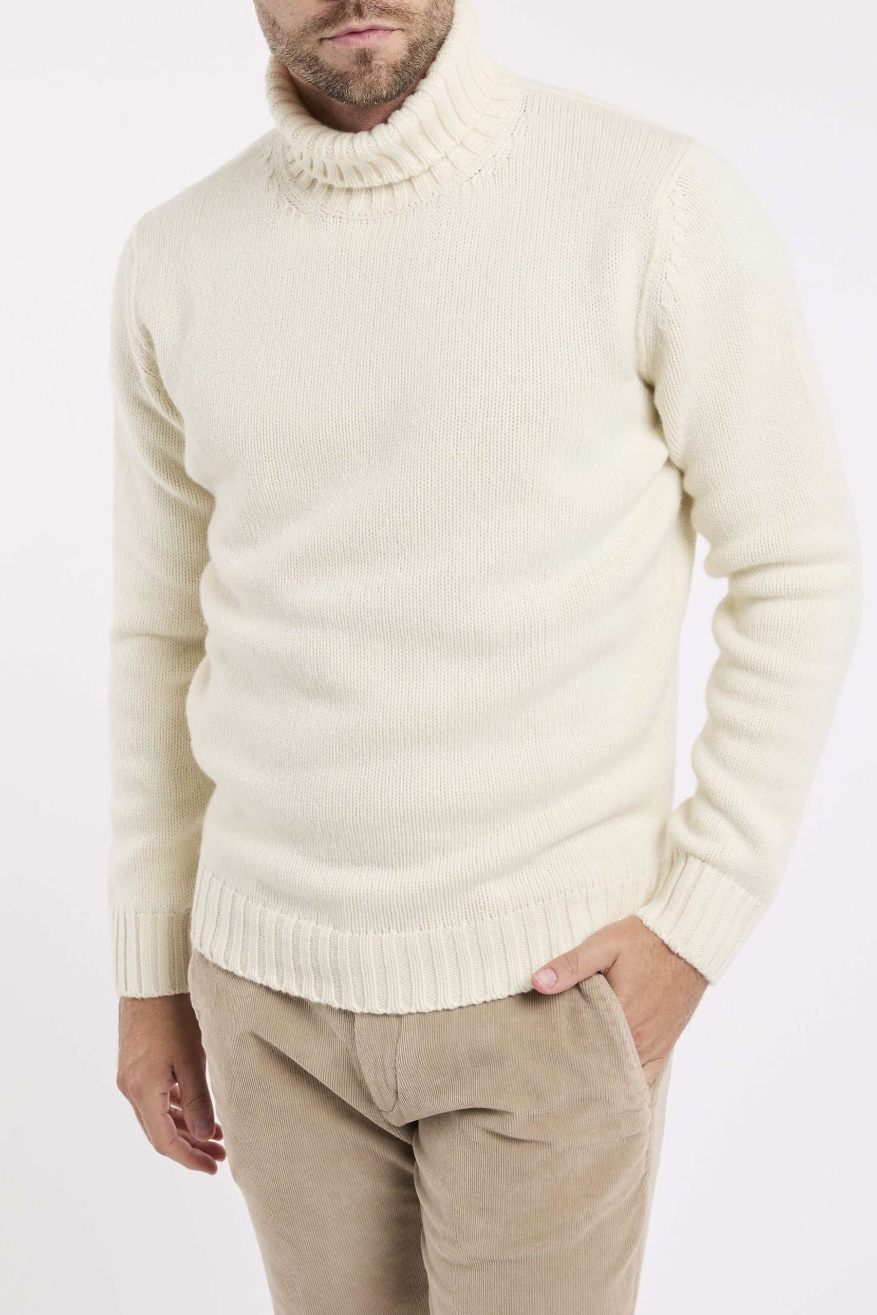 Maglia in lana; Collo Alto; Maniche lunghe; Polsini e fondo a costine; Made in Italy; Composizione: 100% Lana
