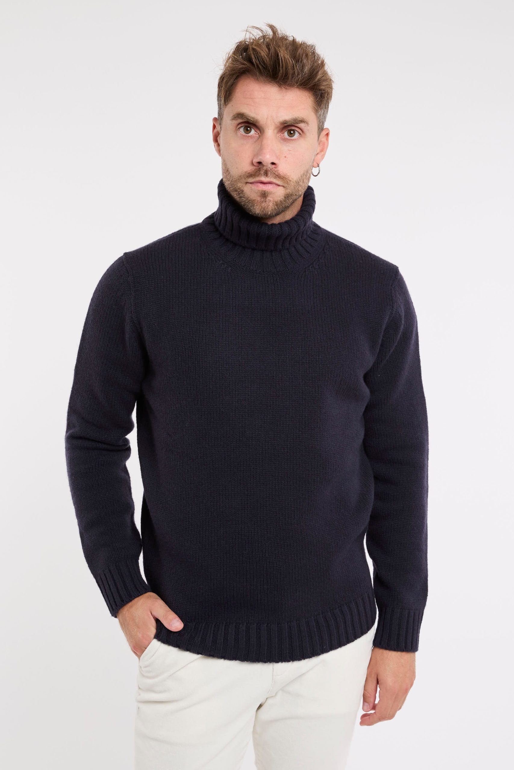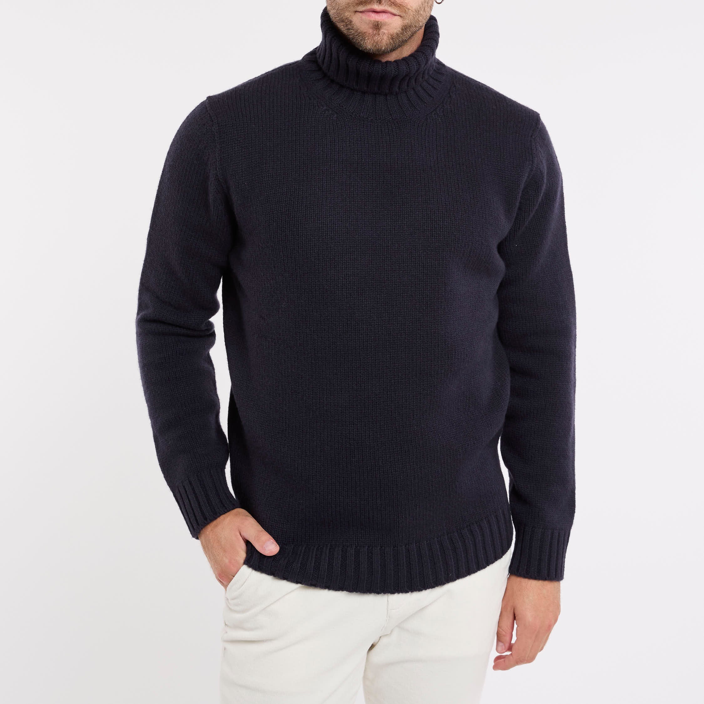 Maglia in lana; Collo Alto; Maniche lunghe; Polsini e fondo a costine; Made in Italy; Composizione: 100% Lana