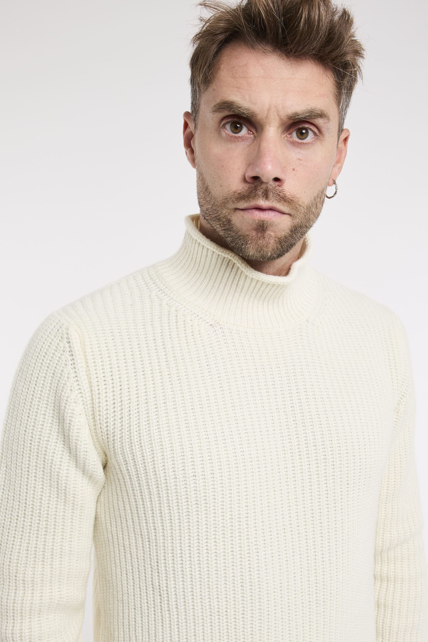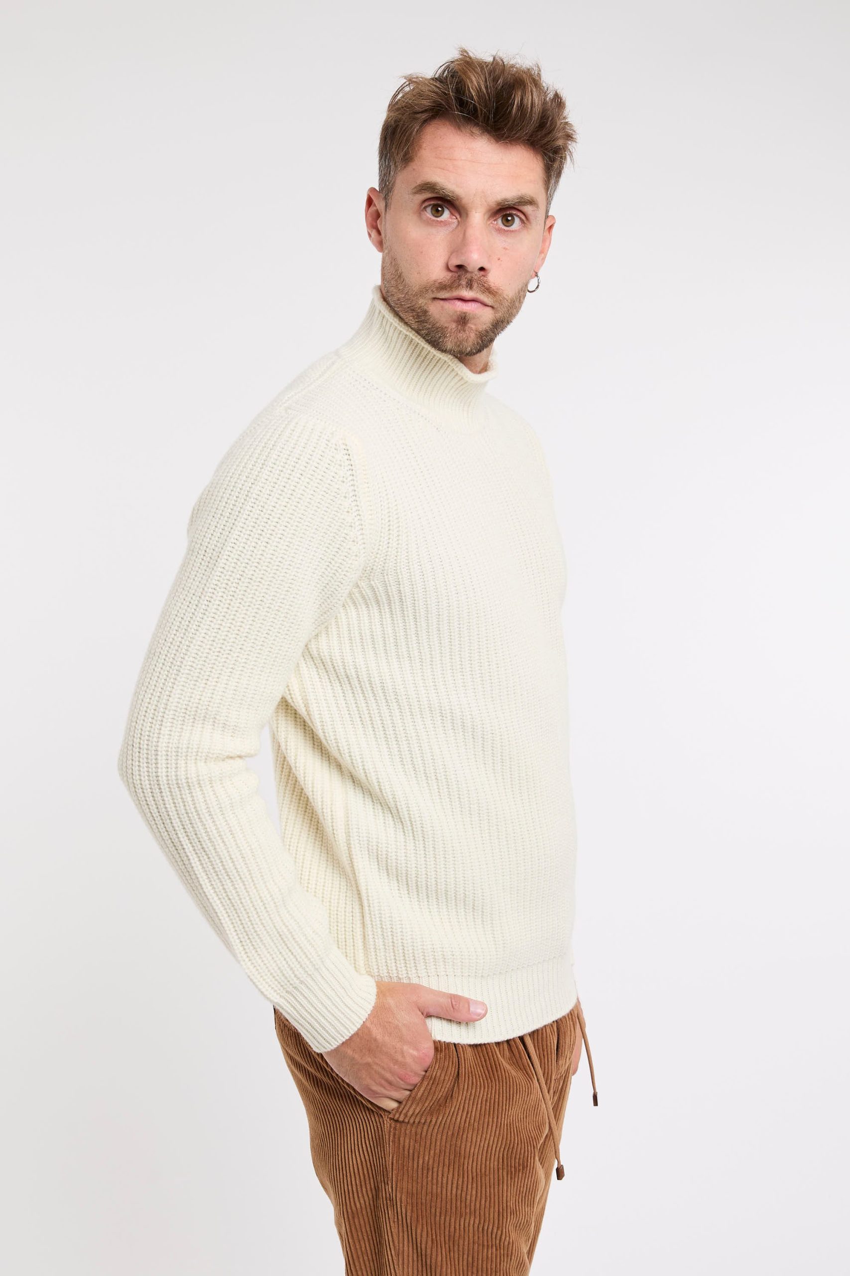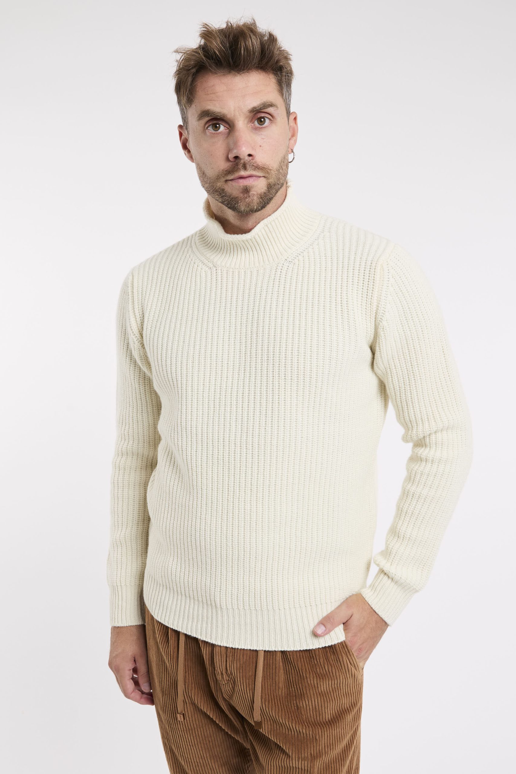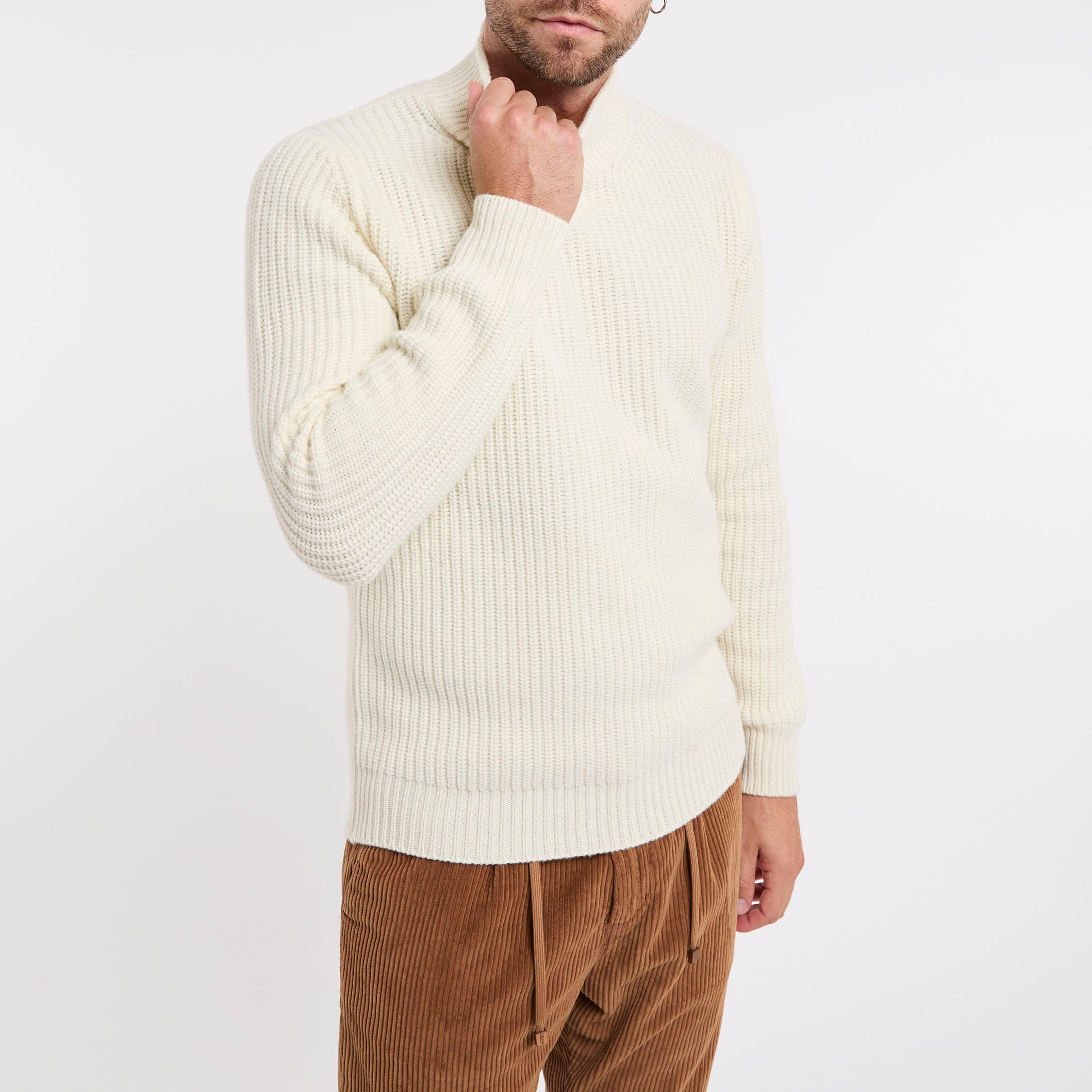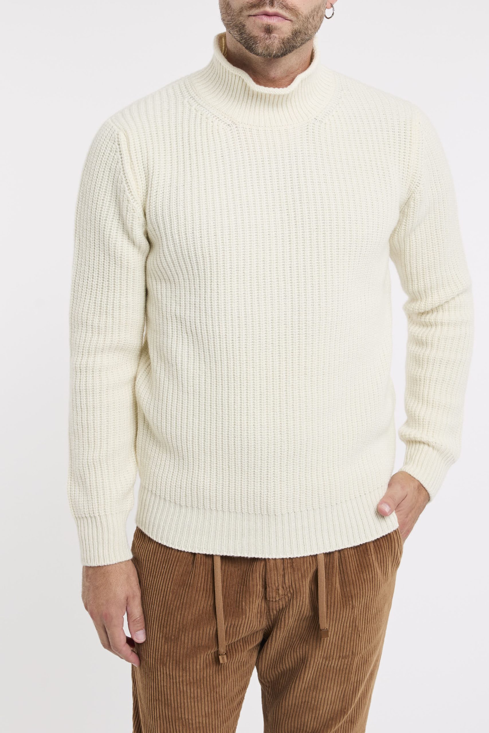 Maglia in misto lana; Mezzo collo; Maniche lunghe; Polsini e fondo a costine; Made in Italy; Composizione: 90% Lana,10% Cashmere