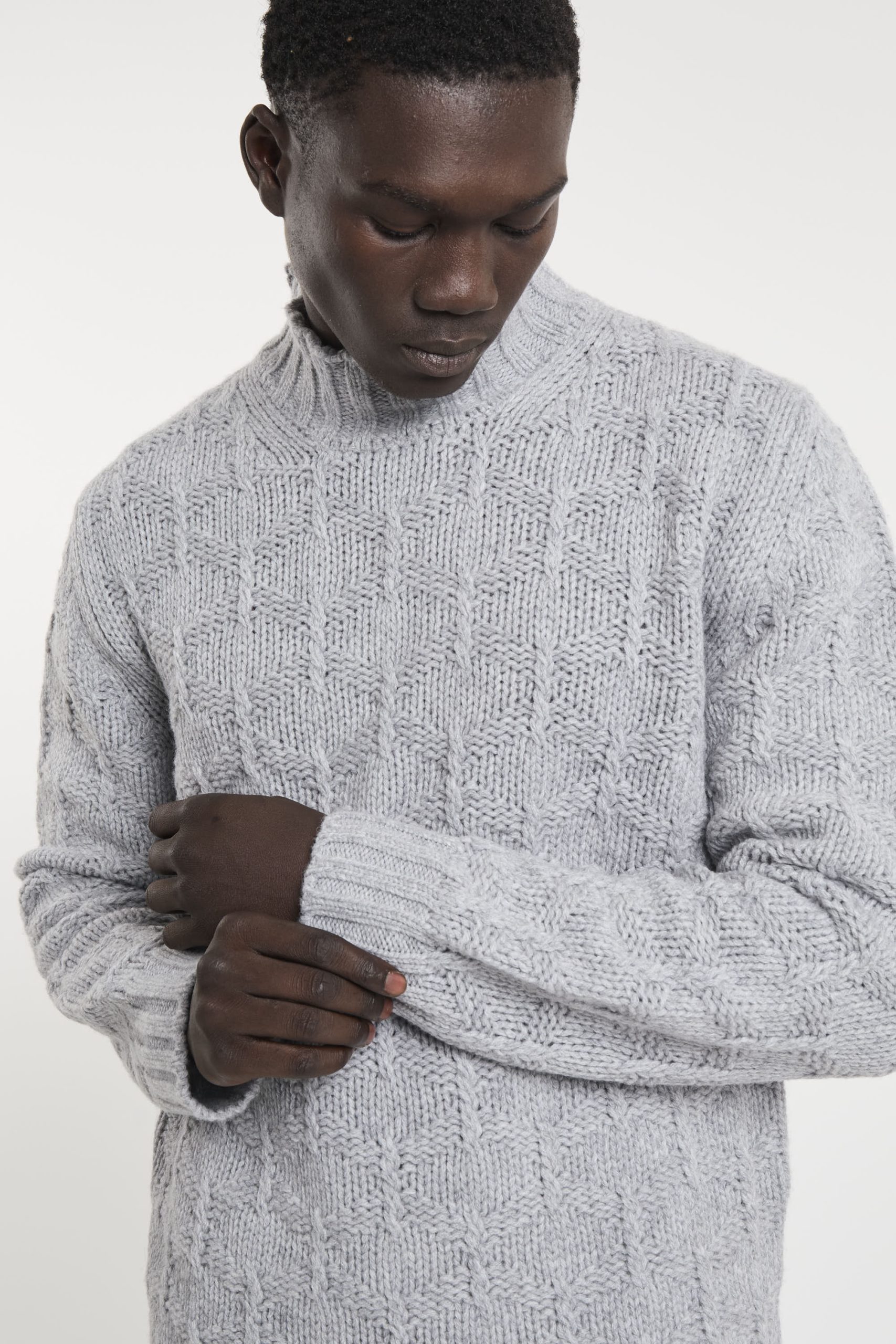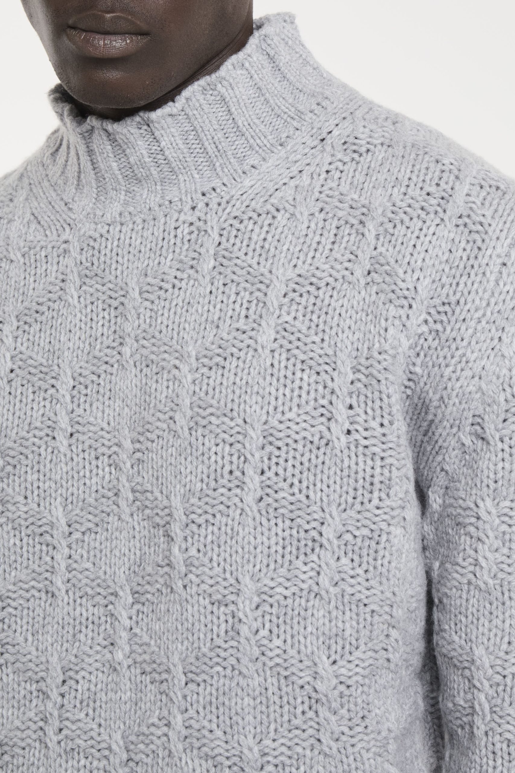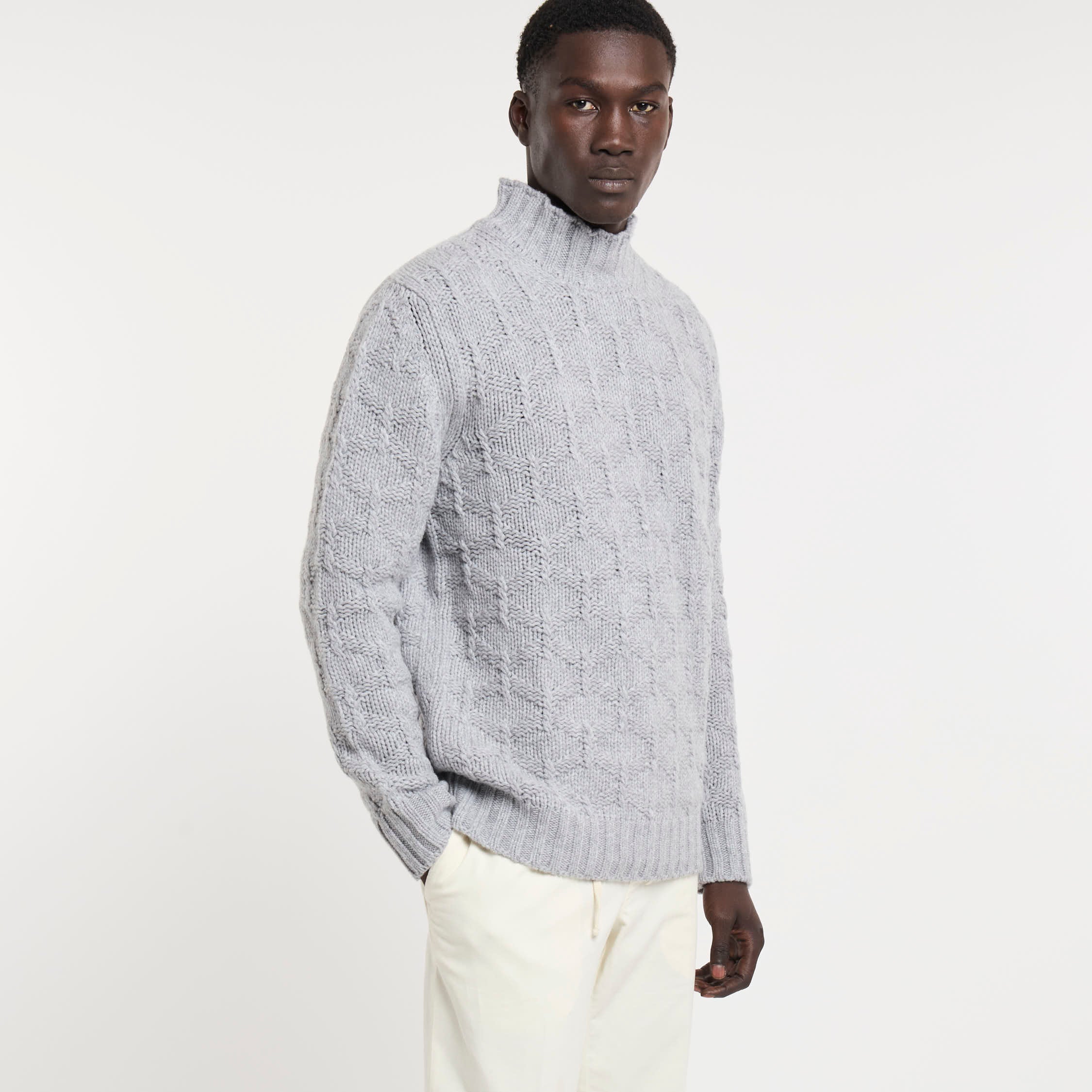 Maglia in lana; Mezzo collo; Motivo armaturato; Mélange; Maniche lunghe; Polsini e fondo a costine; Made in Italy; Composizione: 100% Lana
