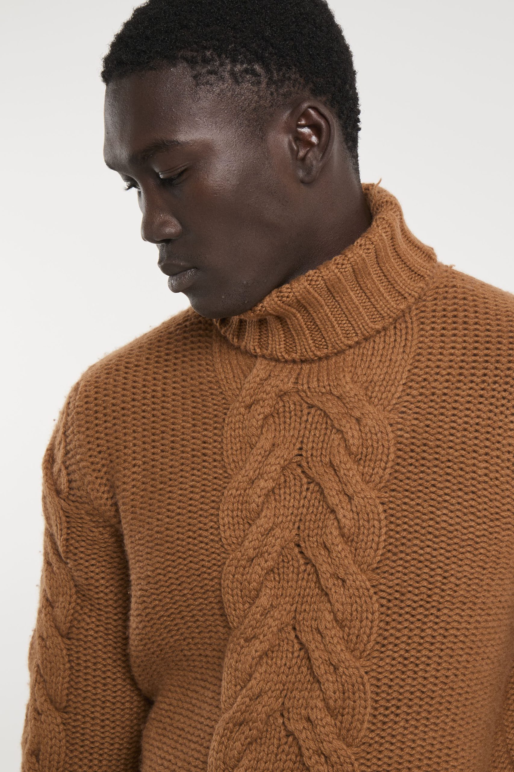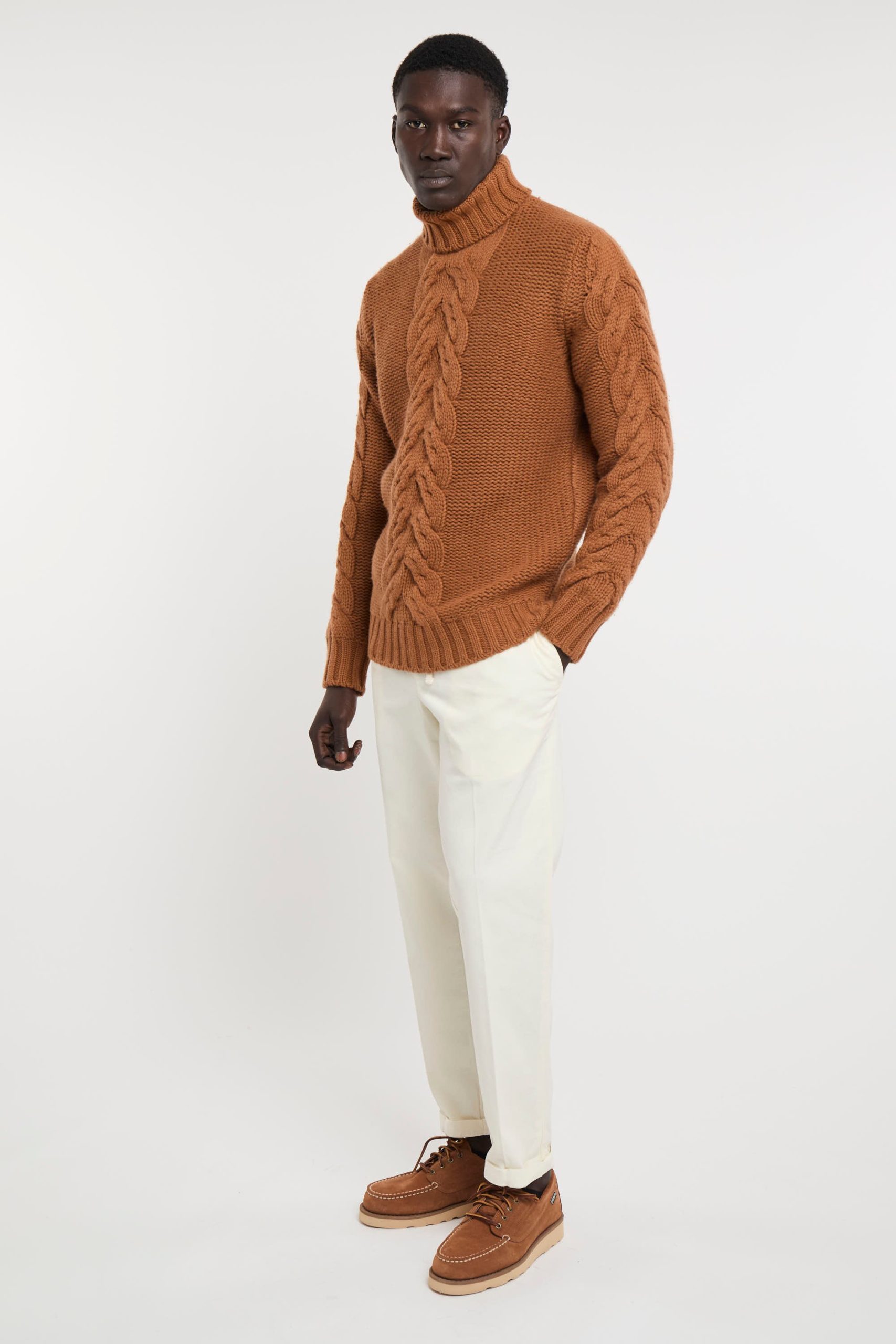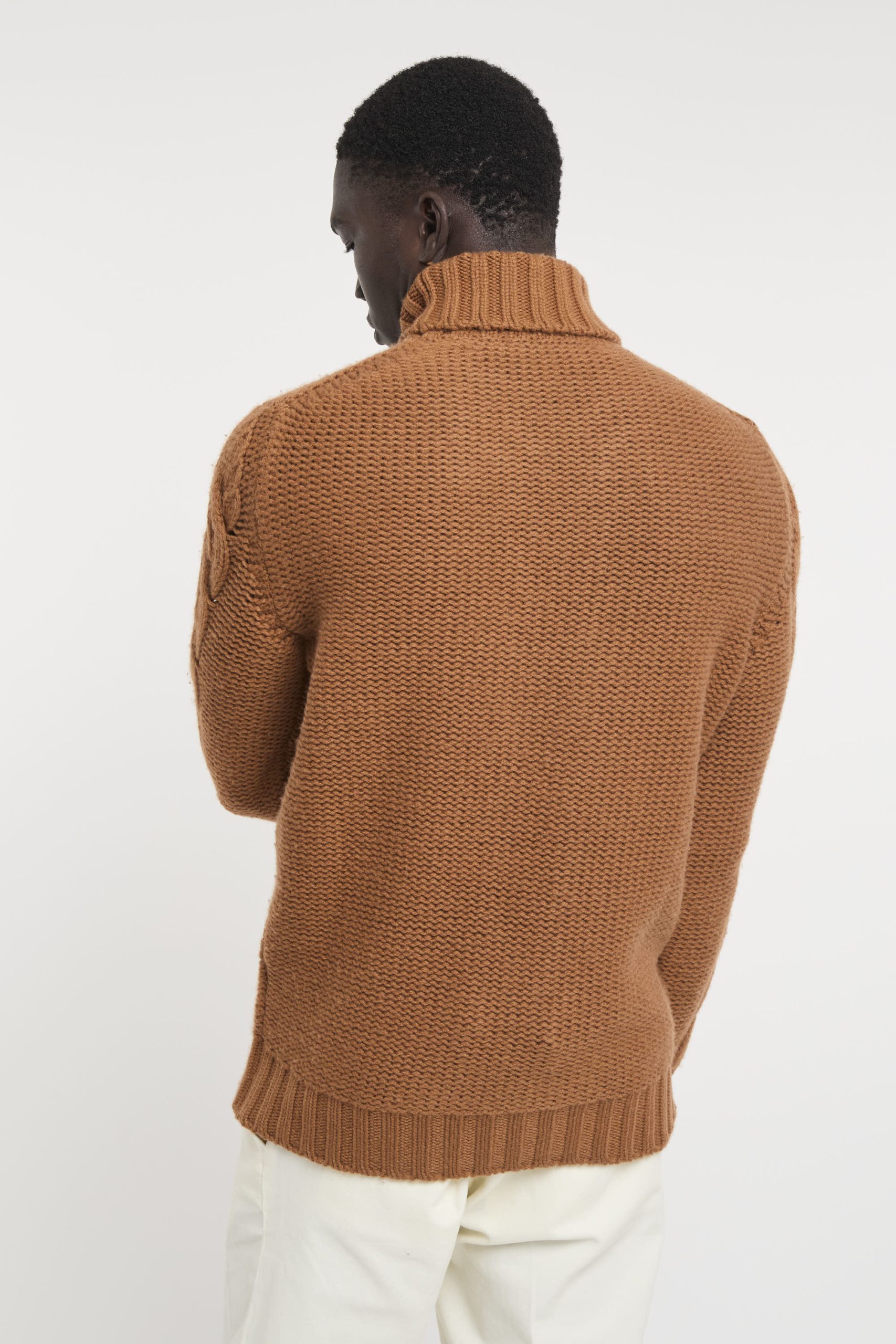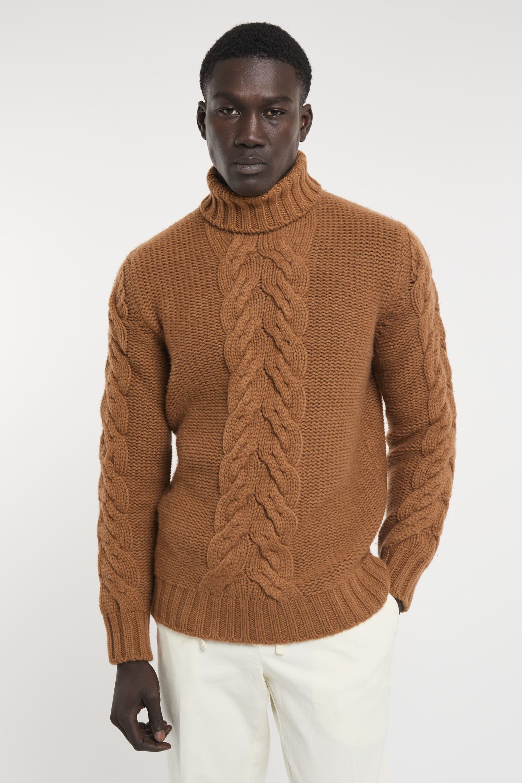 Maglia in lana; Collo alto; Motivo con trecce; Maniche lunghe; Polsini e fondo a costine; Made in Italy; Composizione: 100% Lana