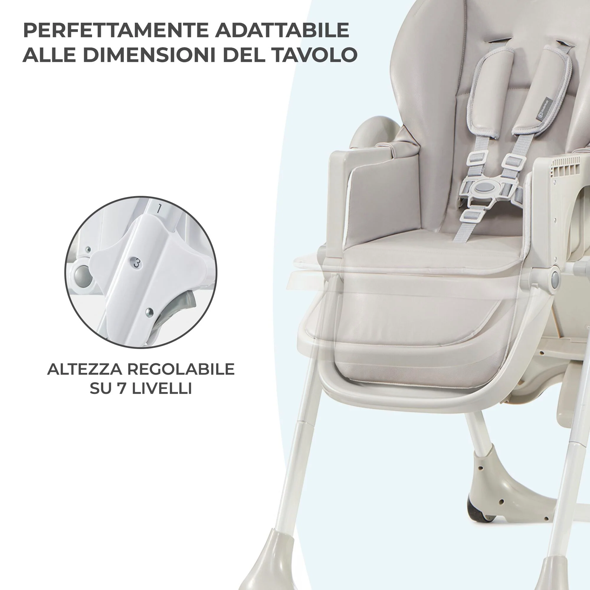 Seggiolone da pappa YUMMY vi permette di mangiare insieme a tavola. Grazie alla regolazione dell’altezza su 7 livelli, potrai adattare YUMMY all’altezza del tavolo senza alcuno sforzo. Grazie a questo seggiolone potrete godervi i pasti insieme già dall’inizio di svezzamento! -