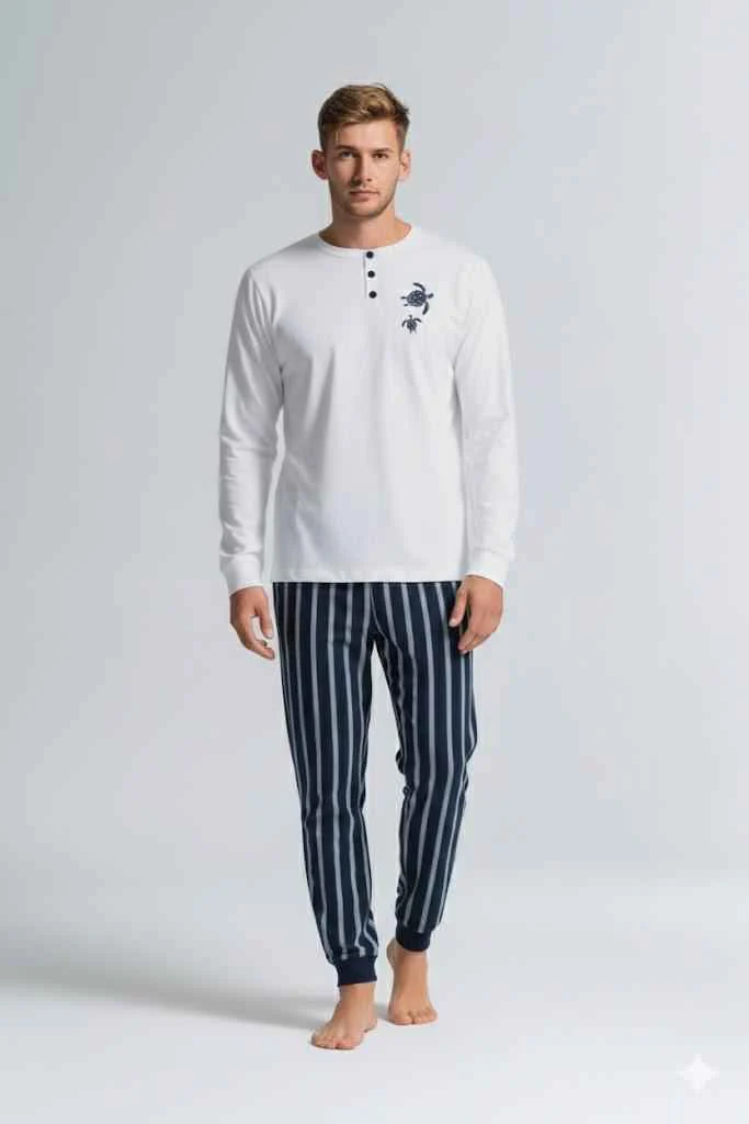 Vivi l’esperienza di puro relax con il pigiama Kiwear da uomo. Realizzato in pregiato jersey, questo completo a manica e pantalone lungo offre una vestibilità confortevole e una sensazione piacevole sulla pelle. Il design classico incontra la modernità del tessuto, garantendo notti serene e mattine tranquille. La scelta ideale per l’uomo che non rinuncia alla qualità e al comfort Kiwear nel proprio abbigliamento da casa.