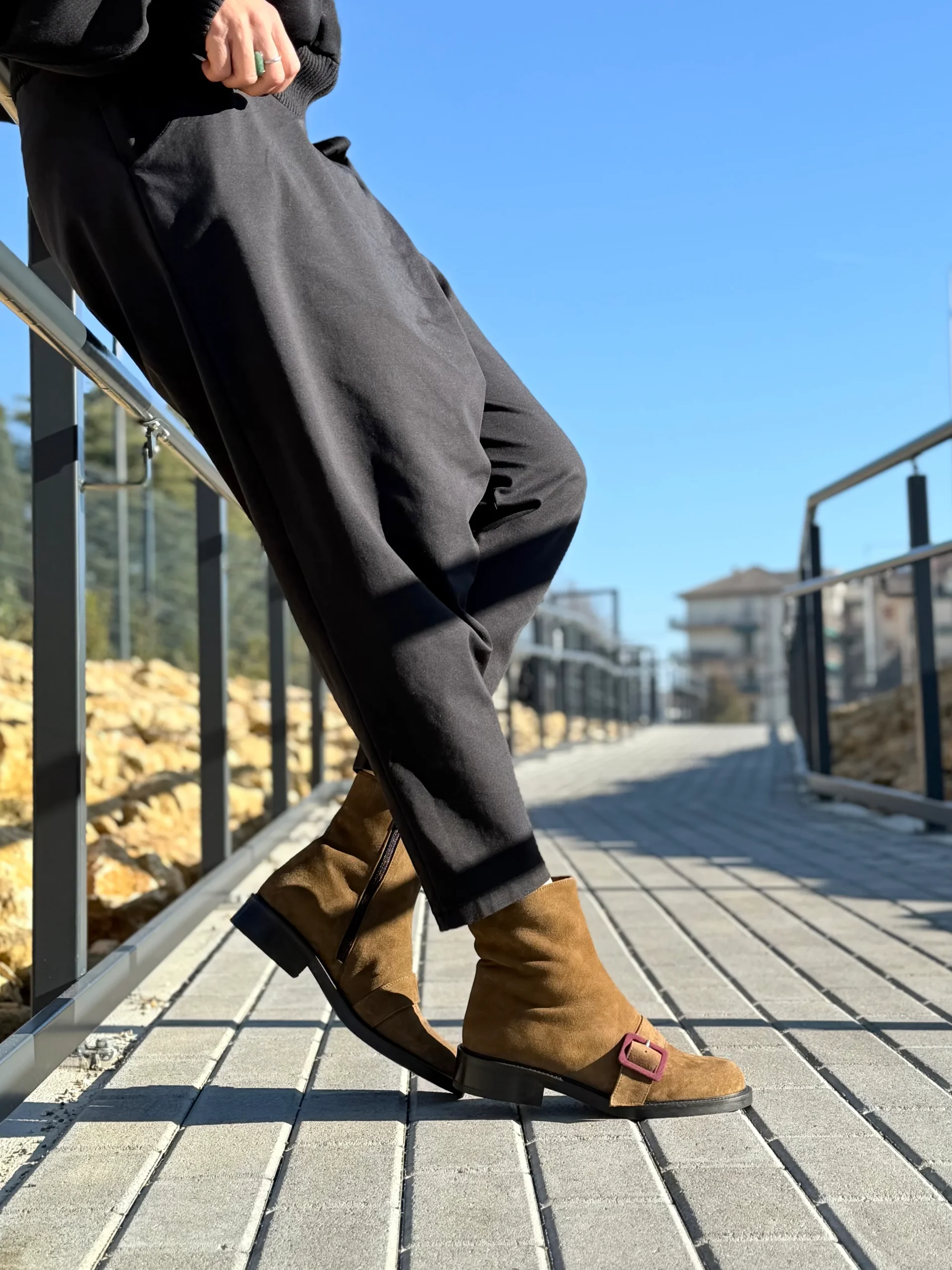 Completano la costruzione la chiusura tramite cerniera interna, che mantiene pulita la linea esterna del gambale e rende lo stivaletto pratico da indossare.