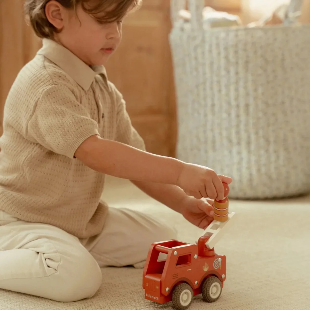 Il camion dei pompieri in legno Little Dutch è progettato per stimolare la fantasia e le capacità cognitive dei bambini attraverso il gioco simbolico.
