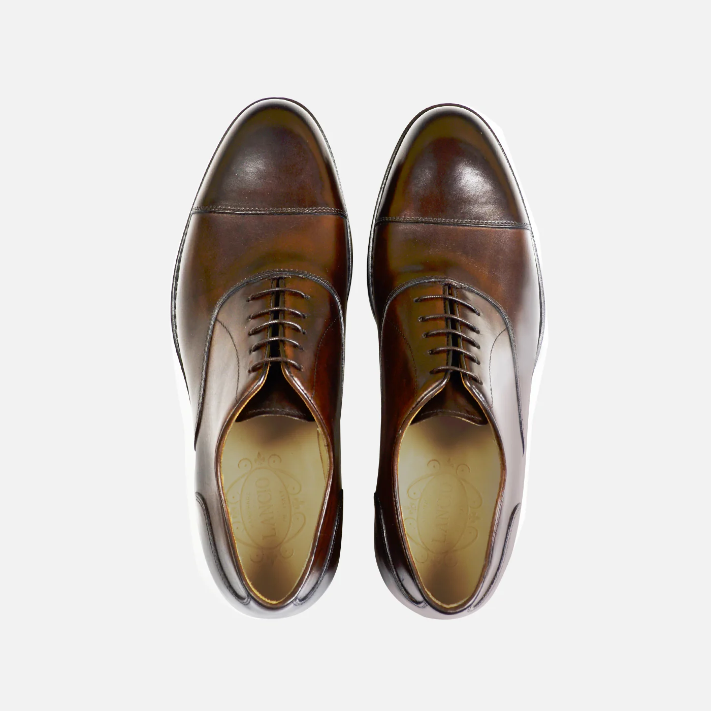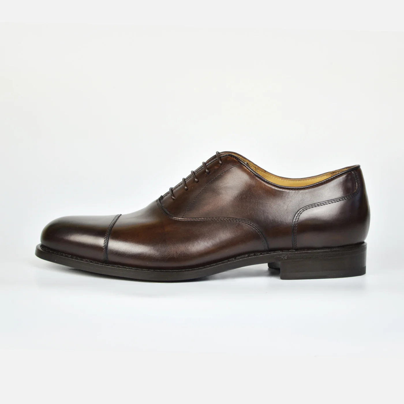 Oxford Cap Toe è la calzatura che un gentleman non può non avere nel proprio guardaroba. Esso è realizzato in pelle di vitello crust e pitturato interamente a mano dai nostri anticatori, così da offrirvi un prodotto prestigioso, naturale ed artigianale. La fodera è in pelle di vitello che garantisce benessere al vostro piede. La suola è sformata e pitturata a mano e cucita Blake Rapid, ossia cucita sia internamente che esternamente, permettendo una lunga durabilità della calzatura e la possibilità di risuolatura.