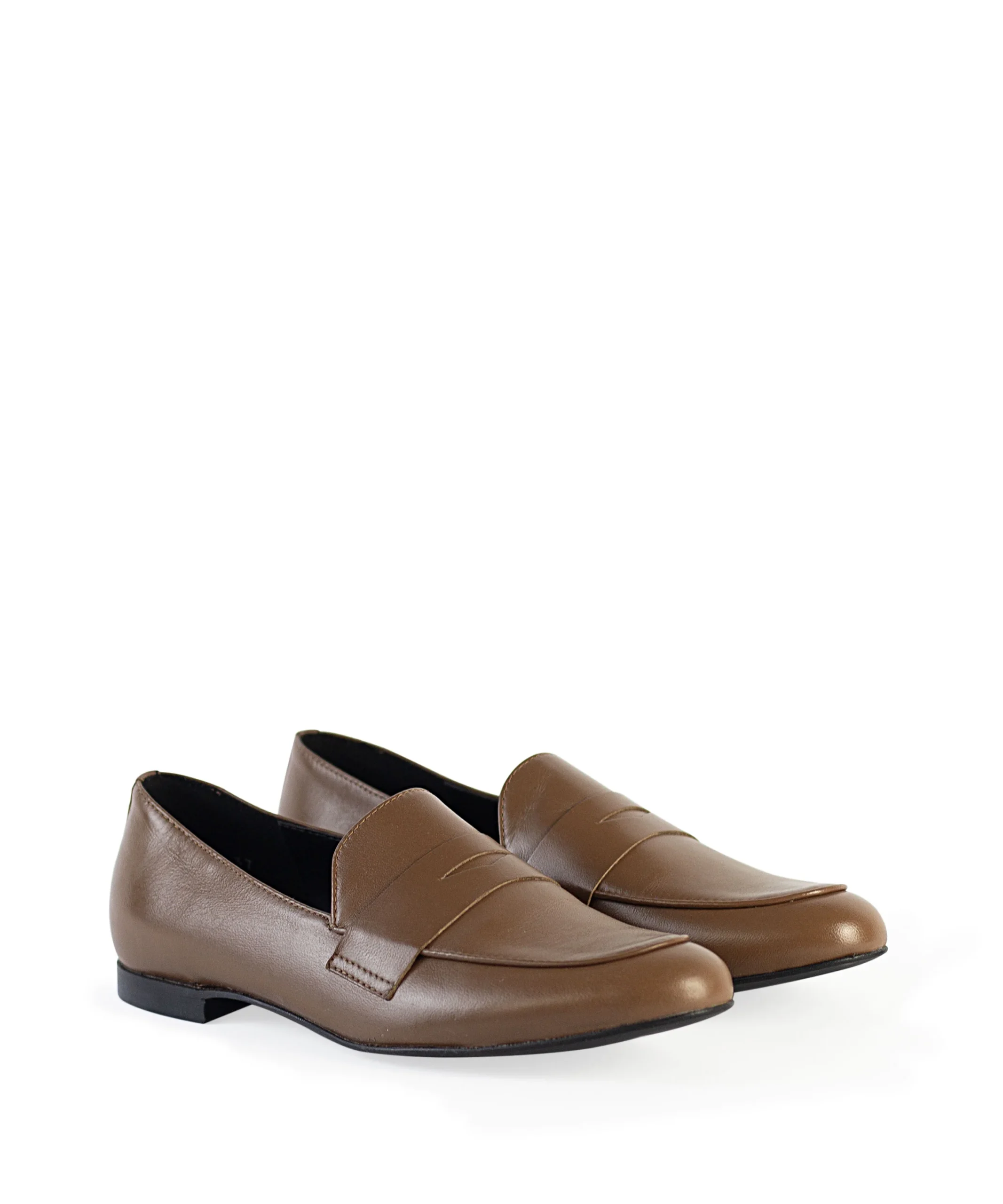 Mocassini in pelle color cuoio con mascherina sul davanti. I mocassini da donna sono disponibili in diverse varianti colore e hanno un design minimal. Il mocassino da donna con mascherina è la scelta perfetta per essere eleganti ma senza rinunciare al comfort. Mocassini da donna color cuoio.