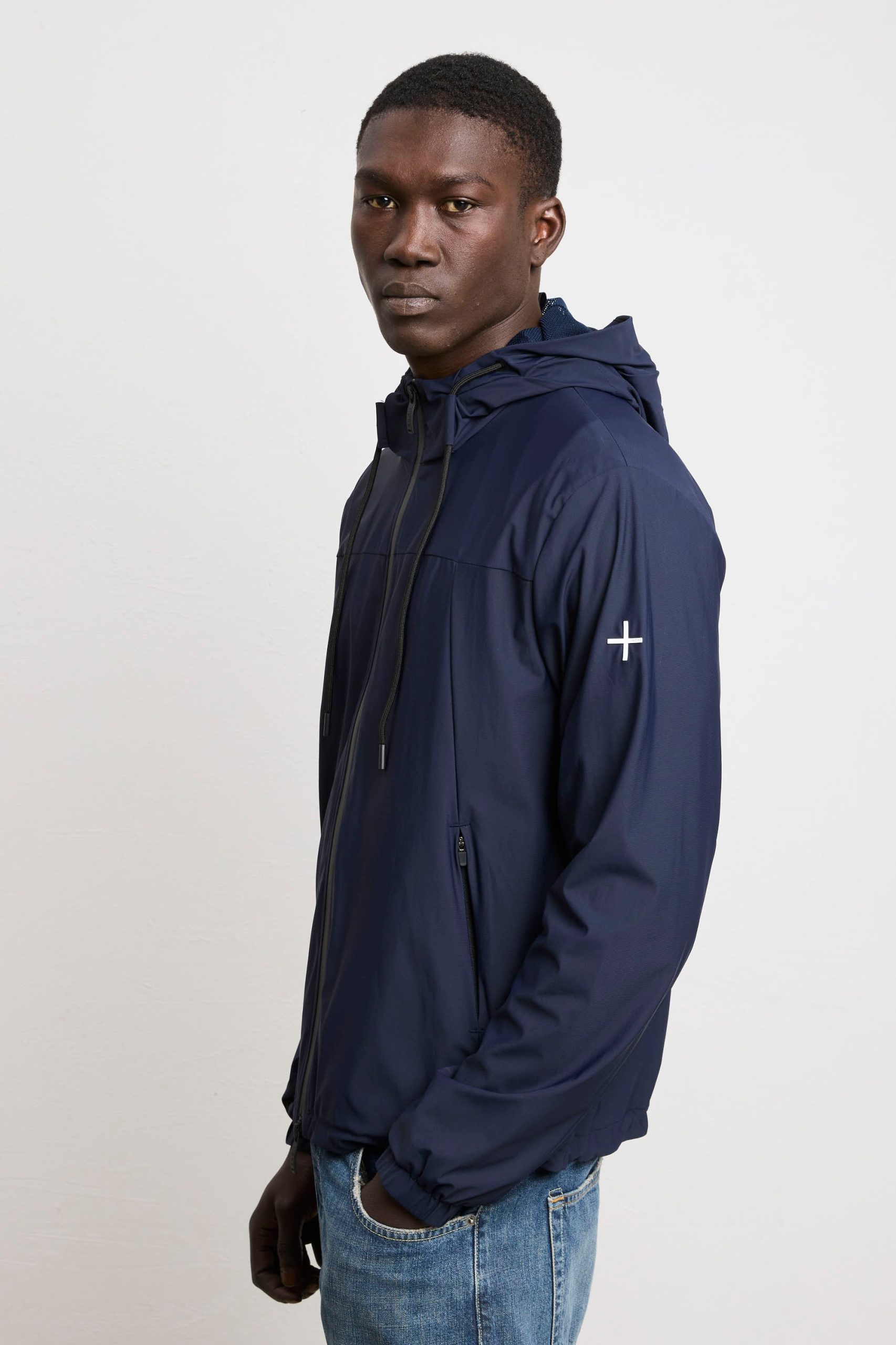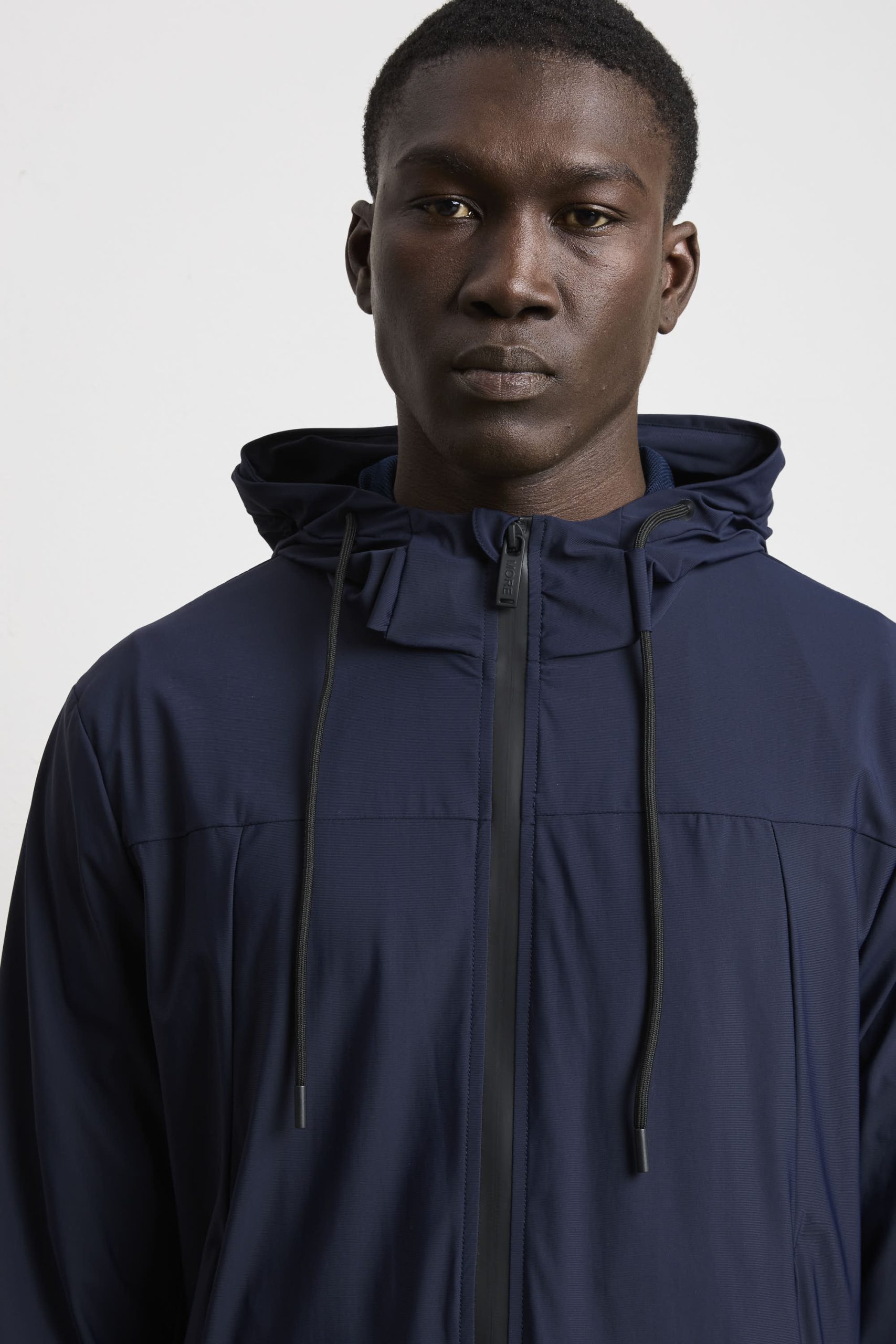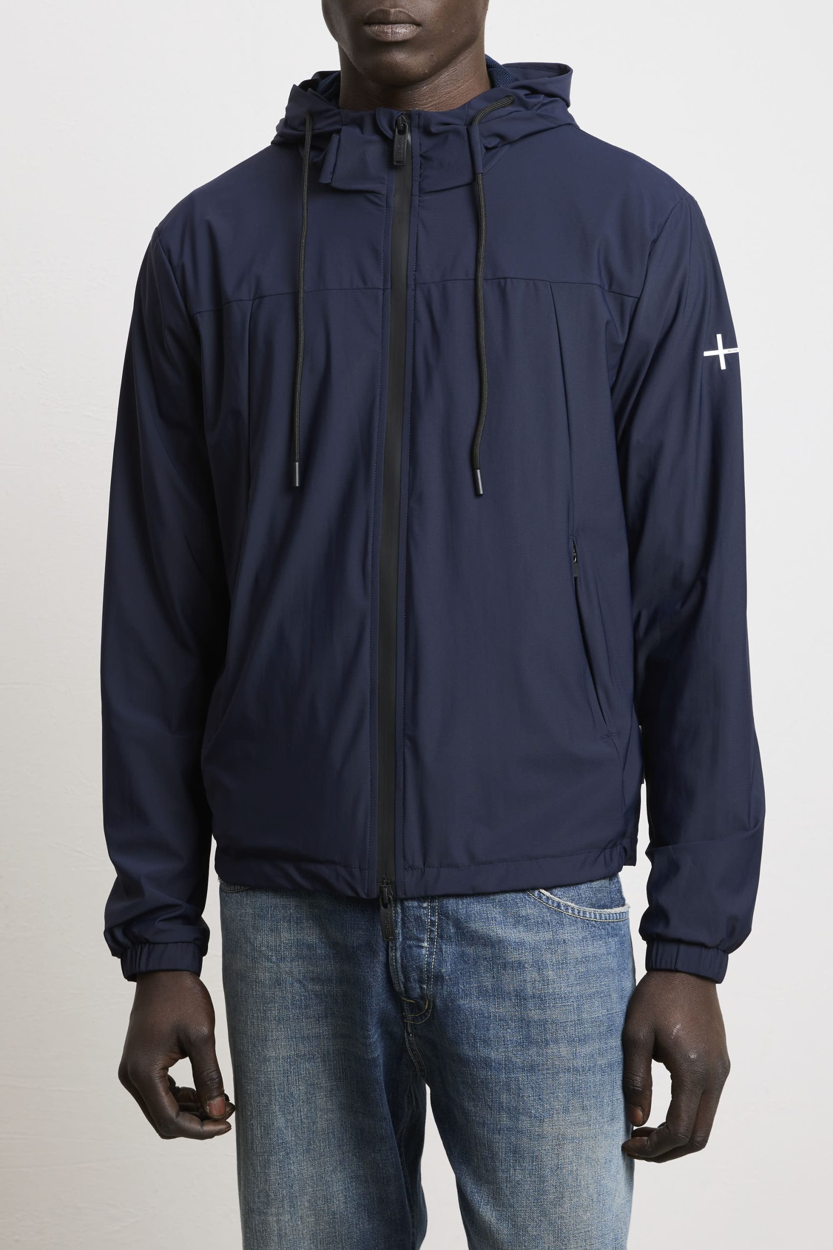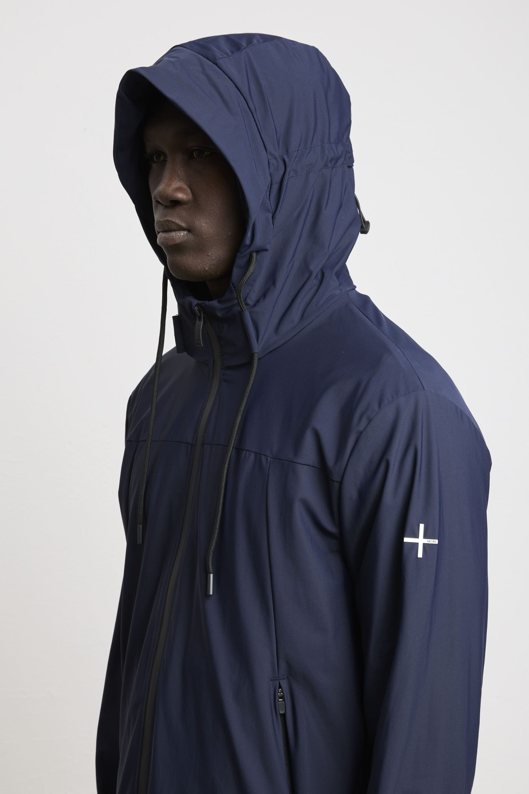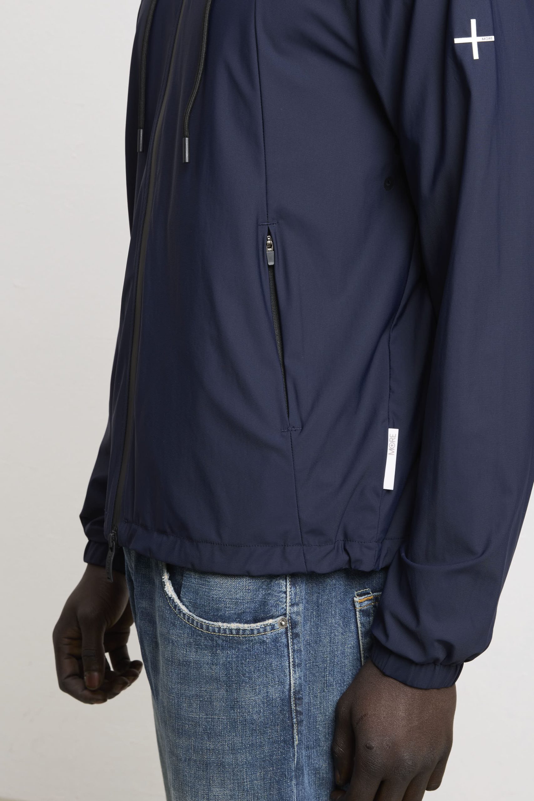 Tasche, collo e polsini: due tasche laterali dritte chiuse da zip, una interna chiusa da zip, cappuccio con lacci, polsini con elastico, fondo dritto regolabile
