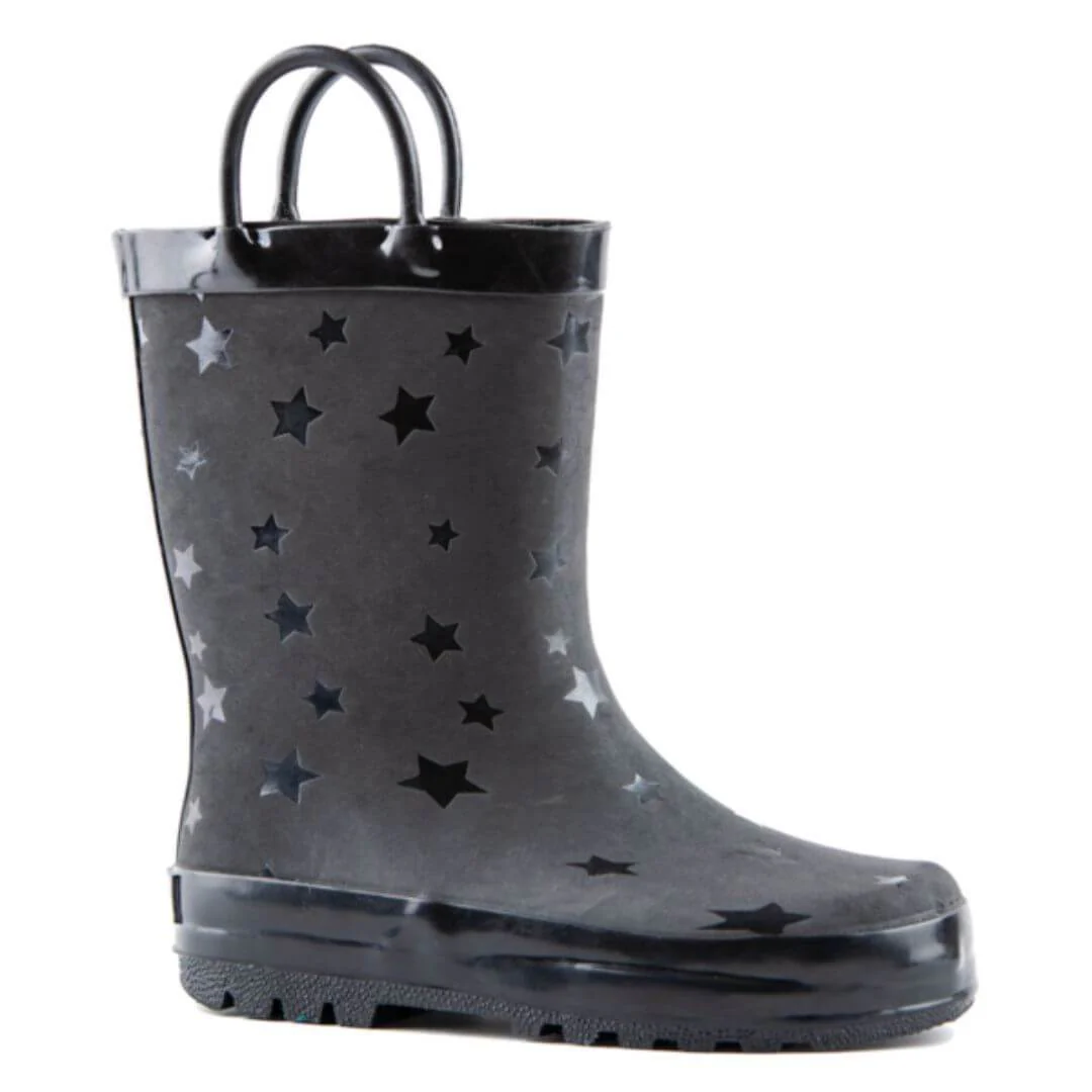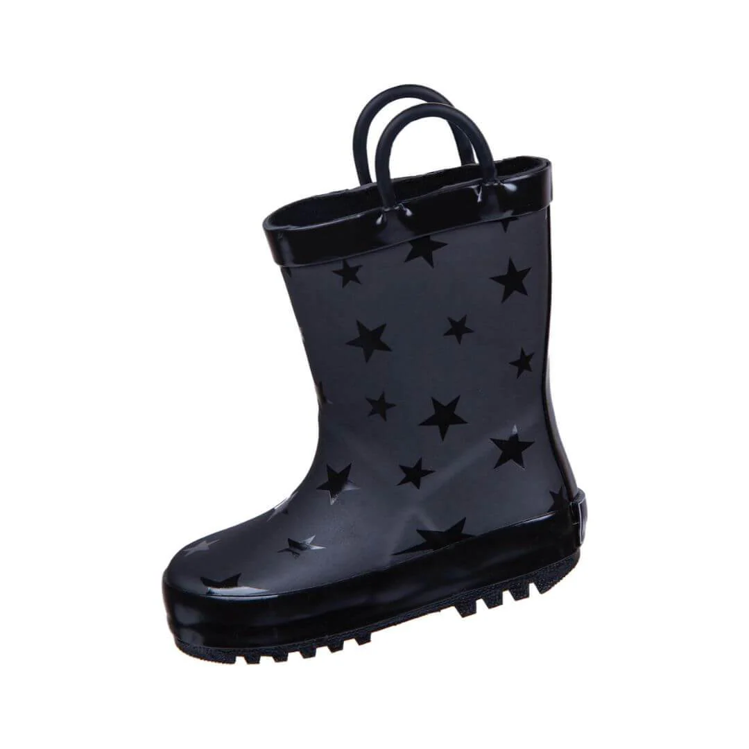 Questi bellissimi stivali sono decorati in una simpatica stampa con tante stelle tono su tono che saprà stimolare la fantasia del tuo bambino sembrano gli stivali di un maghetto, non trovi?