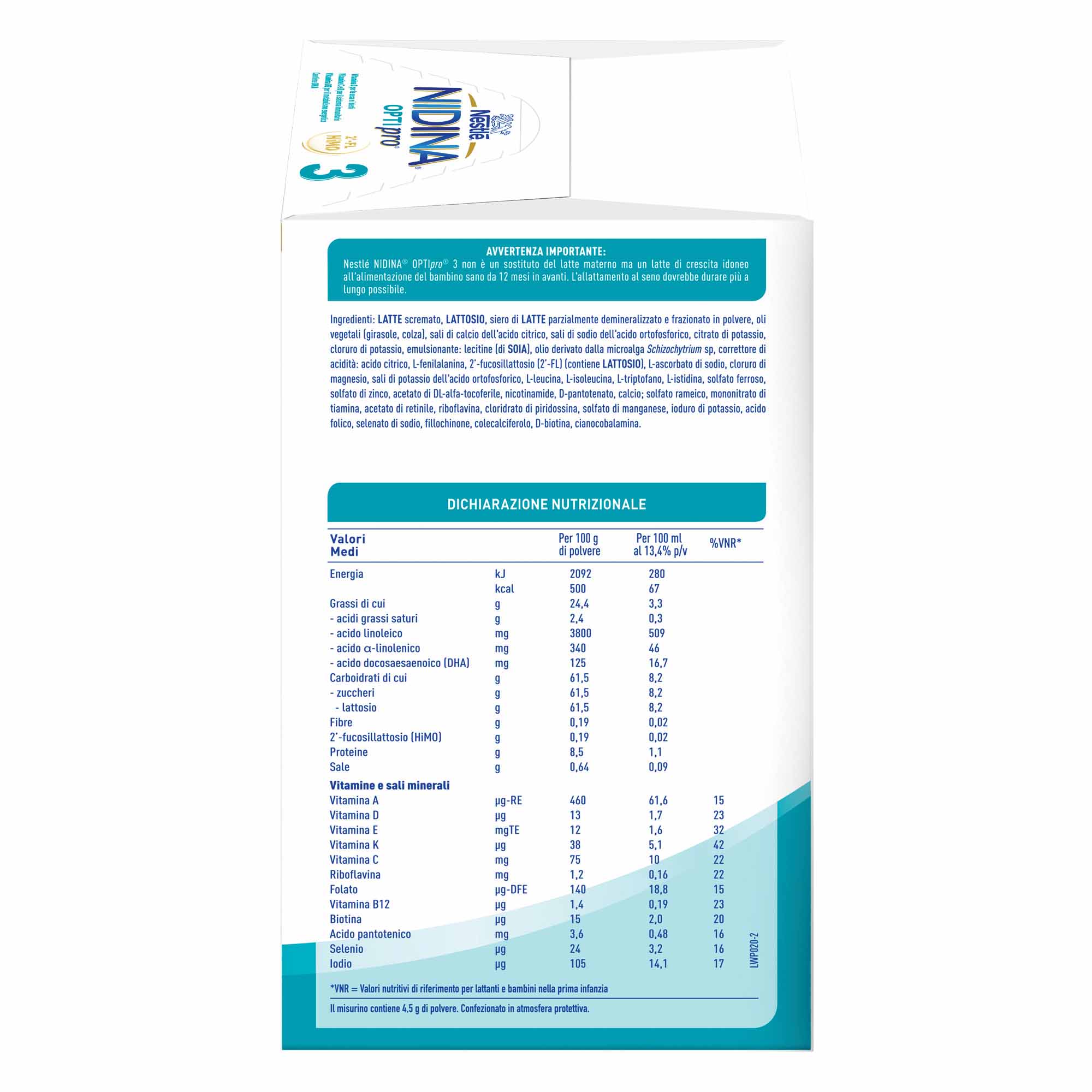 Nestlé® NIDINA® OPTIpro® 3 è un latte di crescita in polvere indicato per l’alimentazione del bambino dai 12 mesi, nell’ambito di una dieta varia ed equilibrata e di uno stile di vita sano.