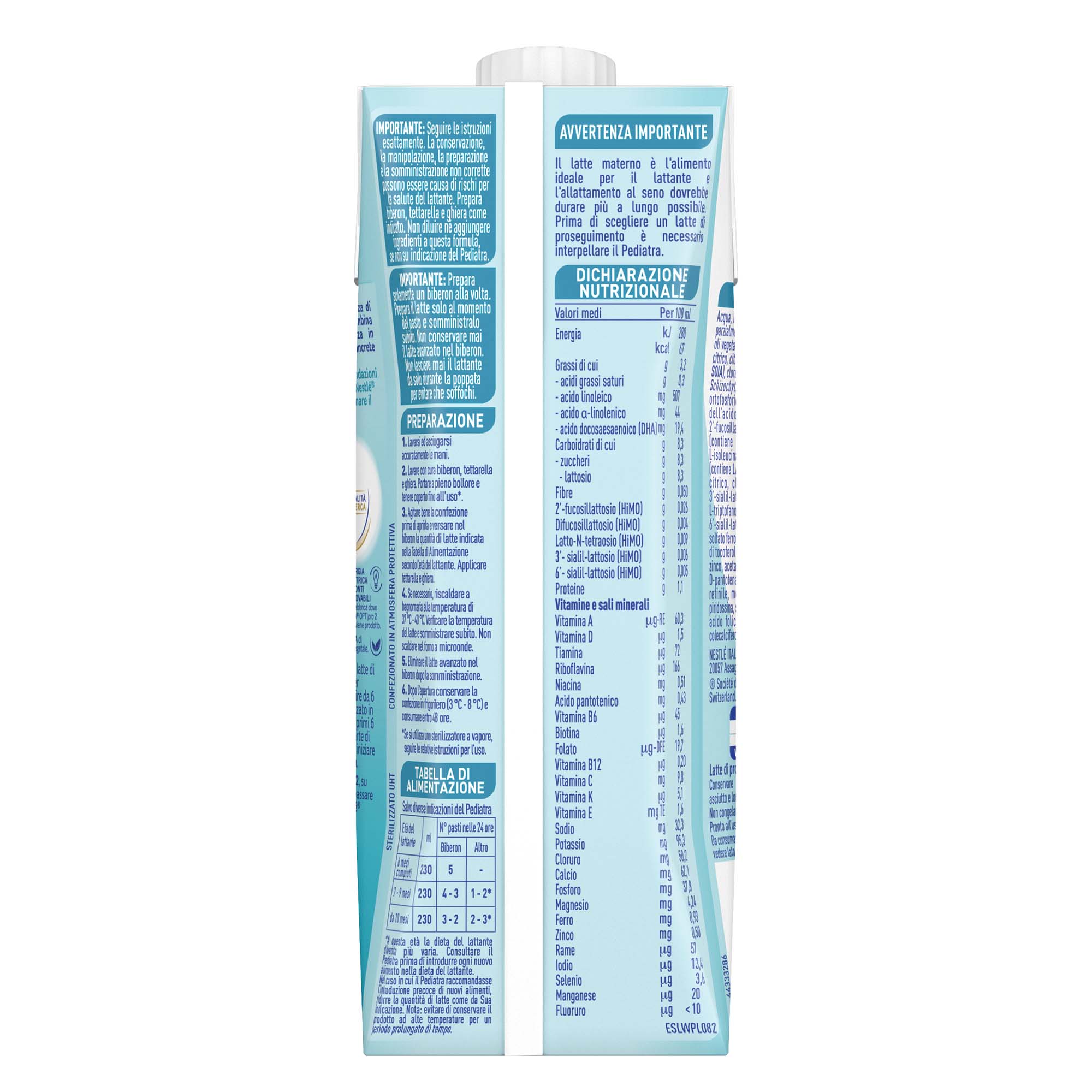 Nestlé® NIDINA® OPTIpro® 2 è un latte di proseguimento liquido indicato per l’alimentazione del lattante a partire da 6 mesi di vita. Non deve essere utilizzato in sostituzione del latte materno nei primi 6 mesi di vita. È formulato per far parte di un’alimentazione diversificata, da iniziare secondo le indicazioni del Pediatra.