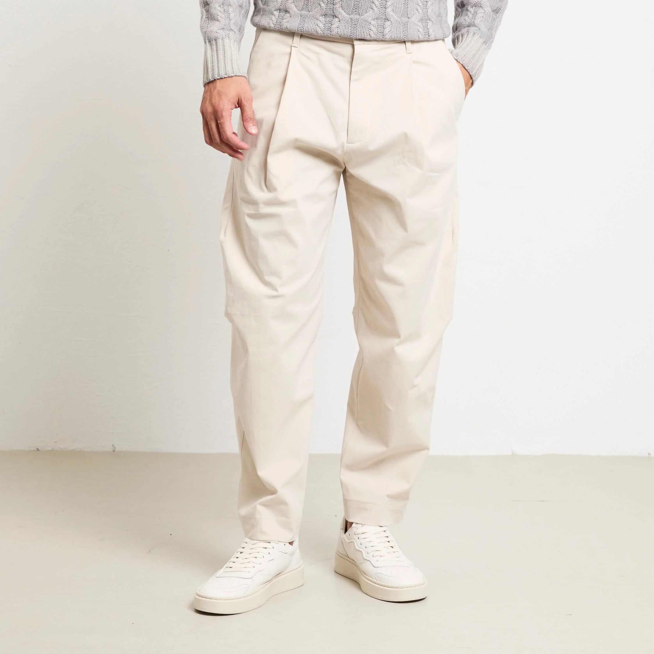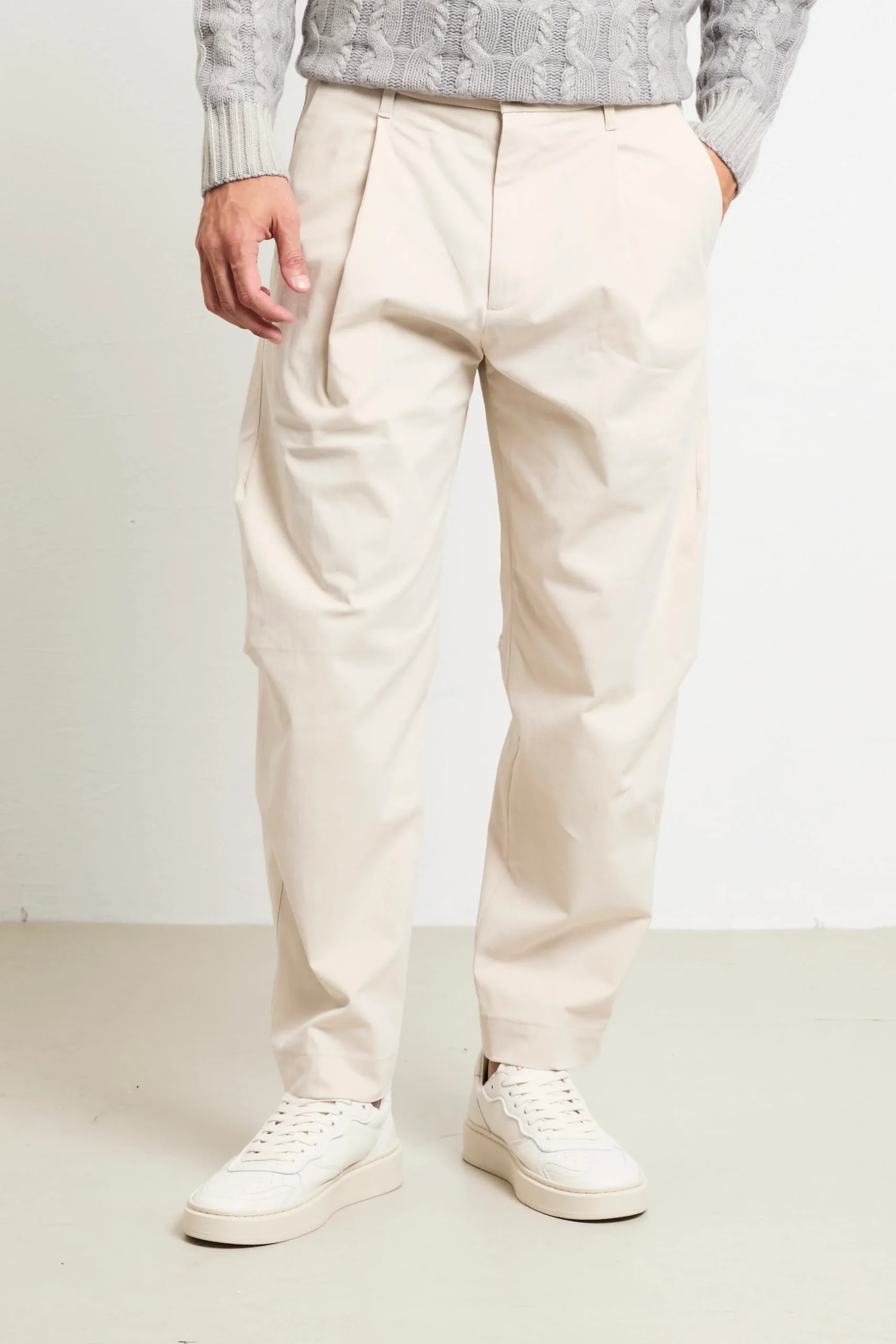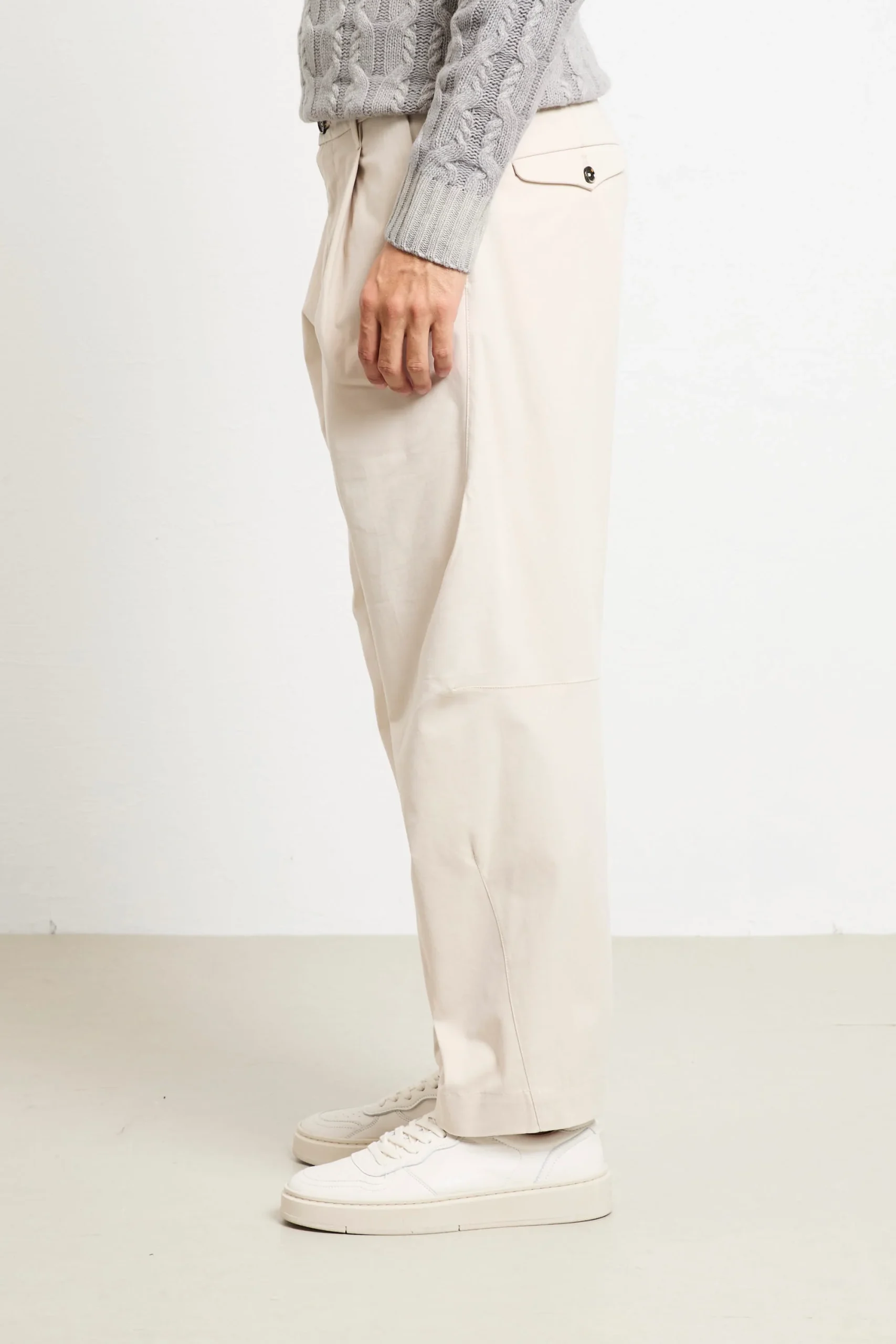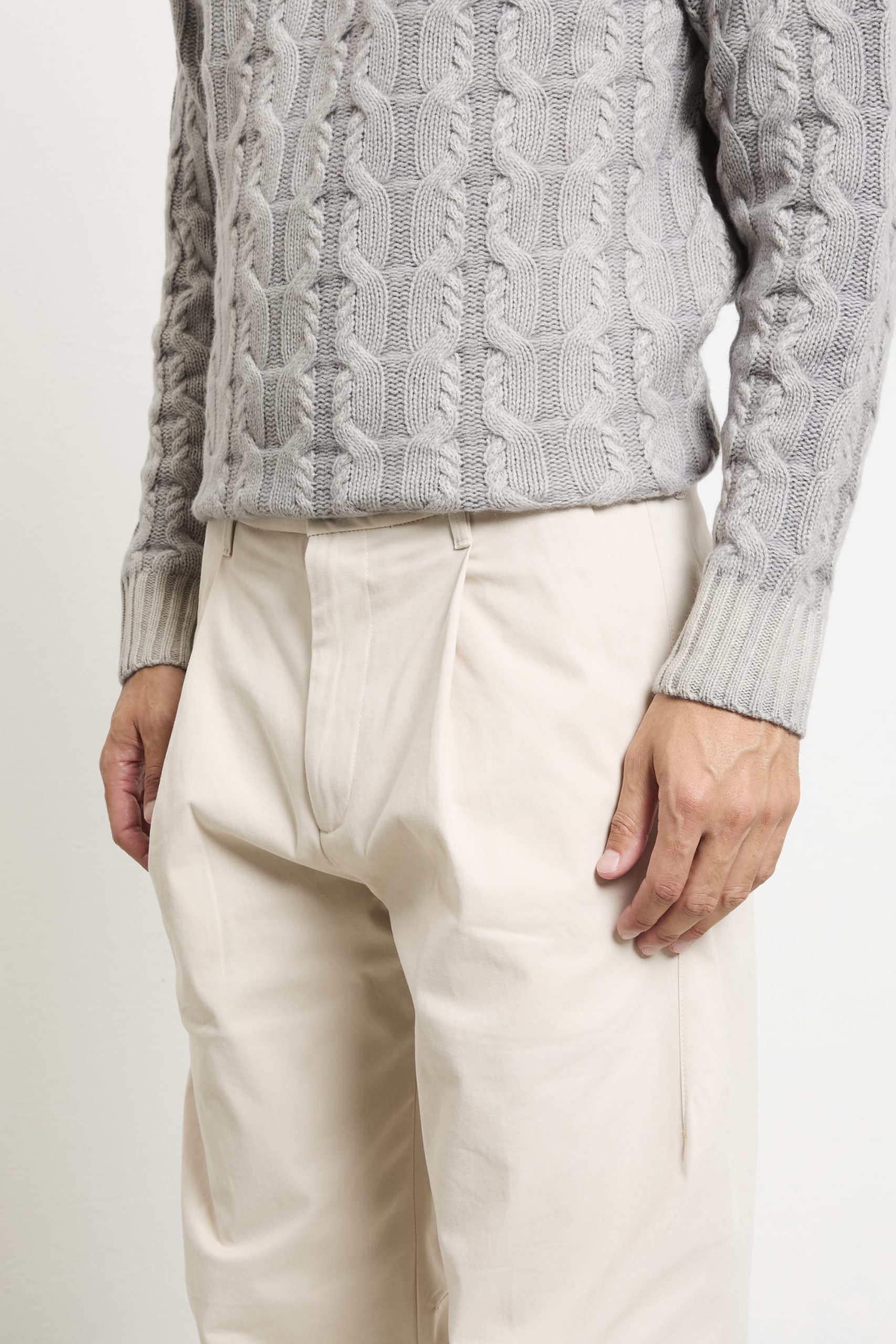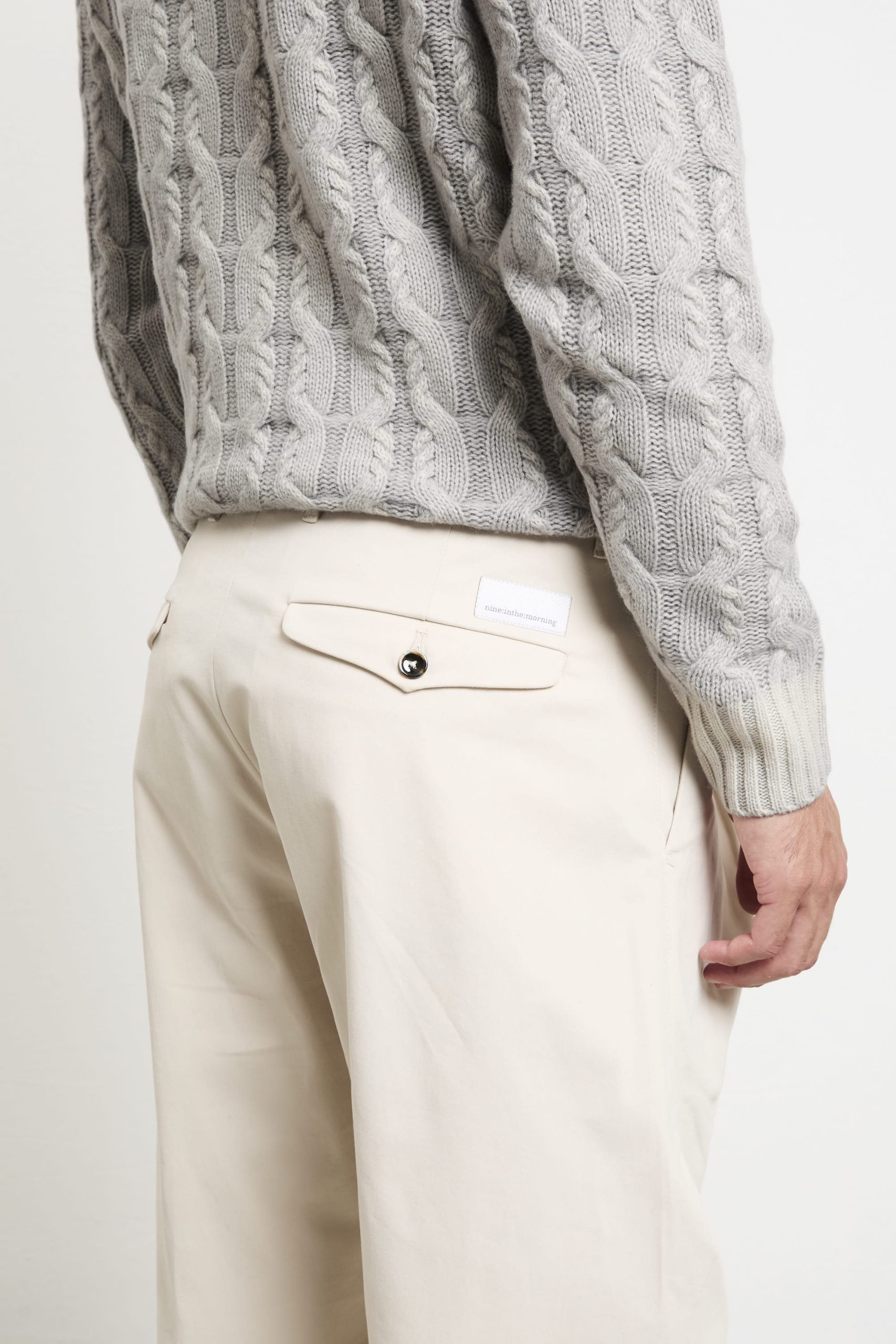 Questo pantalone modello Giulio, colore ghiaccio, è il perfetto equilibrio tra stile e praticità . La sua vestibilità carrot fit lo rende comodo e facile da indossare in ogni situazione. Per un look elegante e sofisticato, abbinalo a una camicia bianca e un blazer nero. Se cerchi qualcosa di più rilassato, prova con un maglione oversize in lana e sneakers per un outfit casual ma sempre stiloso. Un pantalone versatile che aggiunge freschezza e raffinatezza al tuo look, senza rinunciare al comfort.