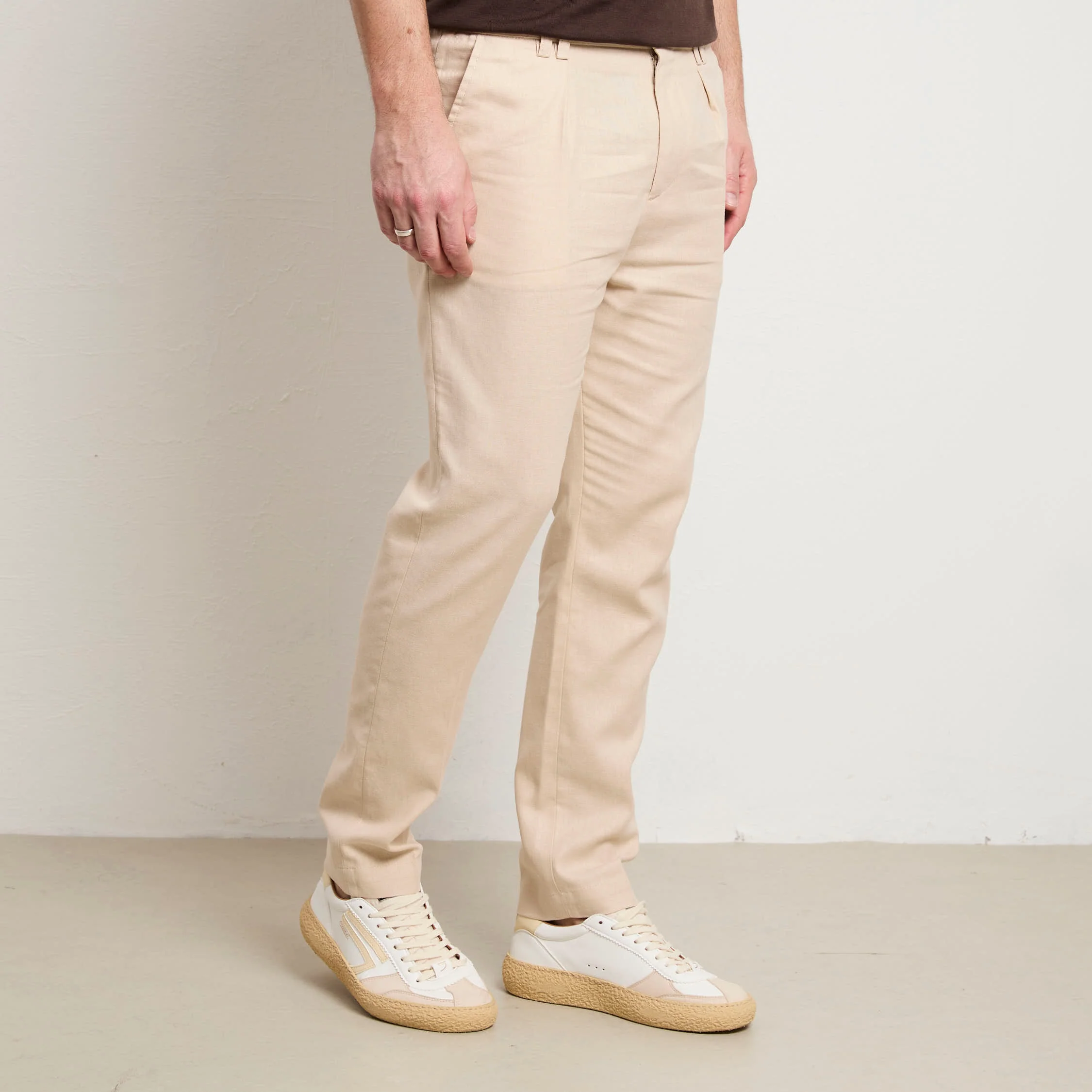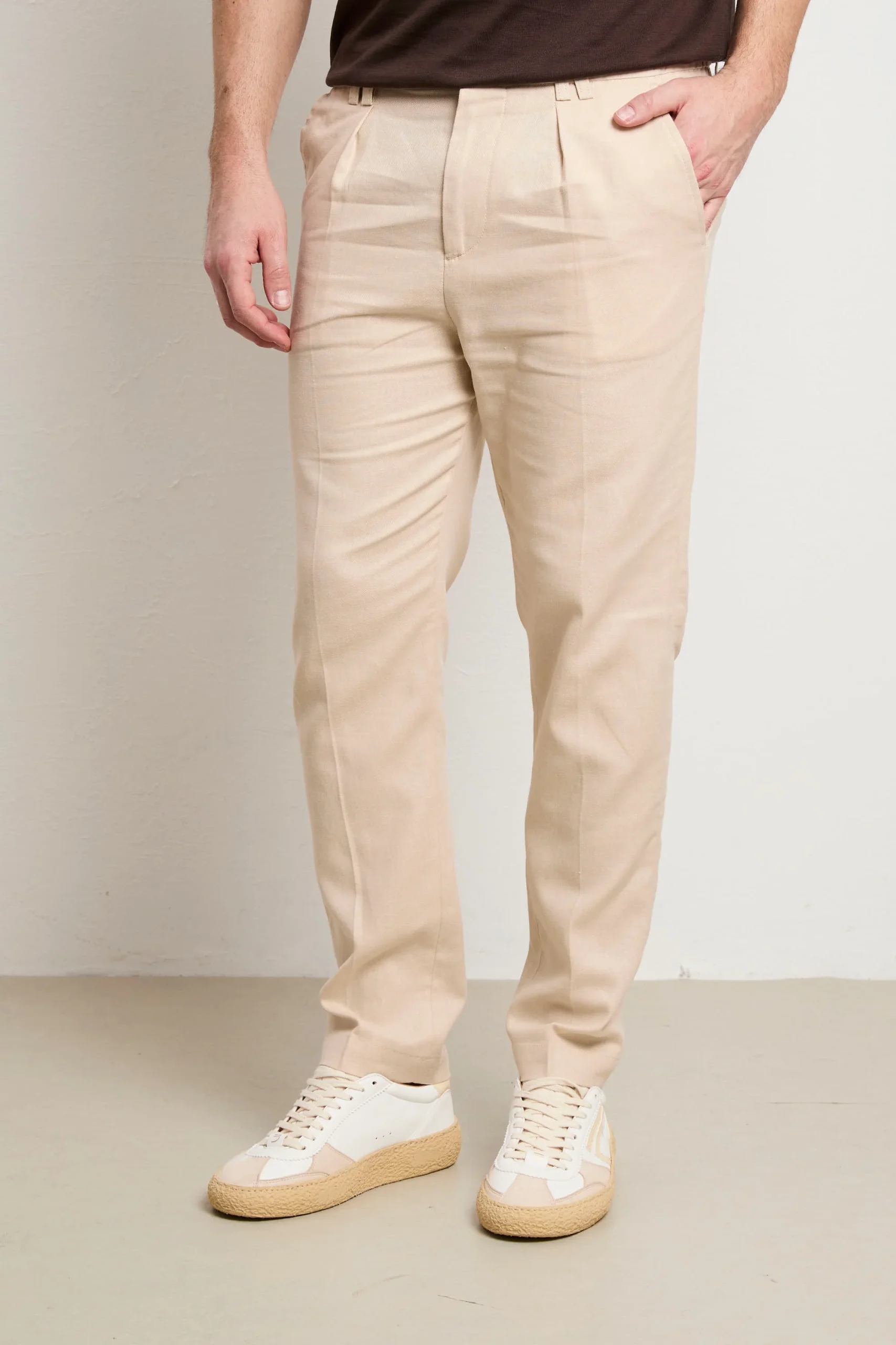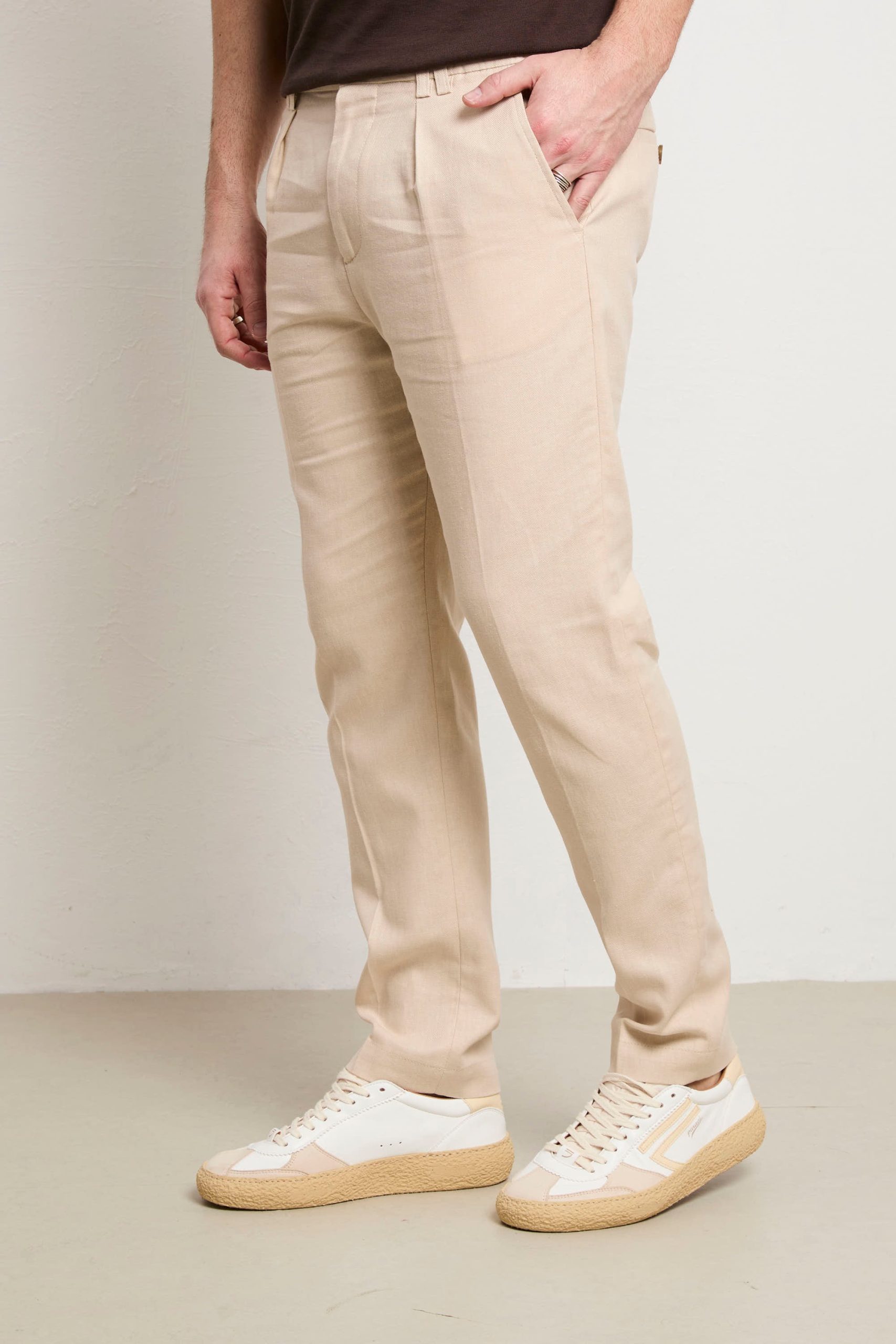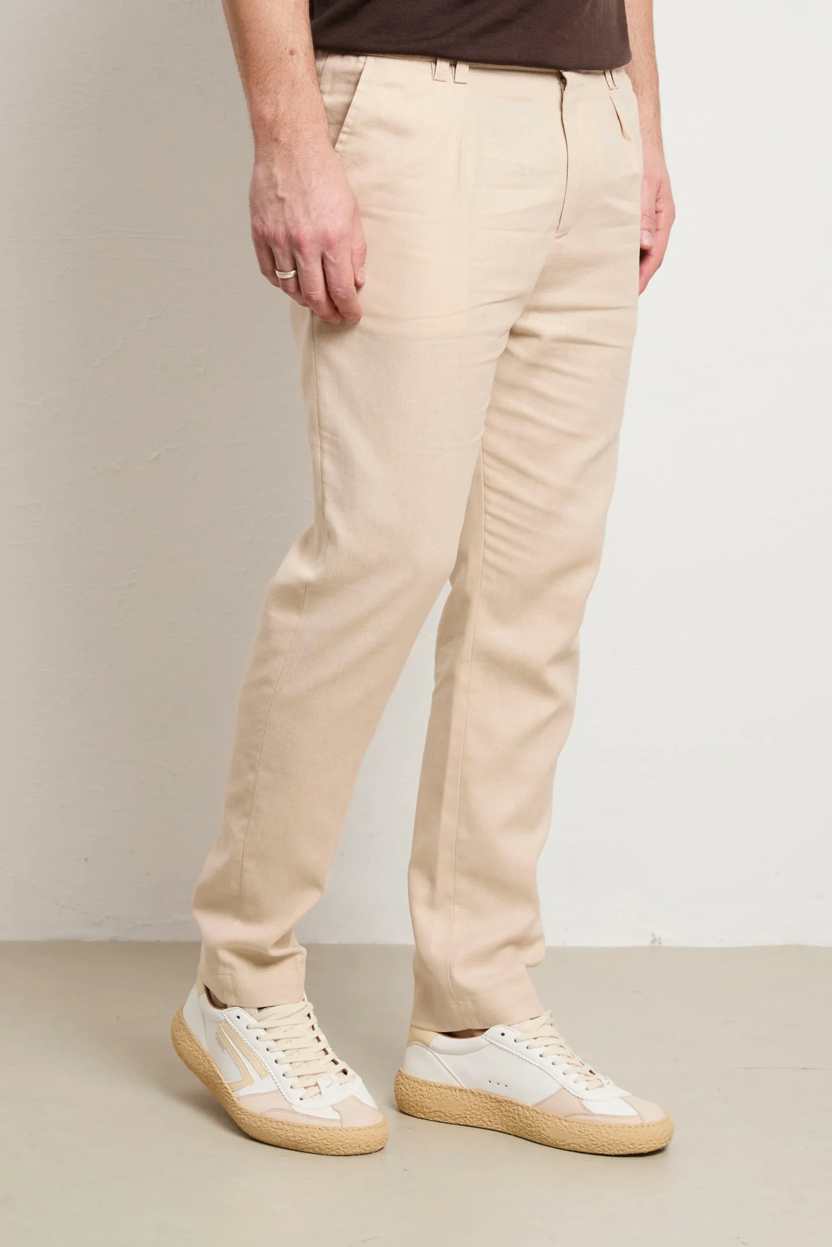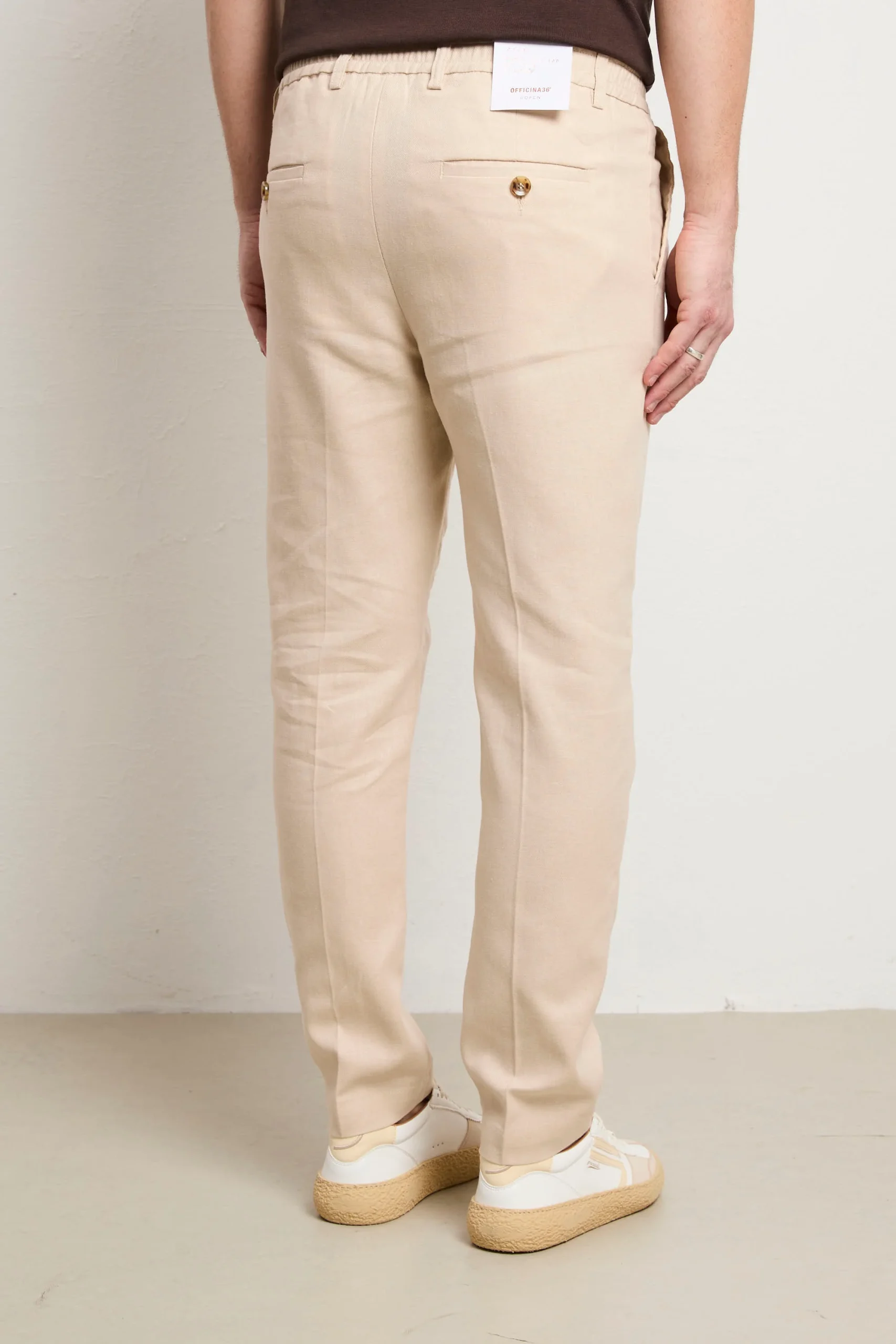 Pantalone in gabardina stretch leggera, progettato per chi non scende a compromessi tra stile e benessere. La composizione offre elasticità naturale e traspirabilità superiore, ideale per indossare tutto il giorno. Il loose fit e la vita normale creano una silhouette moderna e rilassata, perfetta per uno stile casual-smart versatile. Le tasche laterali oblique garantiscono praticità , mentre la tasca posteriore a patta aggiunge carattere autentico. La chiusura con elastico e coulisse permette una vestibilità personalizzabile e confortevole, adattandosi perfettamente al tuo corpo. Il colore panna neutro è un alleato versatile che si abbina facilmente a qualsiasi palette cromatica. Realizzato con orgoglio in Italia, questo pantalone è un investimento consapevole in qualità costruttiva e design essenziale che dura nel tempo.