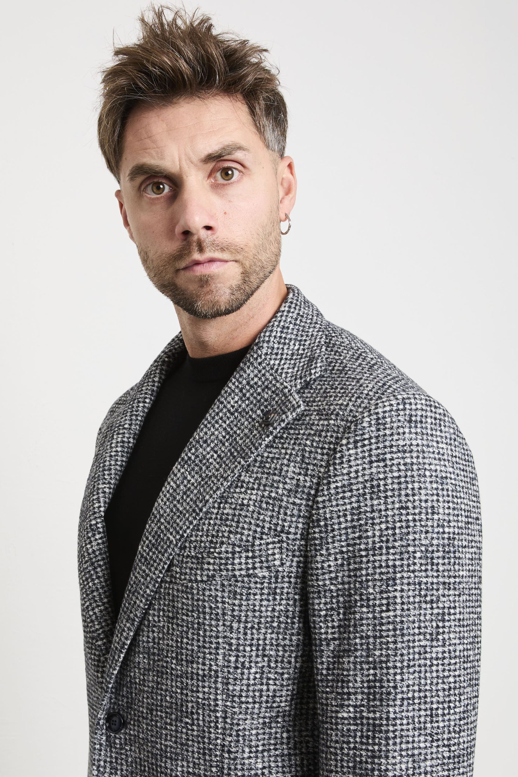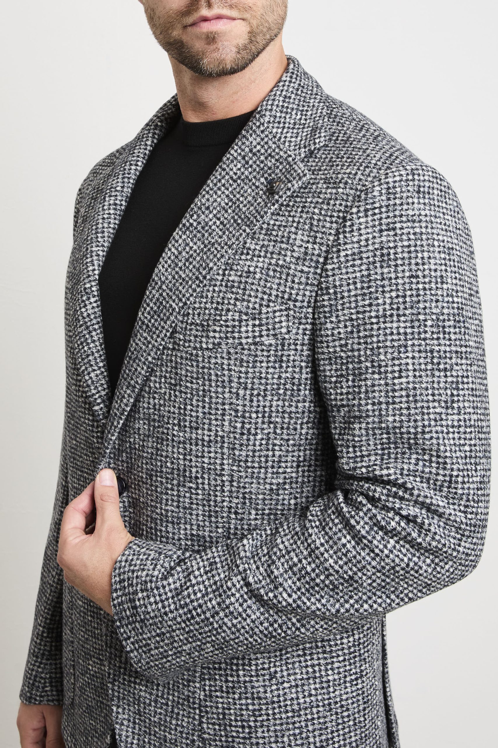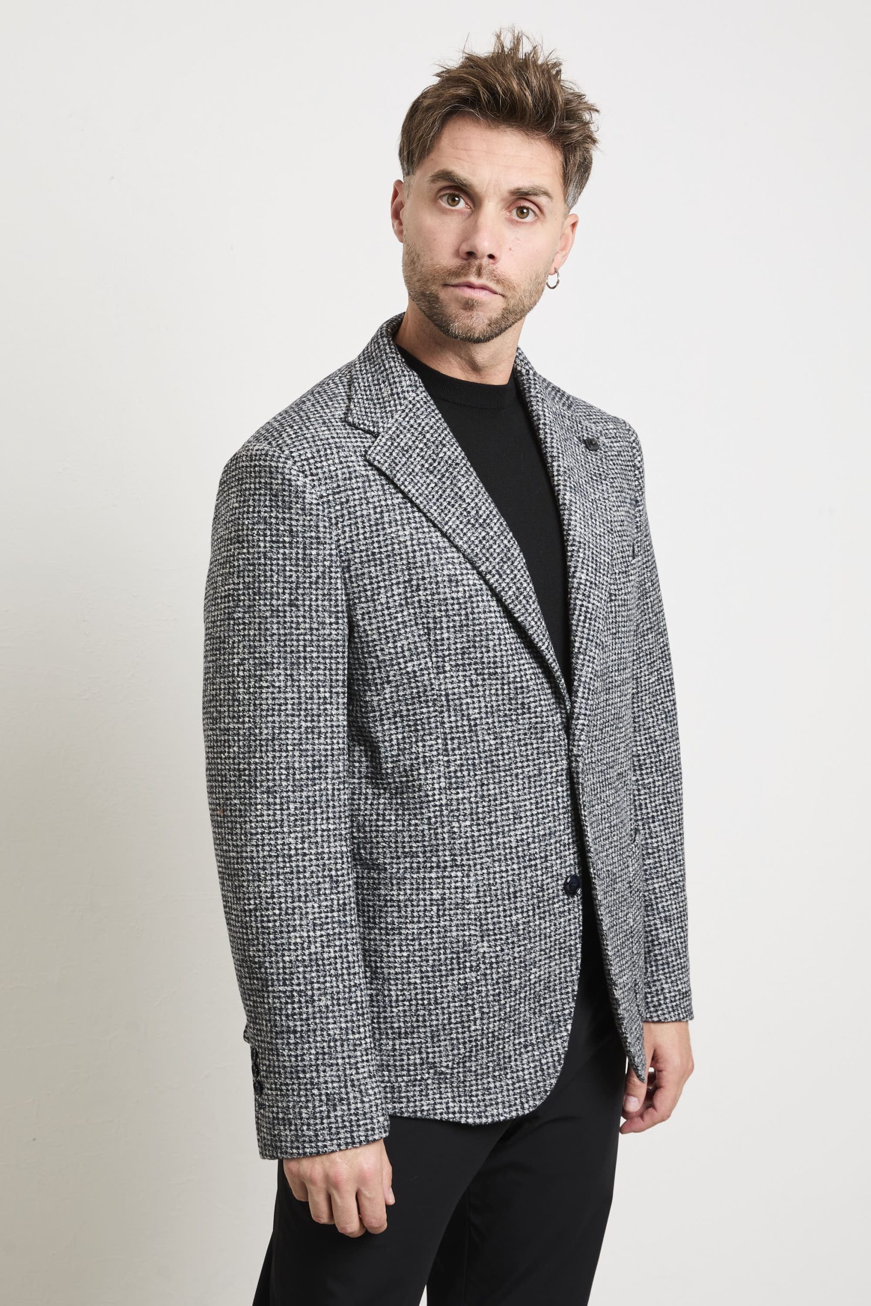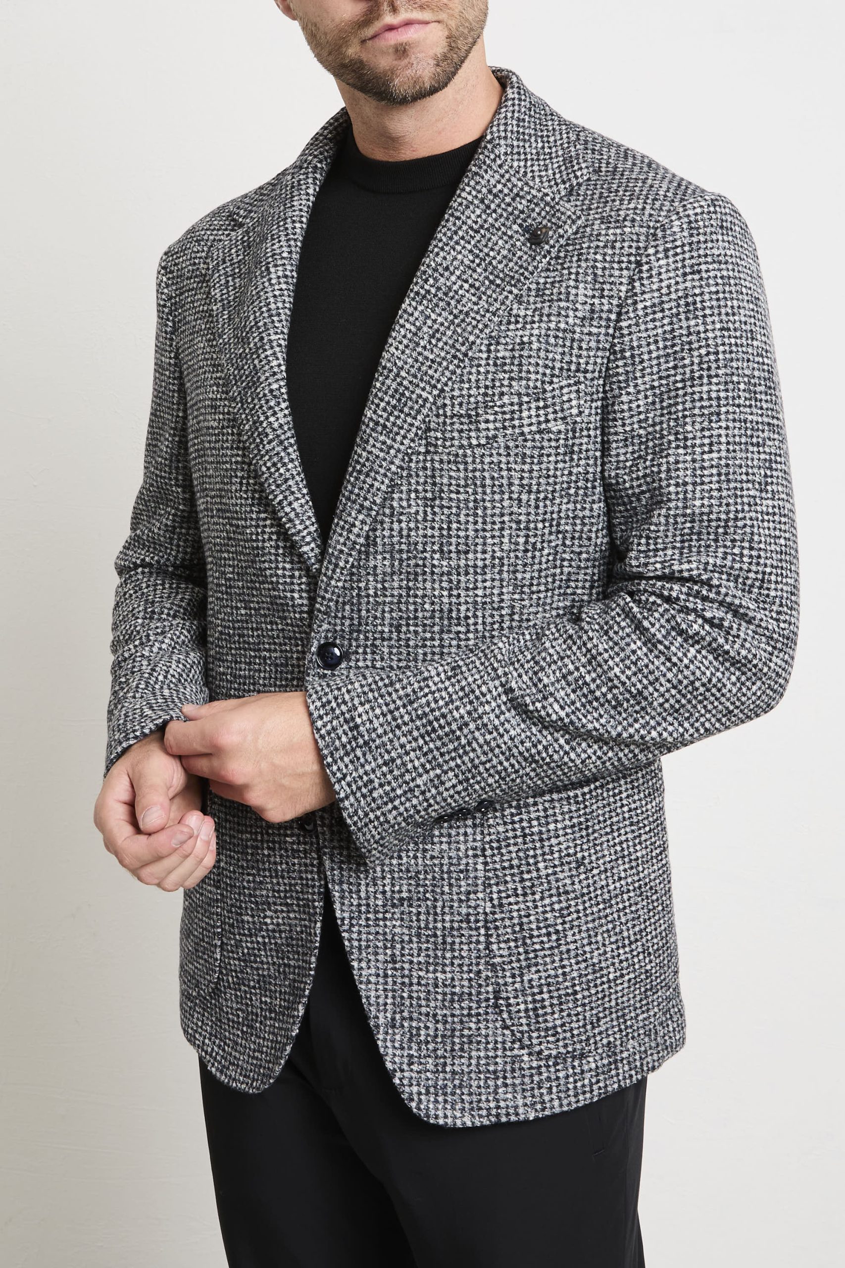• Tessuto: lavorazione micro pied-de-poule mélange con effetto tridimensionale