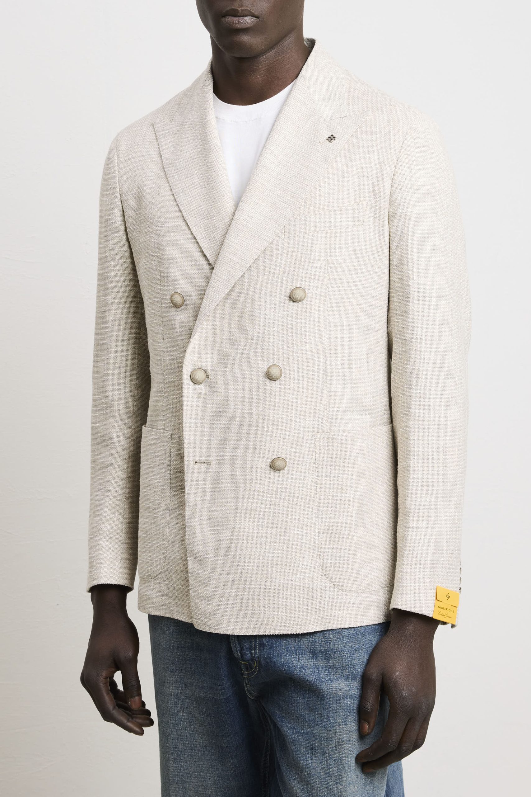 Dettagli: tasche applicate, rever classico, doppi spacchi posteriori