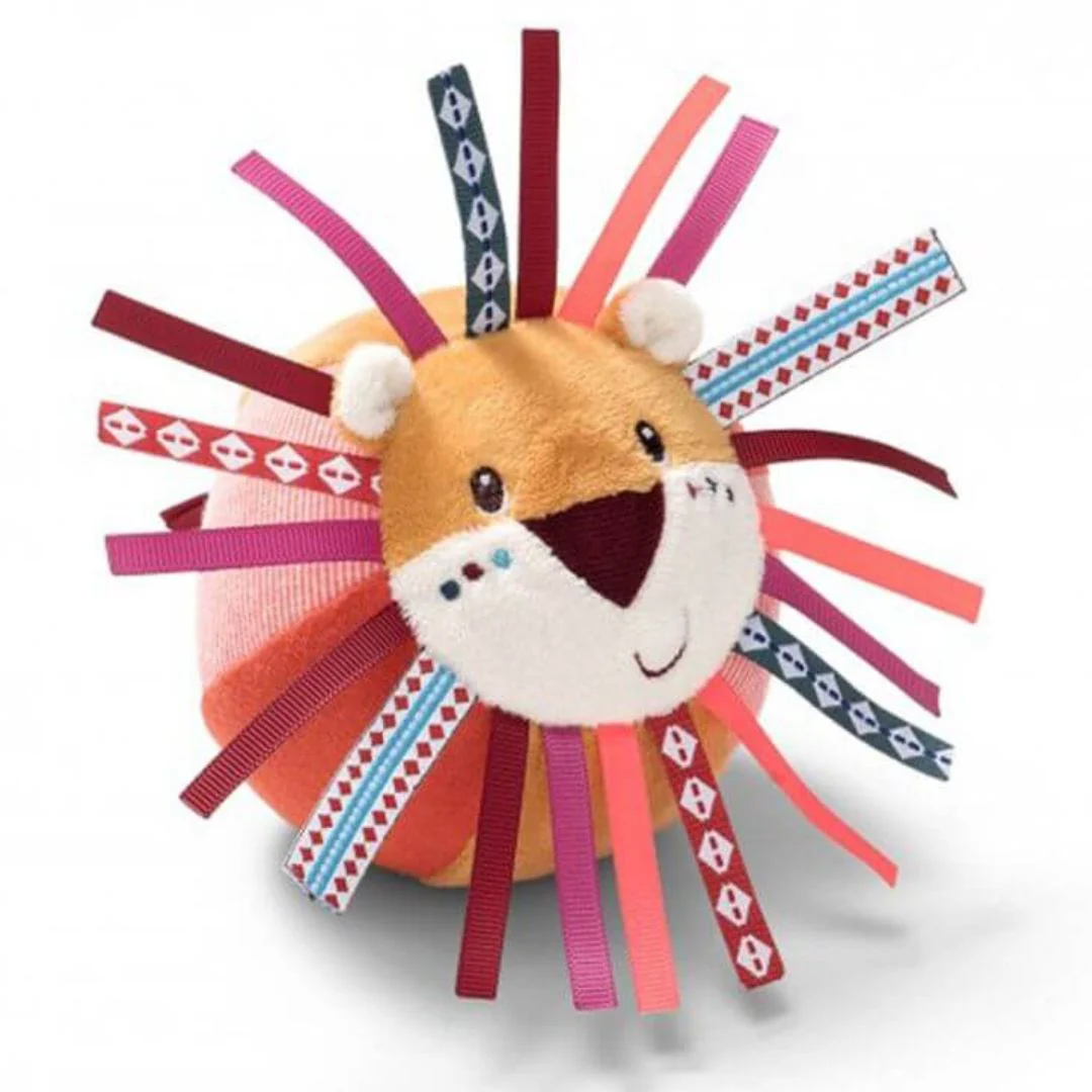 La piccola palla morbida con la faccina del leone Jack ha tante etichette da mordicchiare e con cui giocare! All’interno un campanellino. Non la trovi anche tu una bellissima idea regalo?