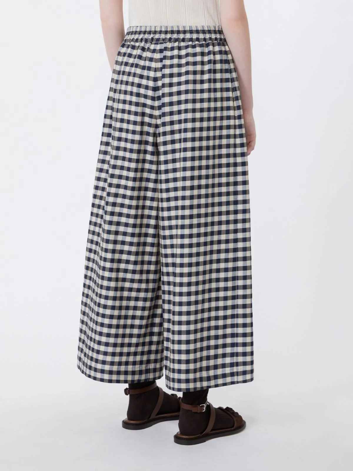 Pantalone dalla silhouette ampia e fluida con taglio cropped alla caviglia.