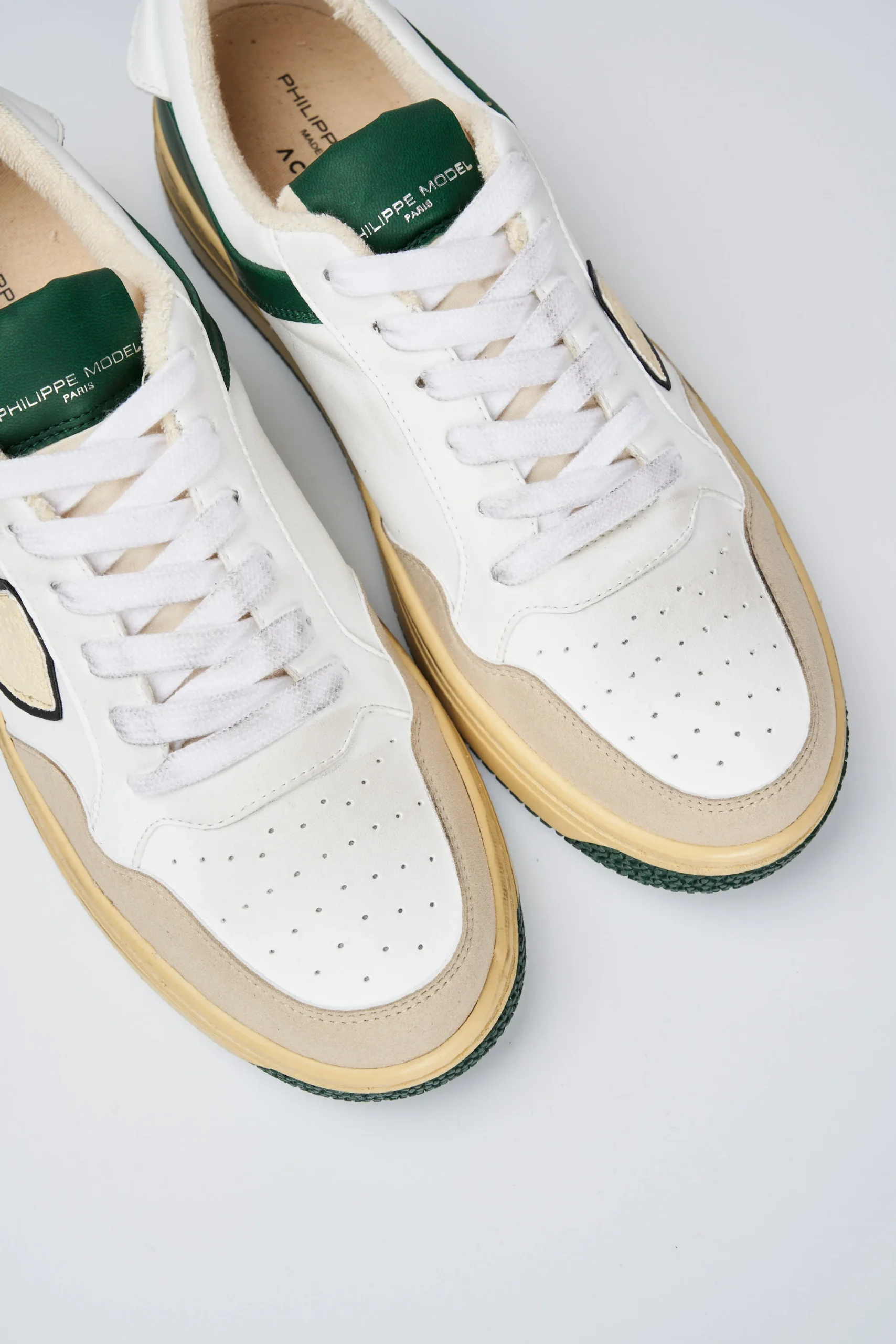 Philippe Model ACBC Sneakers Lyon in pelle e suede bianco-verde