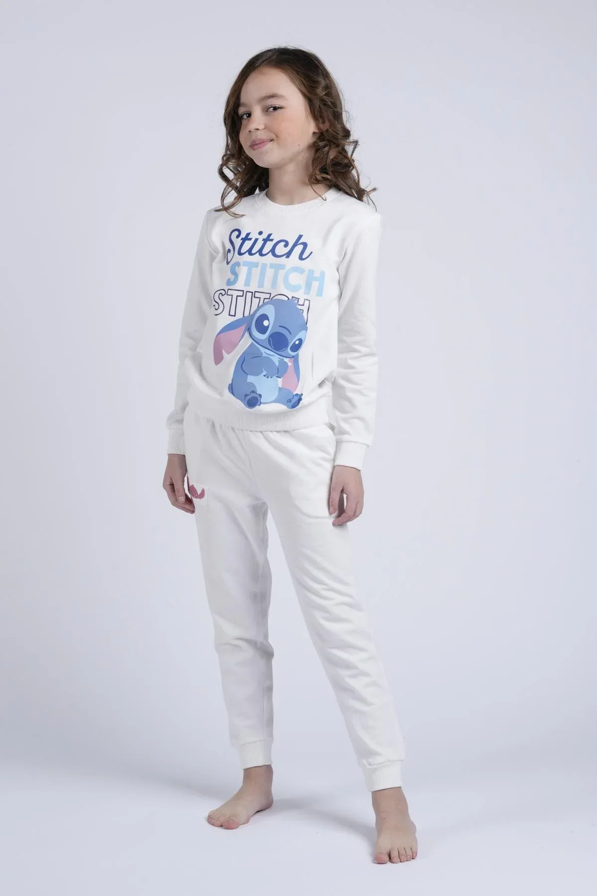 Una tuta comoda e pratica, perfetto per il relax e il tempo libero. Felpa a manica lunga, pantalone lungo. Il disegno di Stitch aggiunge un tocco di divertimento e stile.