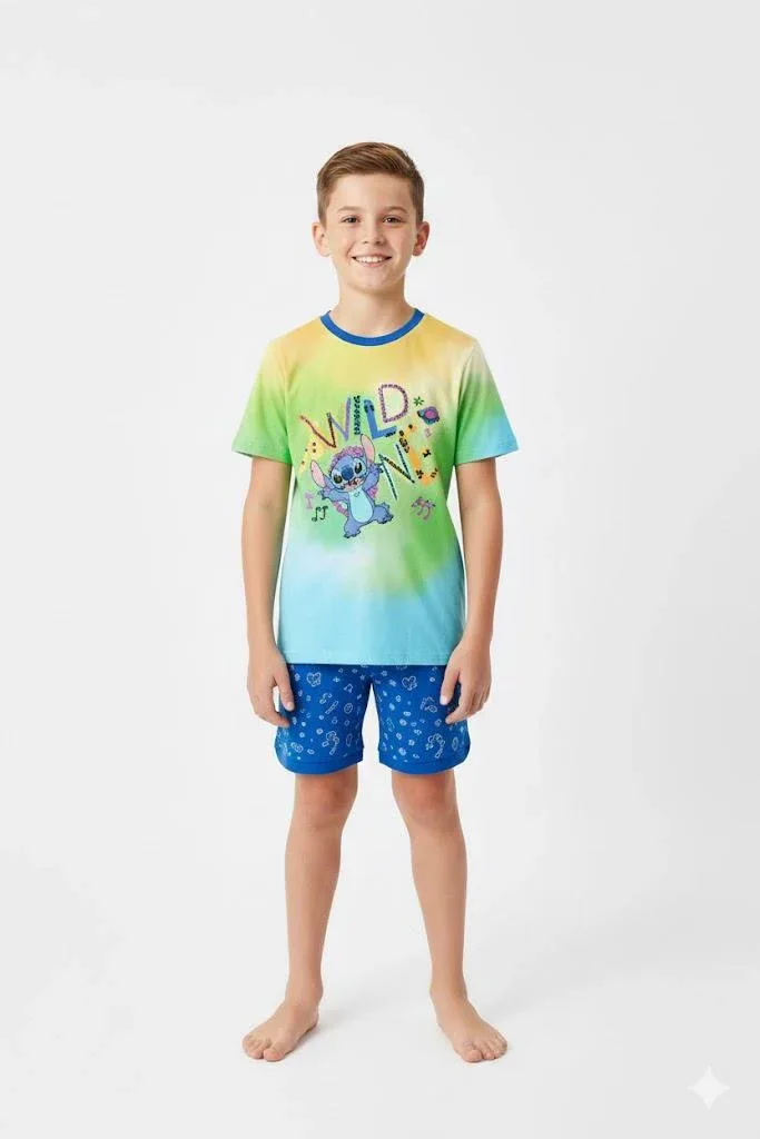 Un pigiama dal design allegro e pratico, pensato per il massimo comfort durante il riposo. Il disegno di Stitch aggiunge un tocco di divertimento e stile. Questo modello ha manica corta e pantalone corto.
