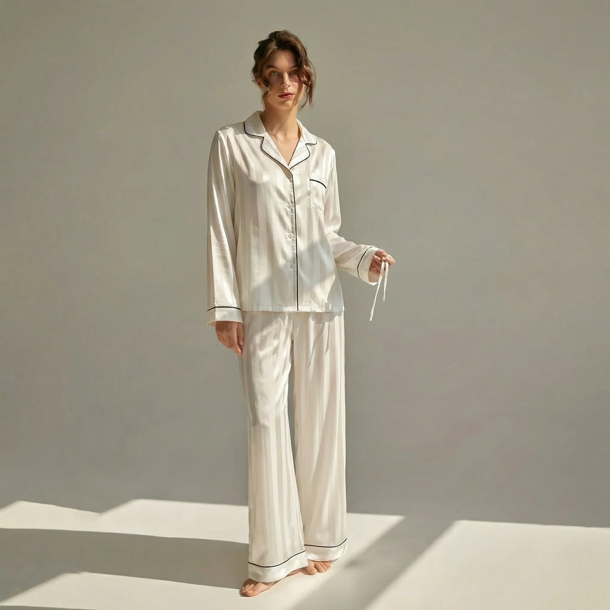 Lasciati avvolgere da una sensazione di morbidezza incomparabile con questo completo in seta, pensato per rendere ancora più speciali le tue serate autunnali e invernali.