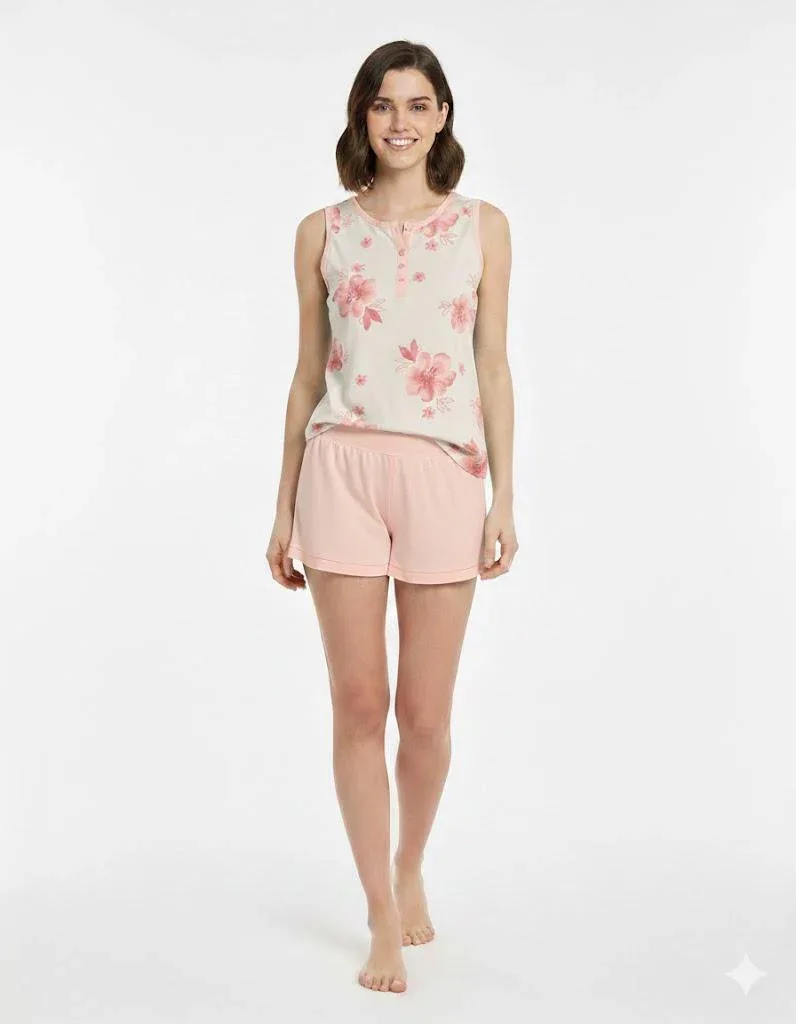 Un capo che unisce raffinatezza e comodità . Ideale per chi cerca un pigiama leggero e piacevole da indossare. Questo modello ha pantalone corto e maglia giromanica.