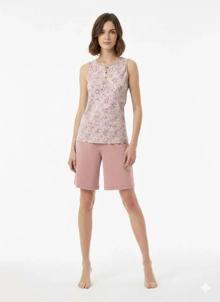 Praticità e comfort si fondono in questo pigiama KiWear, ideale per serate di relax. Questo modello ha maglia giromanica serafino e pantalone al ginocchio.