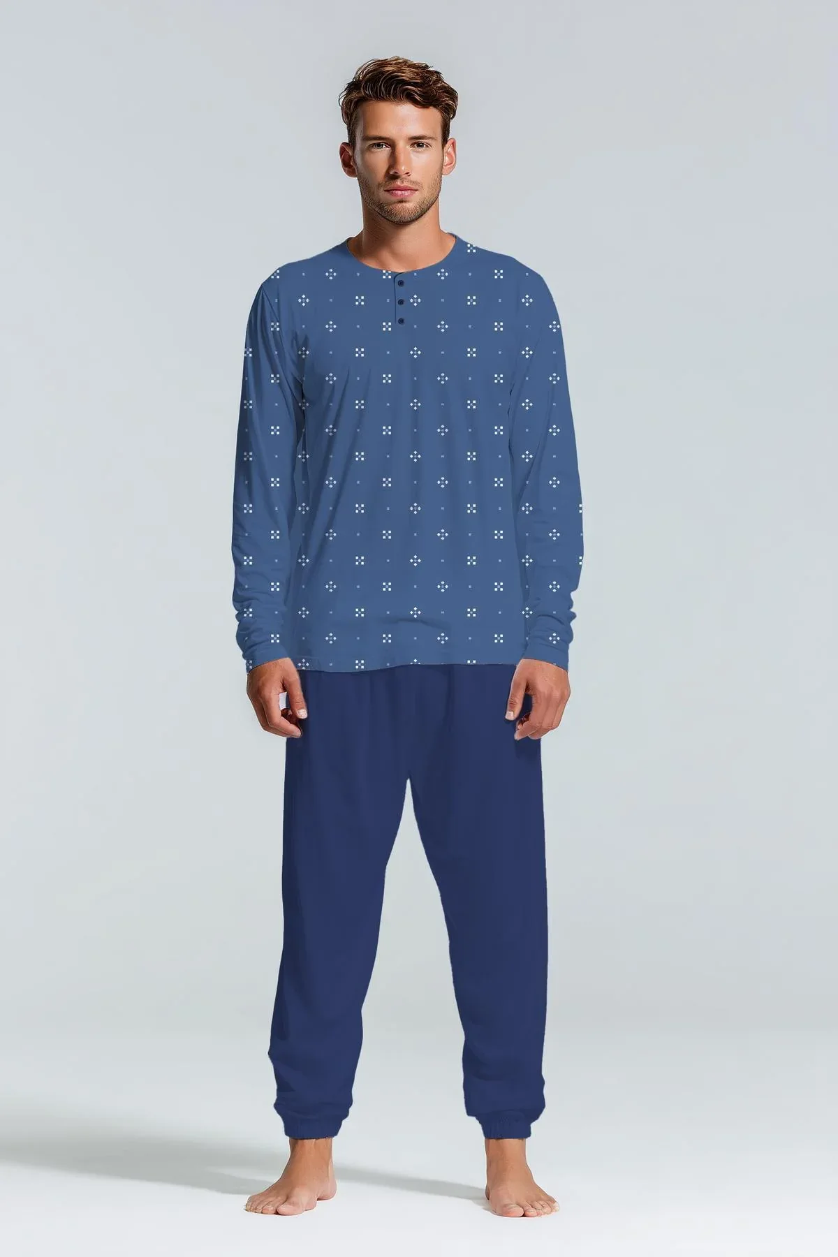 Scopri il massimo comfort con il pigiama da uomo Kiwear. Realizzato in morbido jersey, questo modello lungo garantisce calore e una sensazione piacevole sulla pelle, ideale per le tue serate di relax a casa. Il design classico con manica e pantalone lunghi offre una vestibilità comoda e versatile, perfetta per riposare con stile.