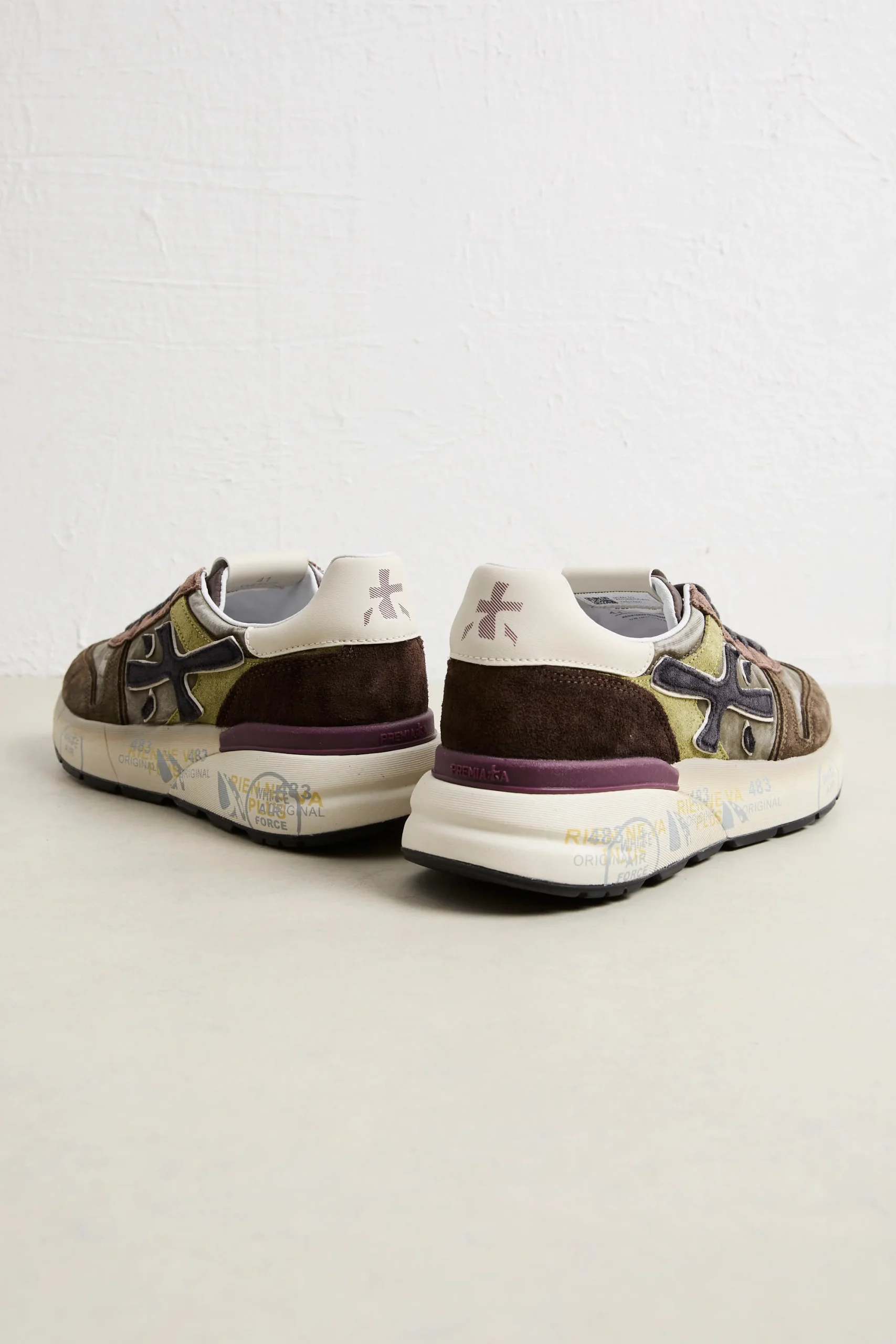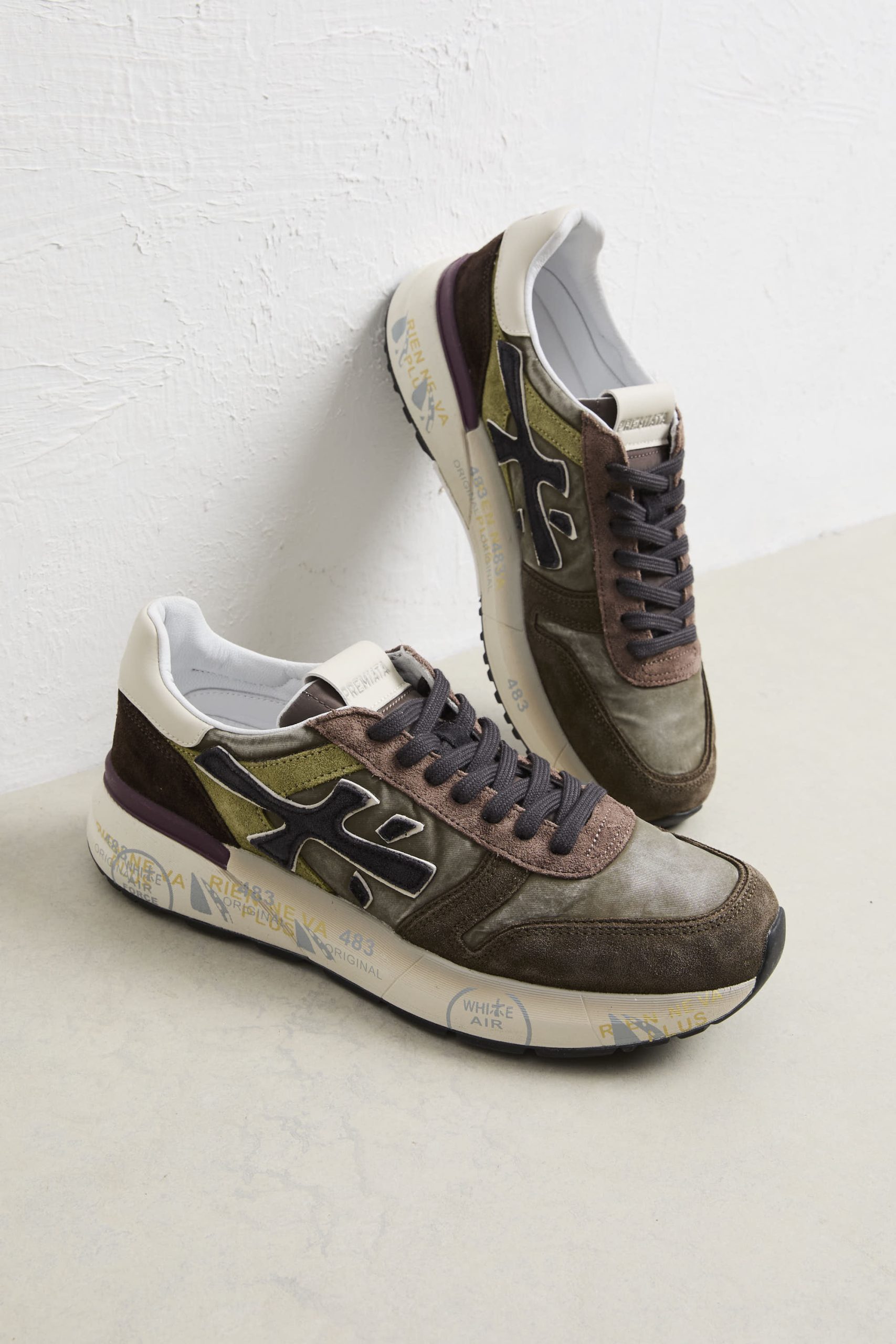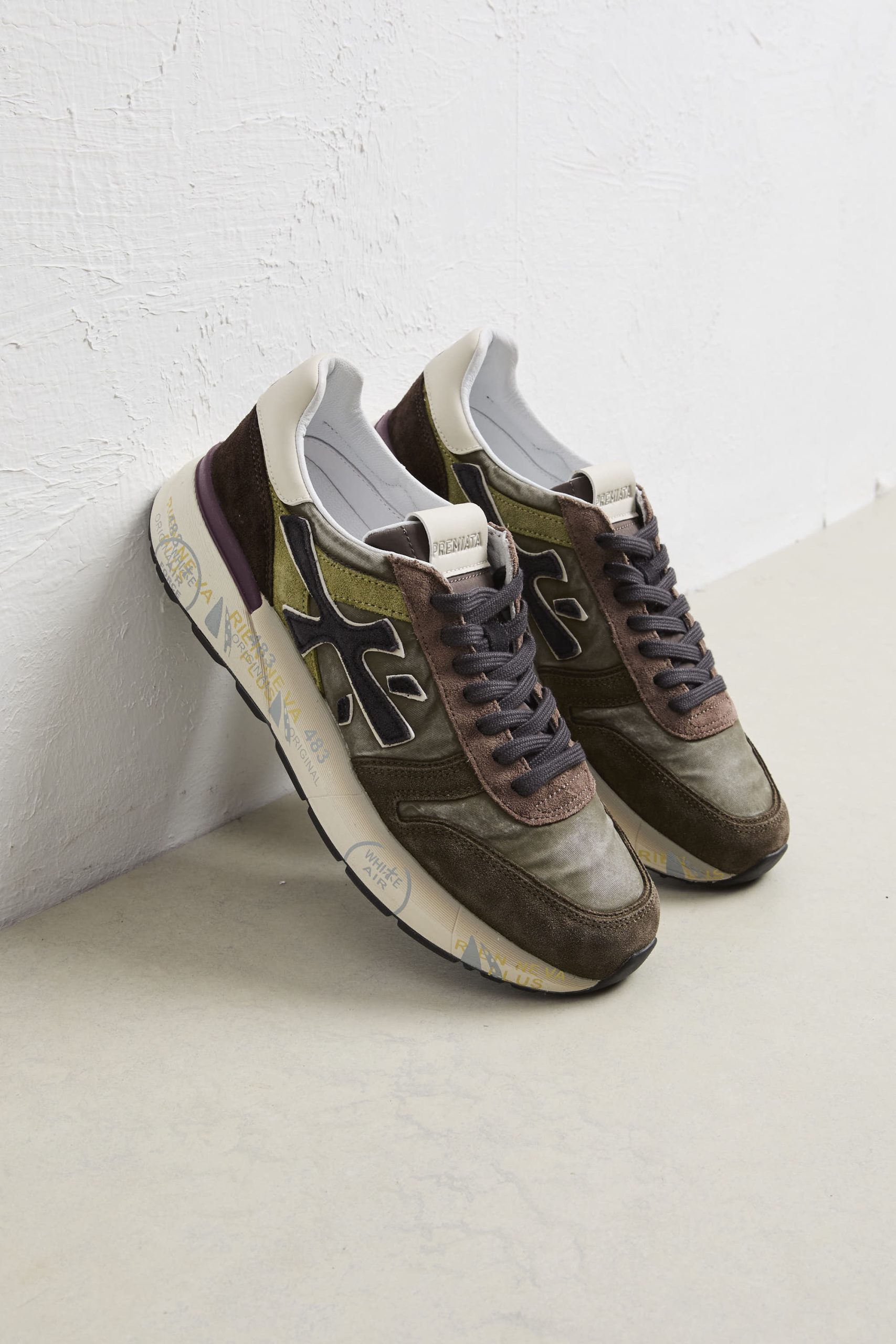 • Logo: logo laterale distintivo “Premiata” e spoiler a contrasto sulla suola