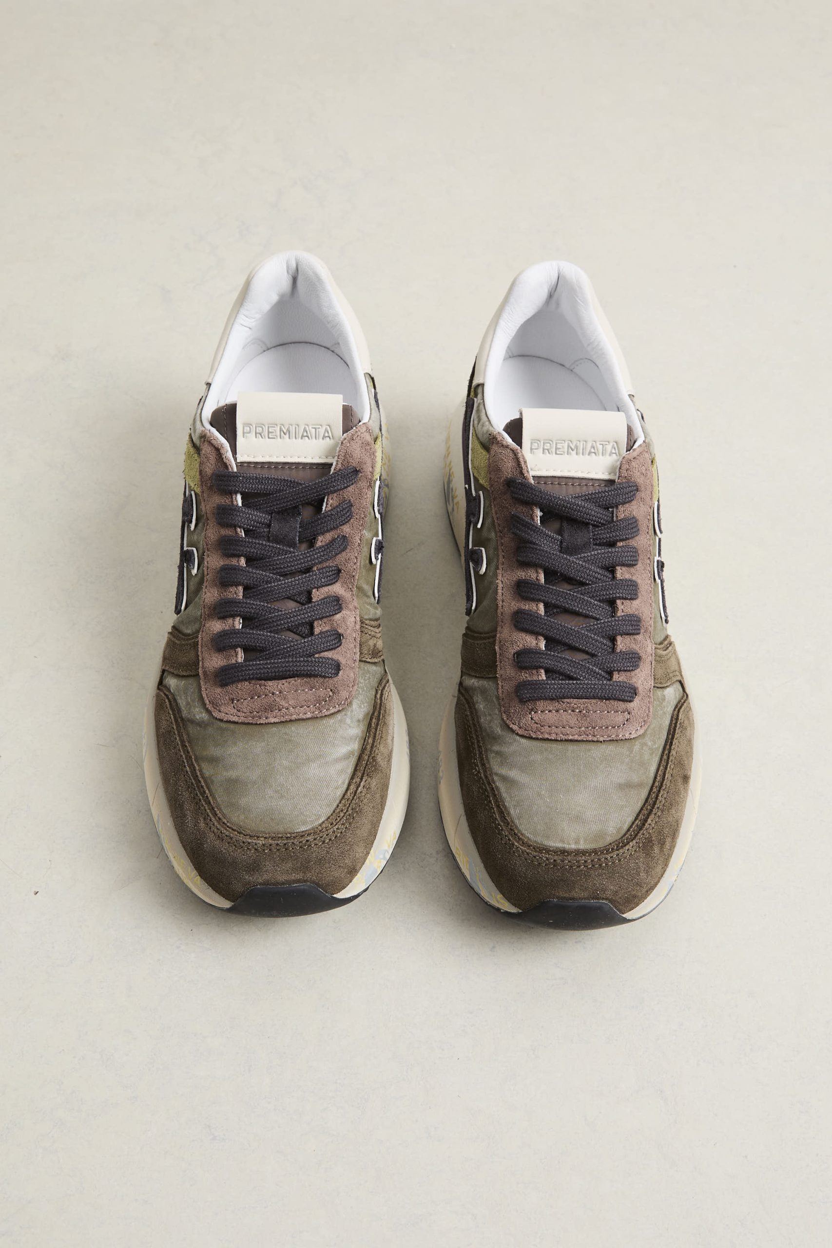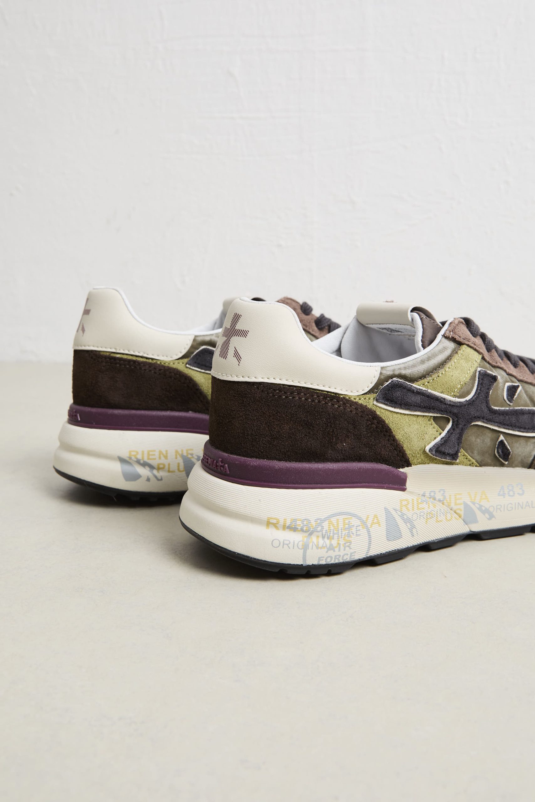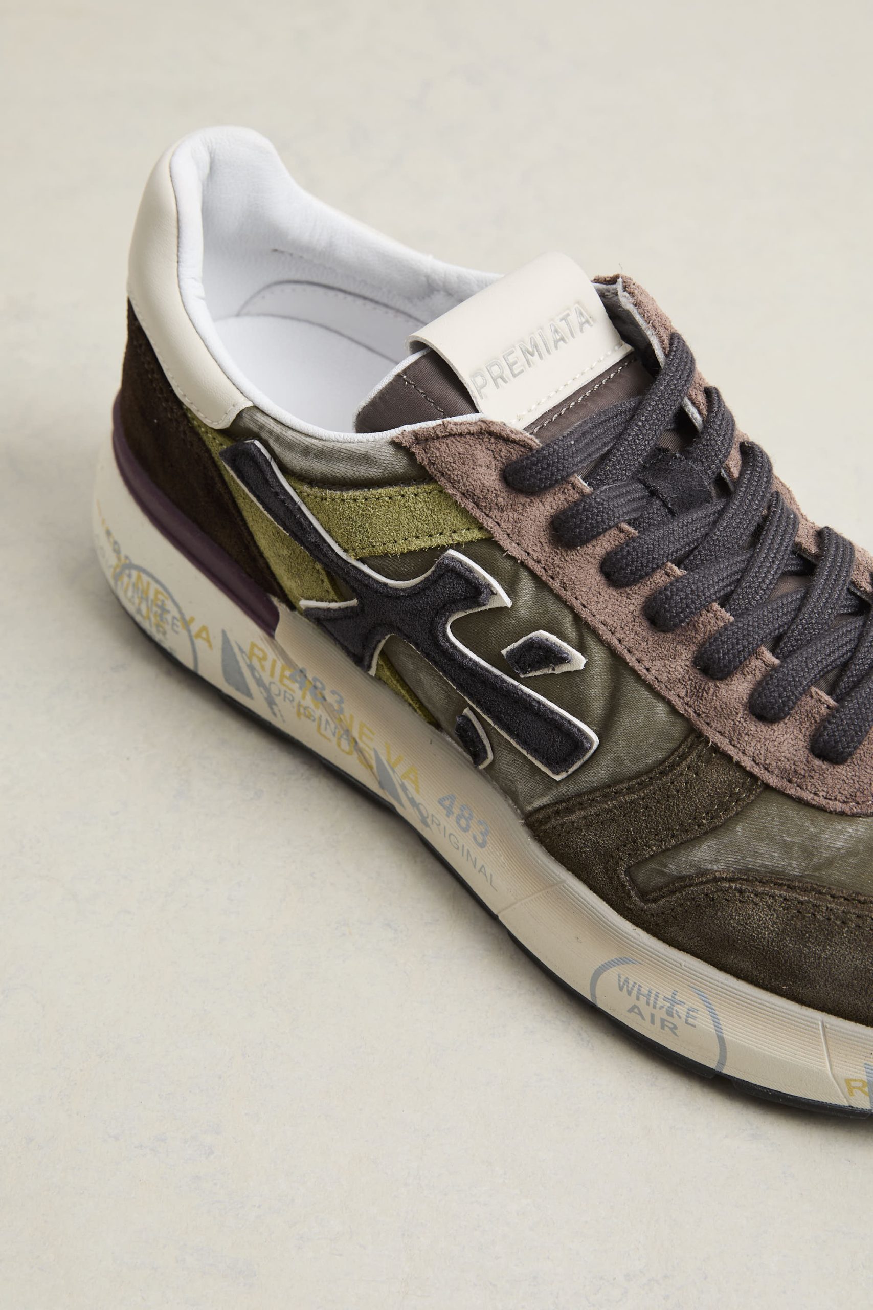• Logo: logo laterale distintivo “Premiata” e spoiler a contrasto sulla suola