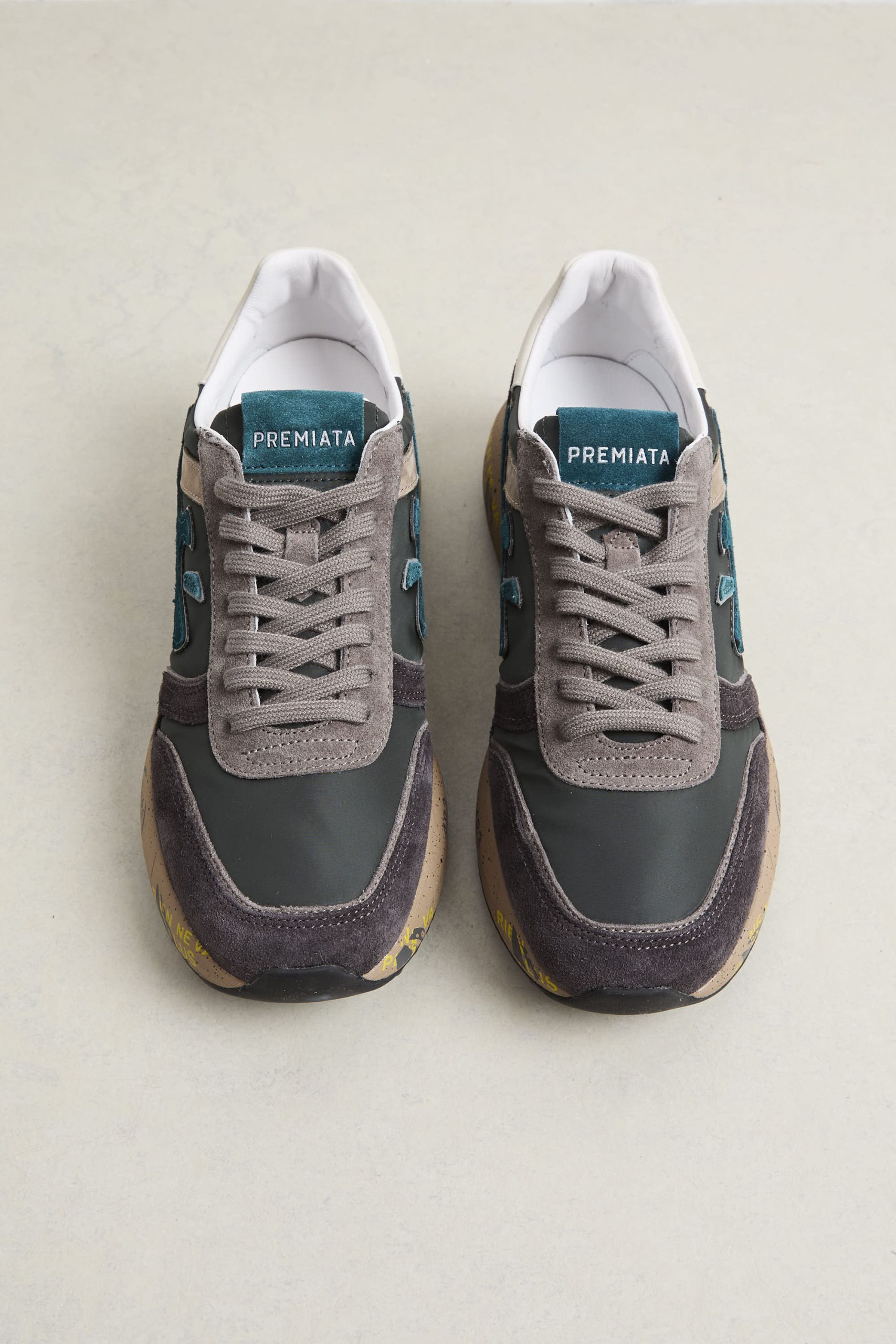 Stile contemporaneo e dettagli sofisticati: Premiata Mick è la sneakers pensata per chi ama un look urbano senza rinunciare al comfort. La combinazione di materiali premium e inserti in suede aggiunge profondità e carattere, mentre la suola leggera e ammortizzata garantisce sostegno durante tutta la giornata. Perfetta anche per i look invernali: abbinala a cappotti in lana o piumini tecnici, pantaloni chino o jeans scuri, e completa con maglioni a collo alto o gilet imbottiti per un mix di stile e comfort nelle giornate più fredde.