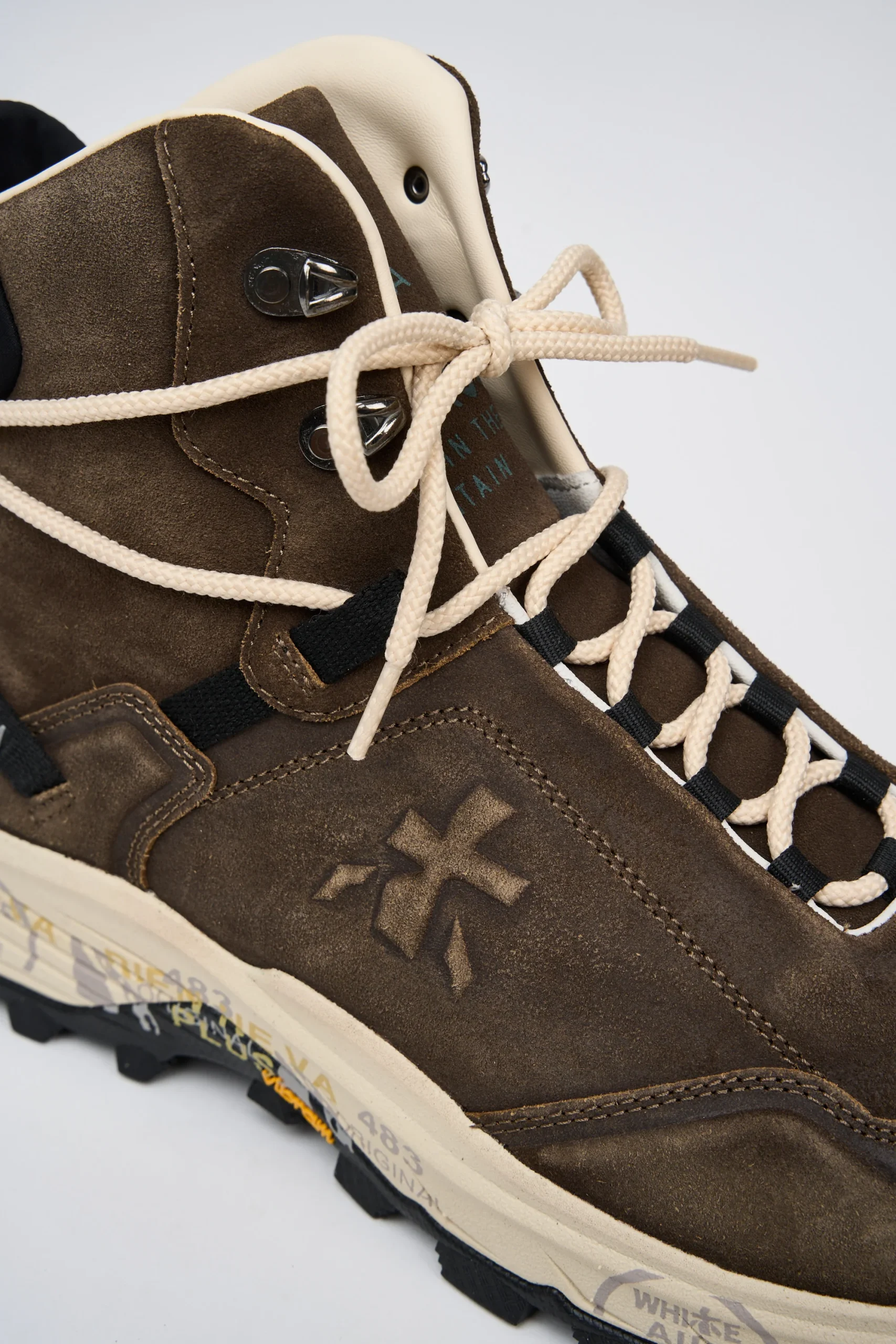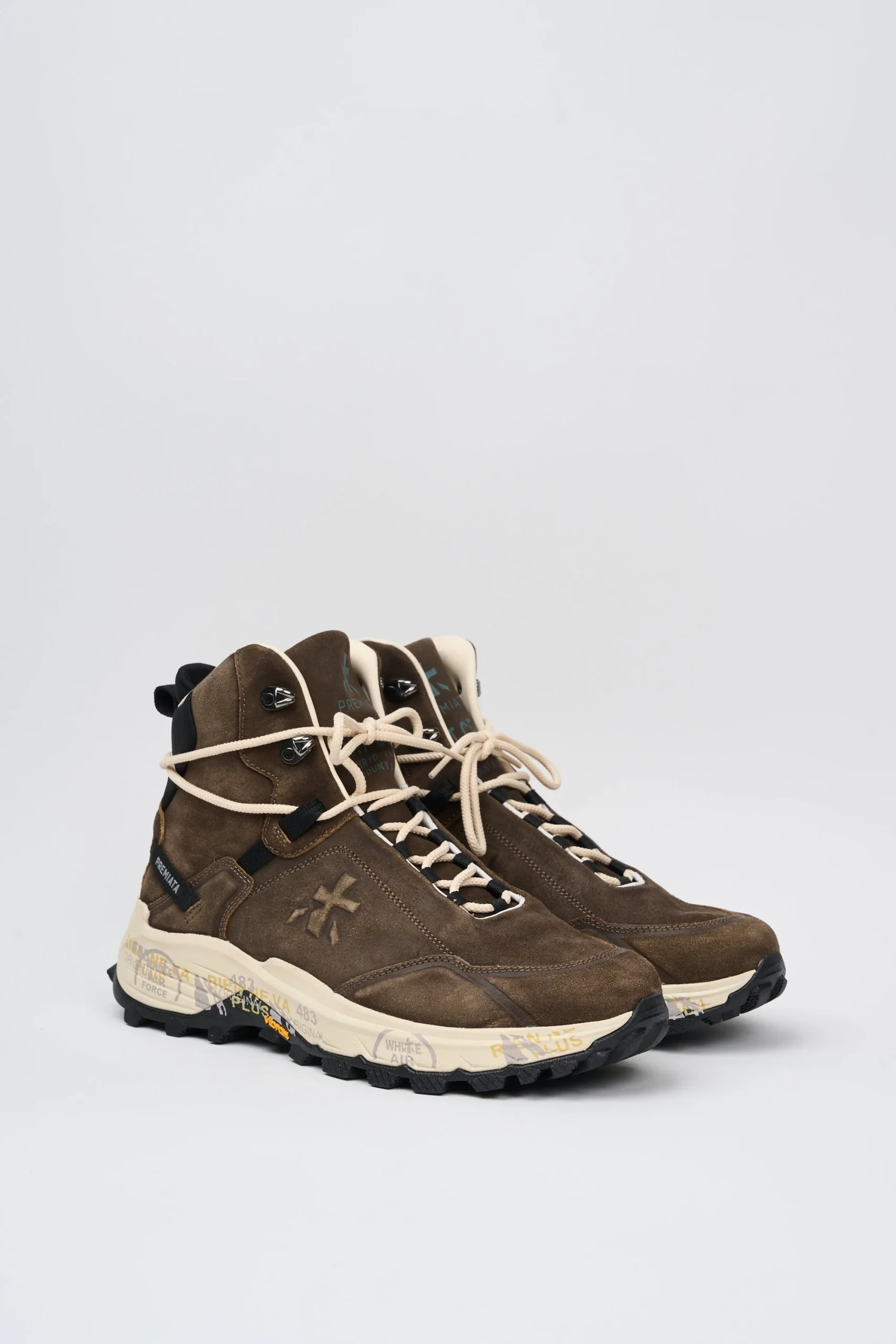 Un modello di sneaker che va ad inserirsi nel mondo outdoor, coniugando tecnica, fascino e performance. I materiali impiegati e il fondo Vibram ne aumentano le prestazioni e il comfort. La versione alta della CROSS-TRAIL con la caratteristica firma PREMIATA ed il logo sul laterale. E’ ideale per un tocco di modernità ad un outfit casual.