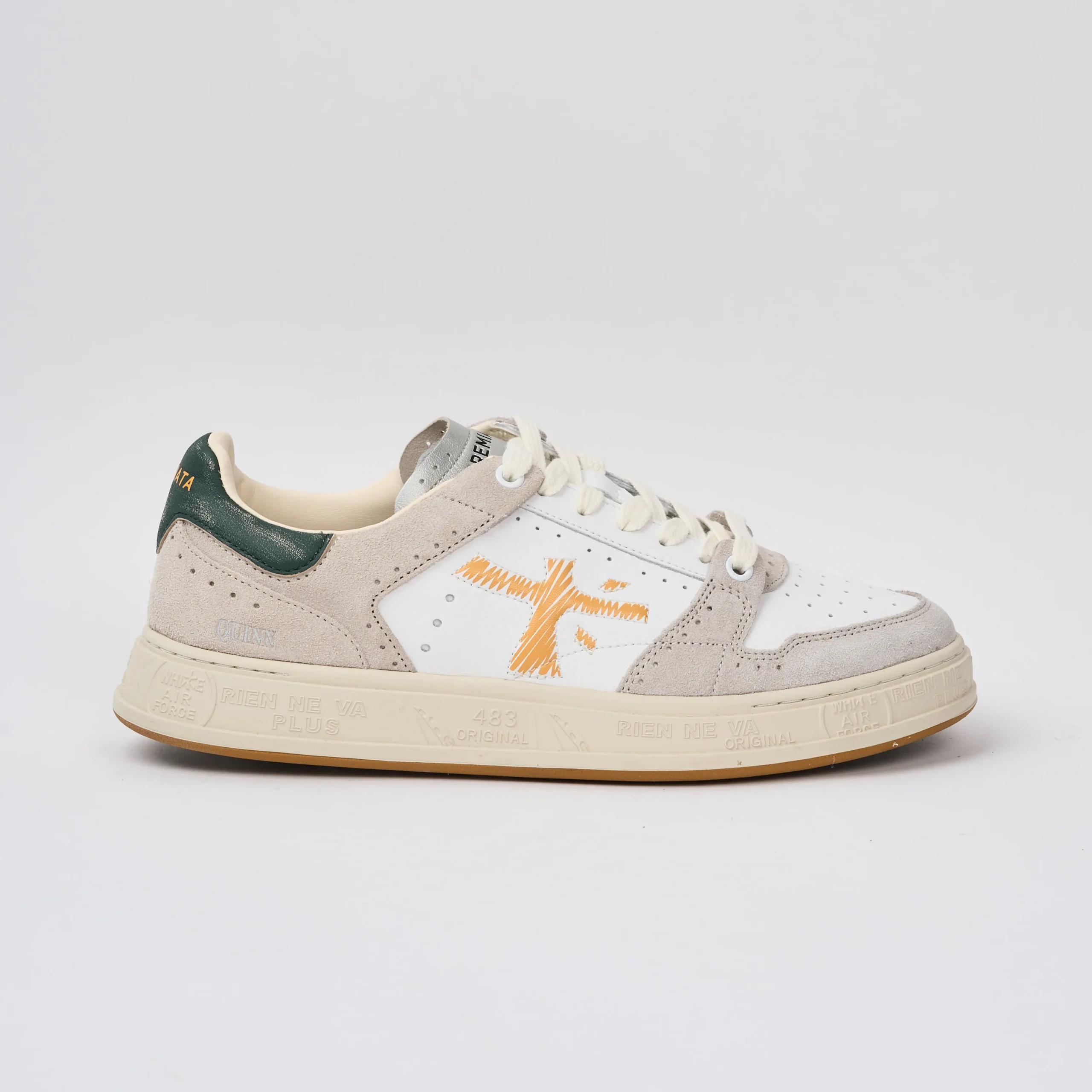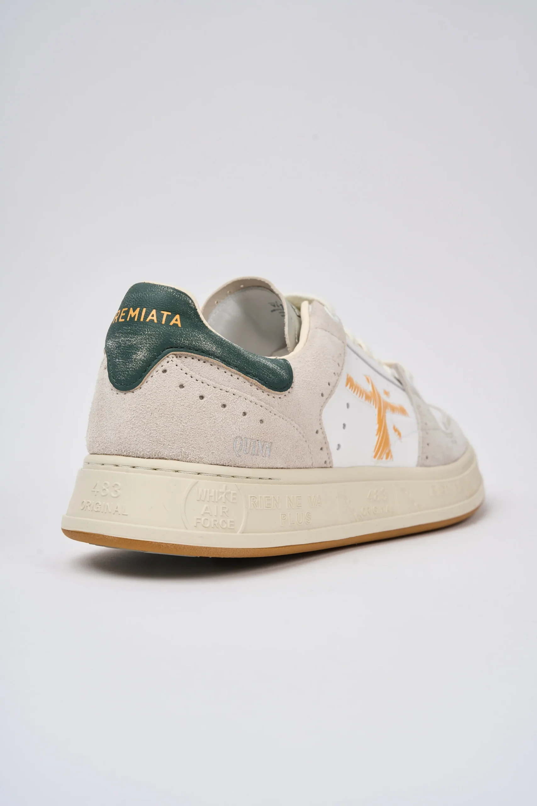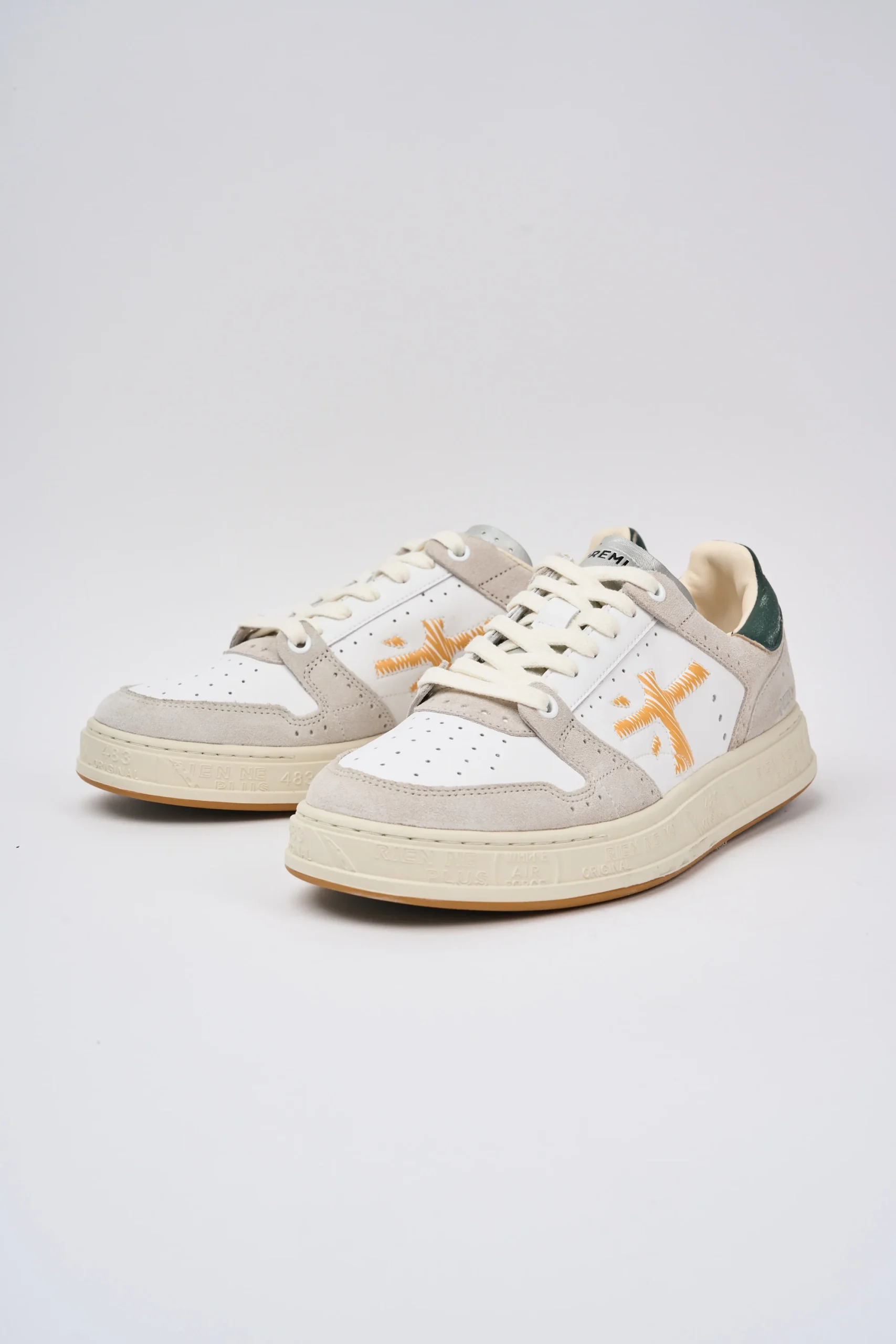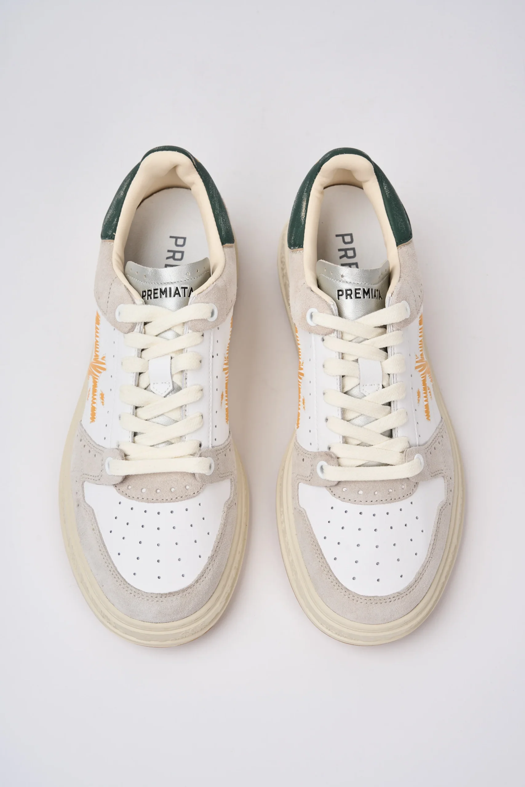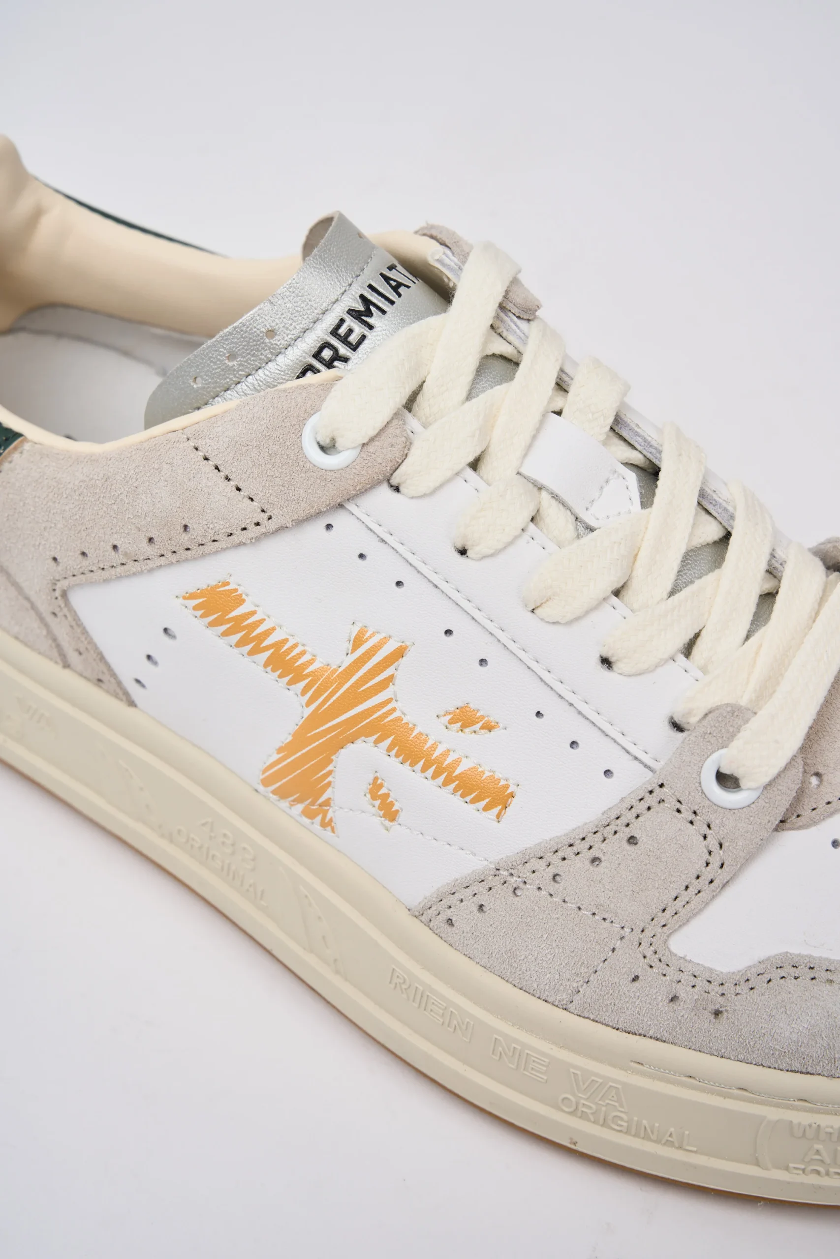 Creata per reinterpretare il mondo Sport in chiave couture, ricca di dettagli come, per esempio, i numerosi fori che ne caratterizzano il design. Fori che si ispirano alle lavorazioni “Brogue” del mondo classico in cui Premiata affonda le proprie radici.