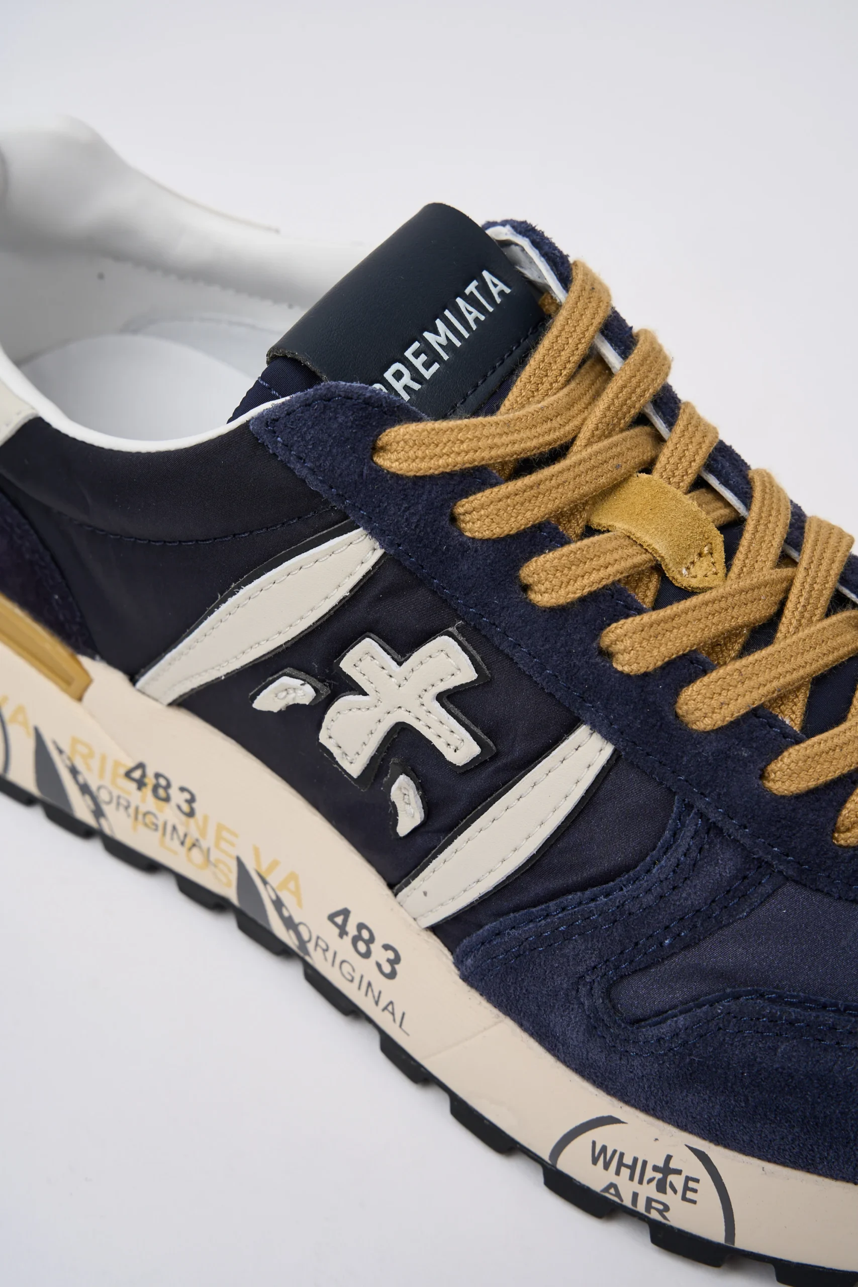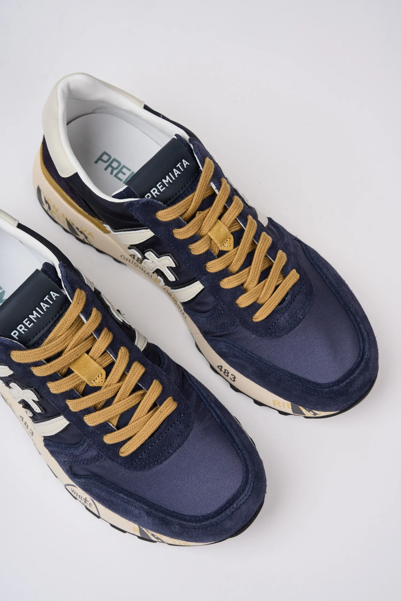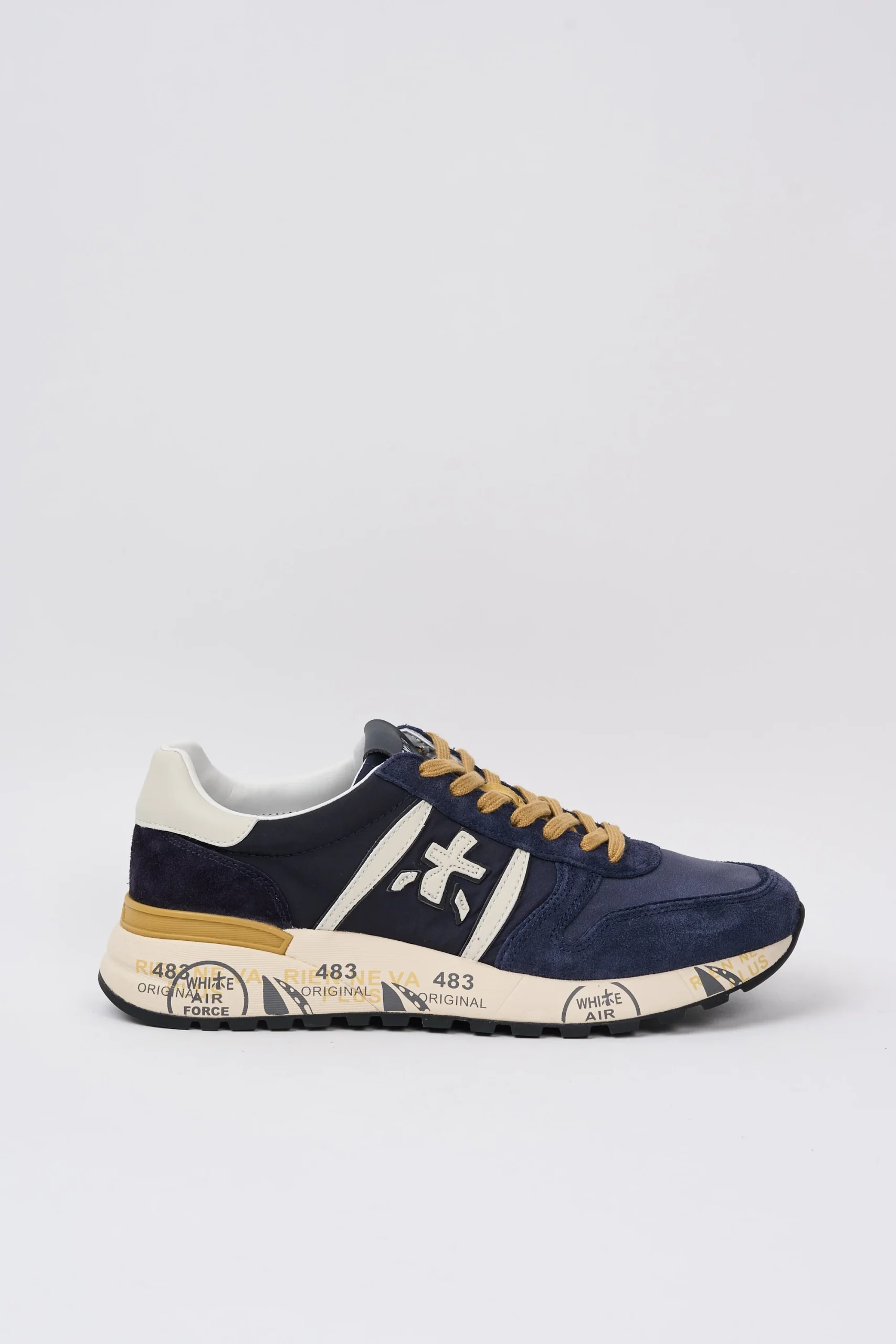 Dettagli: Tomaia in suede morbida e nylon; Talloncino è in pelle bianco con il logo stampato in contrasto; Linguetta con logo stampato; Soletta in pelle ergonomica ed estraibile con logo; Punta tonda; Chiusura frontale con lacci di colore senape; Suola piatta in gomma; Logo piccolo bianco di lato; Modello basso; Sul fondo sono presenti la classica scritta nome del brand; Altezza tallone dal suolo: 4,2 cm; Var: 6904