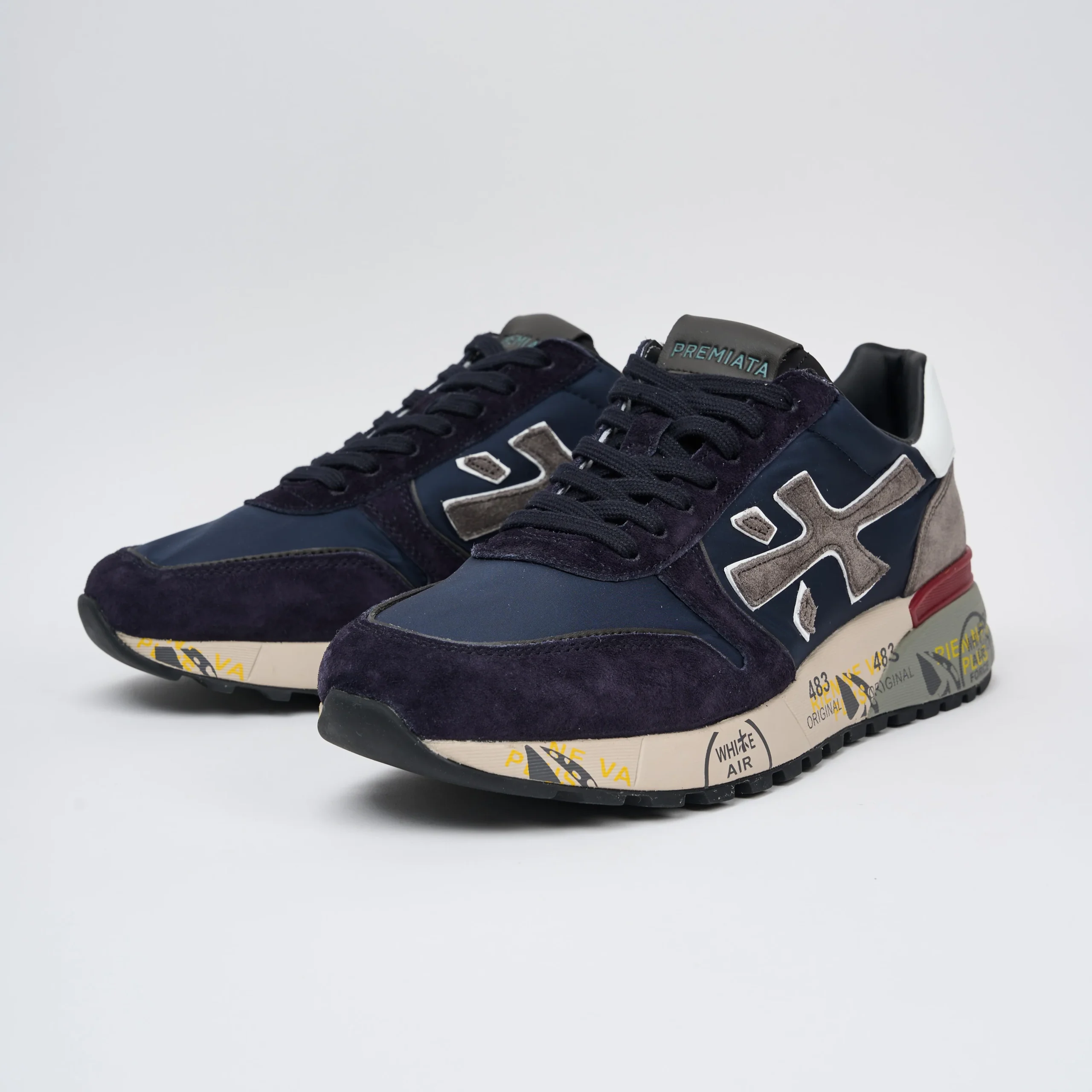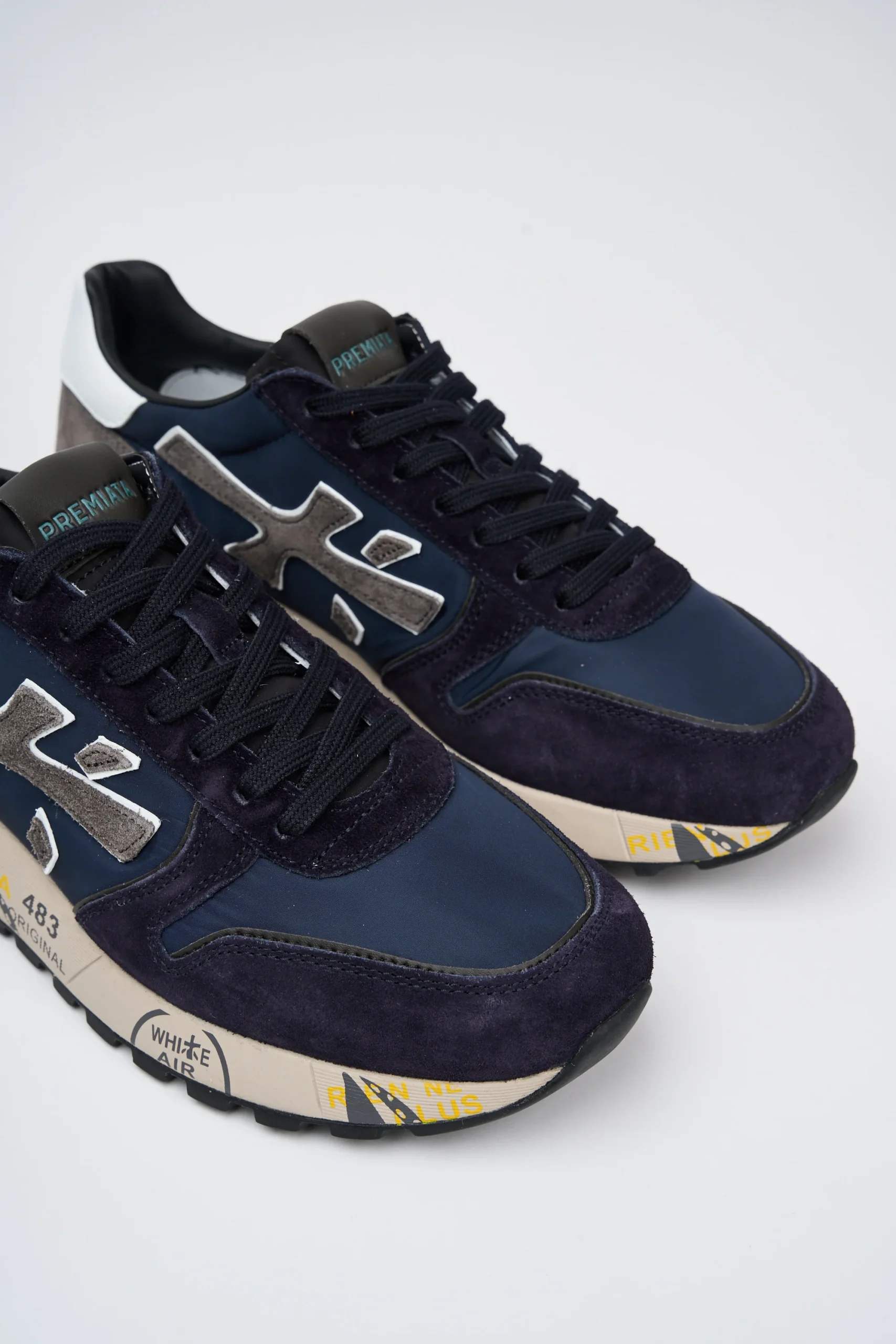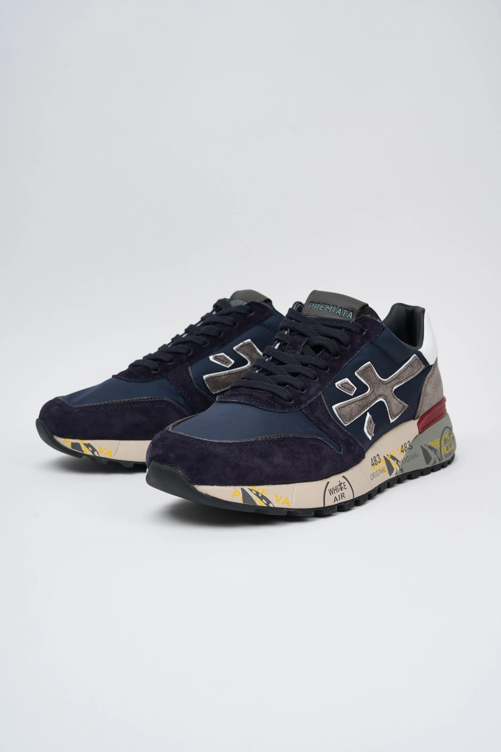 Sneakers Mick in mix di materiali e pellami di qualità . La scarpa è realizzata con dettagli e colori a contrasto per uno stile casual. L’iconica silhouette è arricchita dal logo Premiata e dallo spoiler sulla suola.