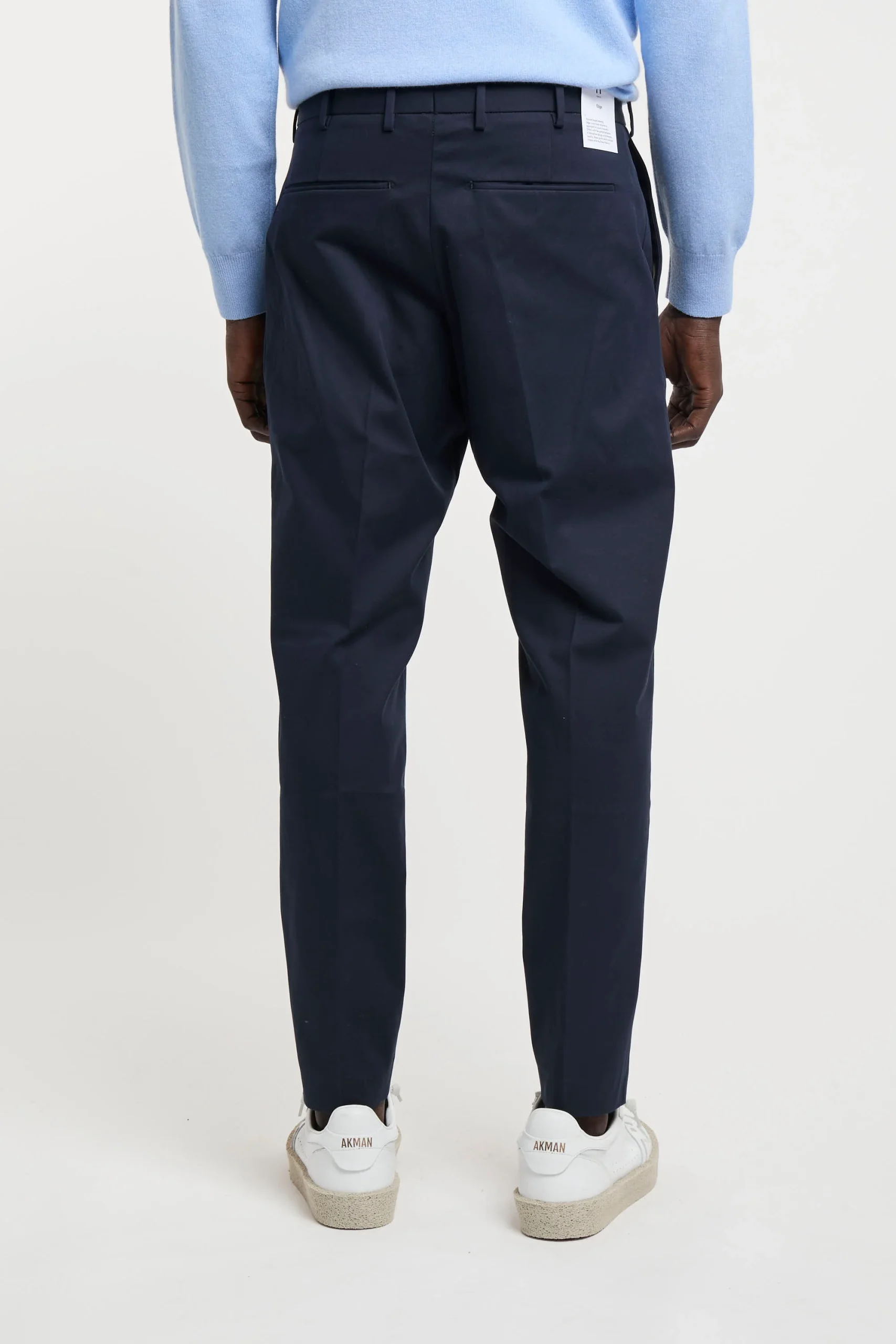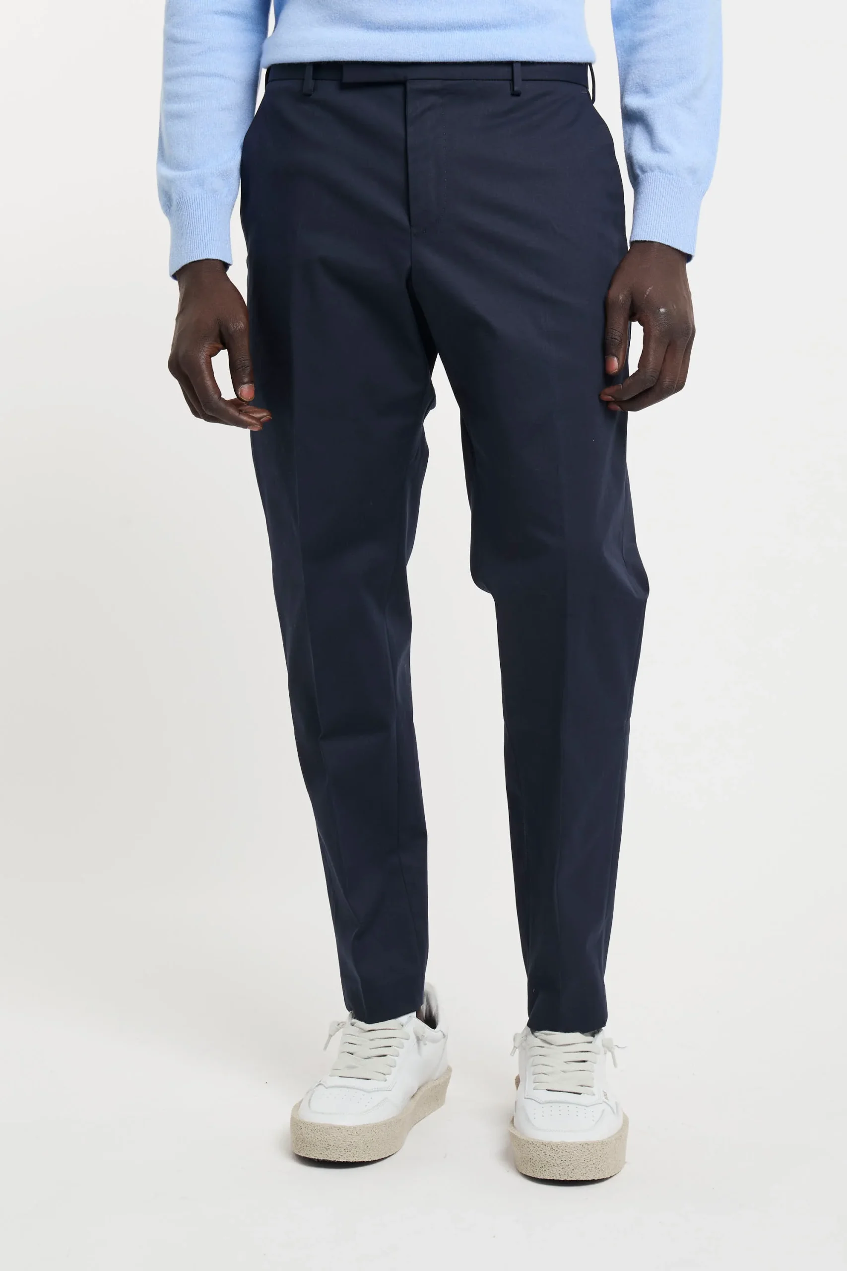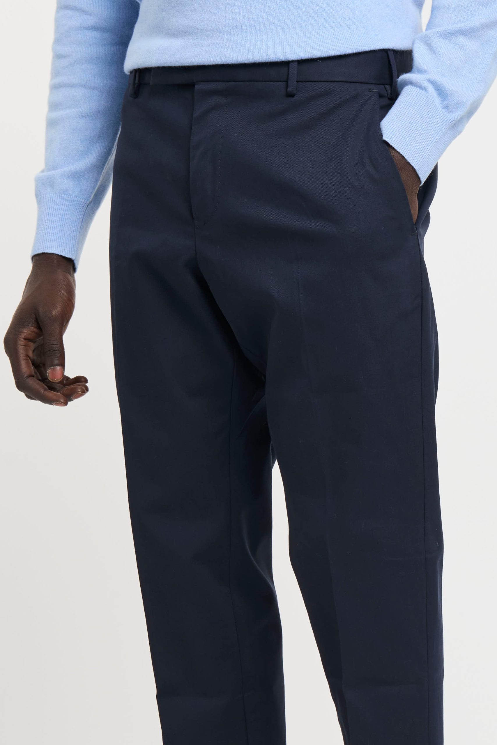 Pantalone in cotone; Chiusura con zip e gancio metallico; Passanti per la cintura; Doppia tasca a filo e tasche posteriori; Gamba dritta che si ristringe in fondo; Lunghezza alla caviglia; Logo in evidenza; Composizione: 98% Cotone, 2% Elastane; Larghezza fondo: 17 cm