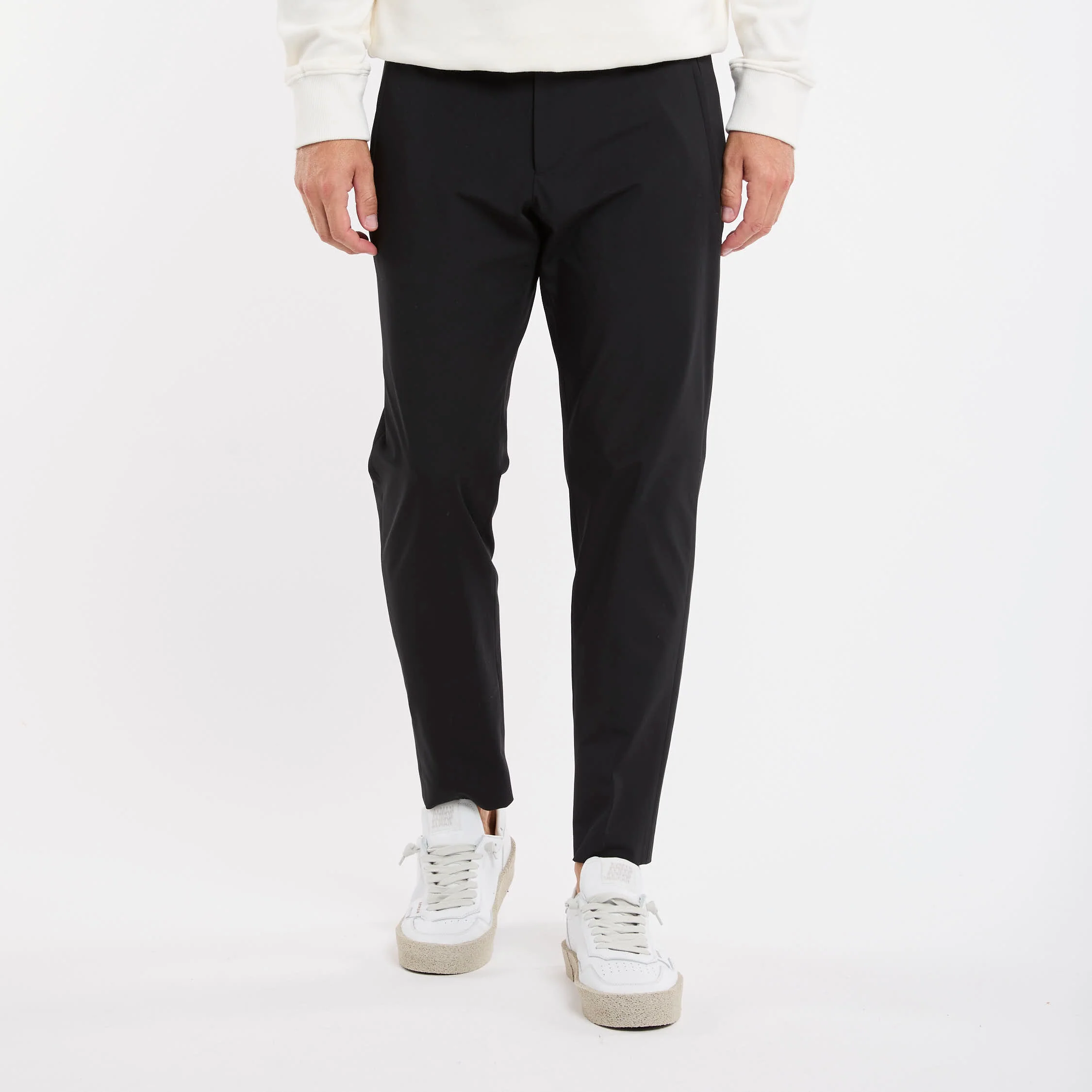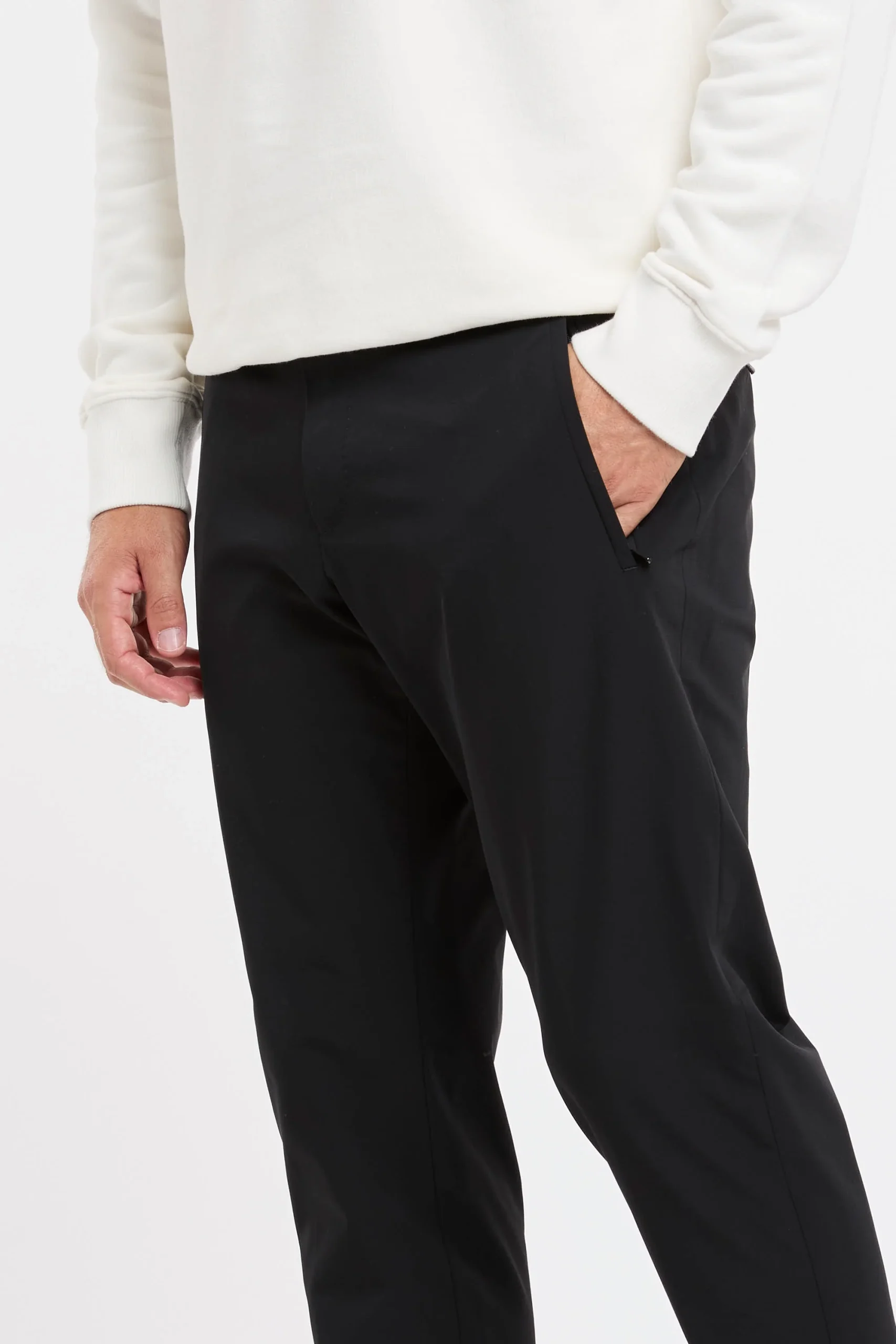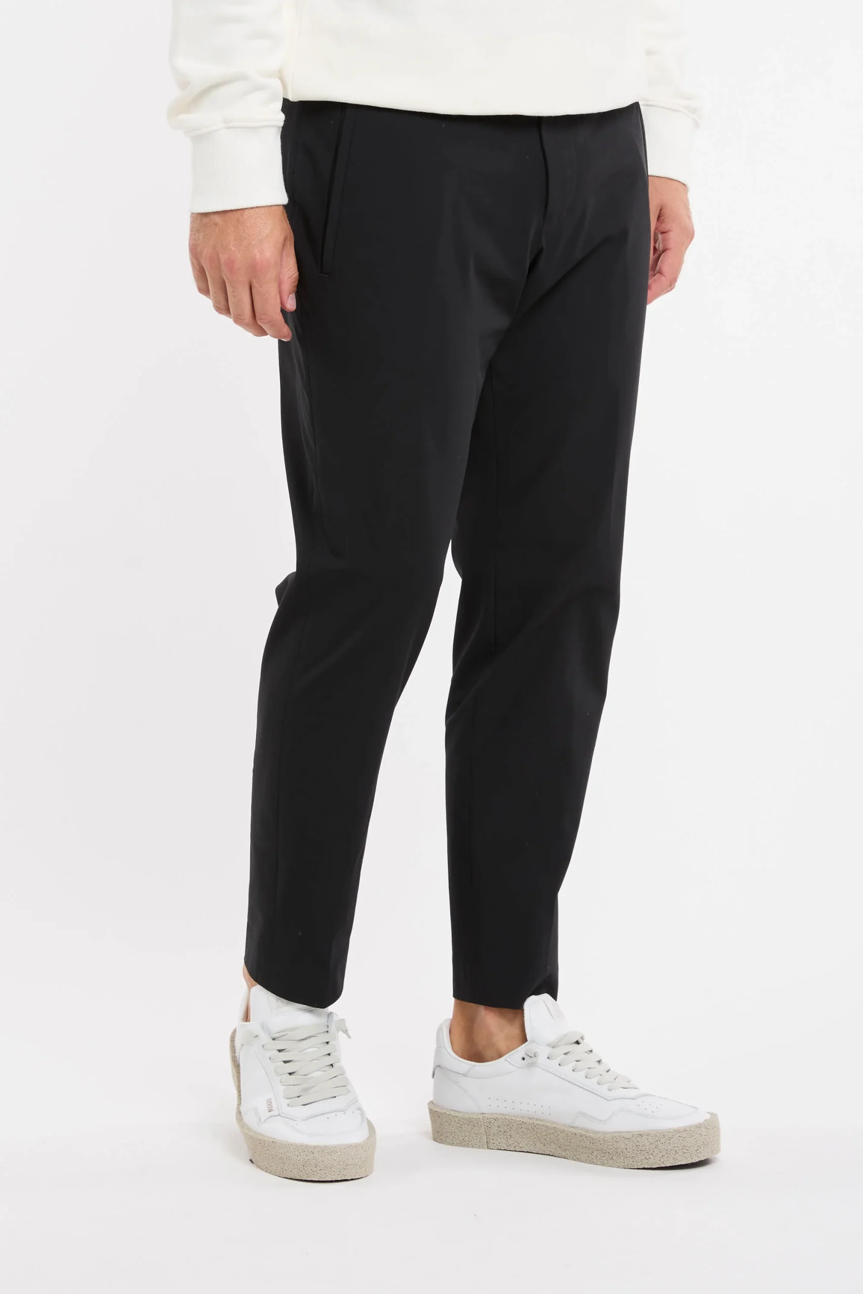 Pantalone misto cotone; Tessuto stretch active; Chiusura con zip e bottone automatico; Passanti per la cintura; Doppia tasca a filo e tasche posteriori con zip; Gamba dritta che si ristringe in fondo; Lunghezza alla caviglia; Logo in evidenza; Composizione: 48% Cotone, 46% Poliammidica, 6% Elastan; Larghezza fondo: 17,5 cm