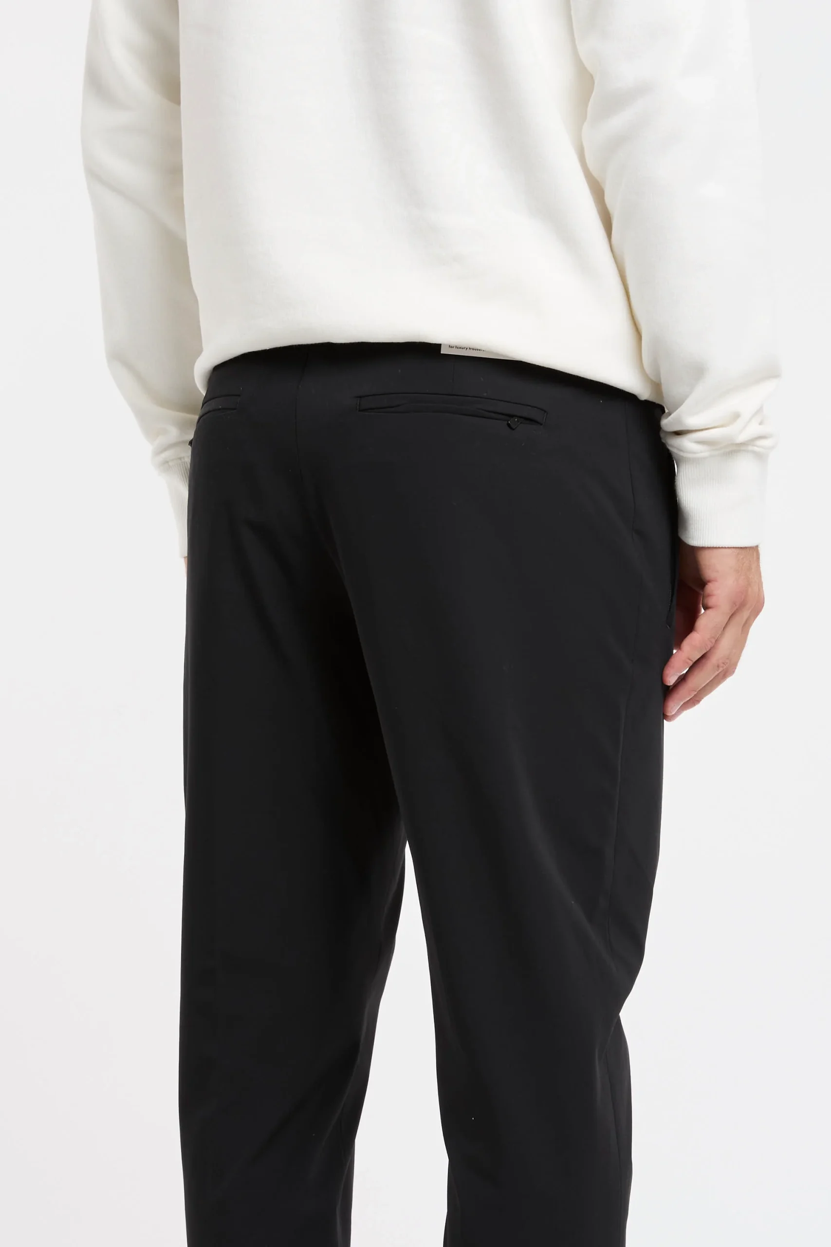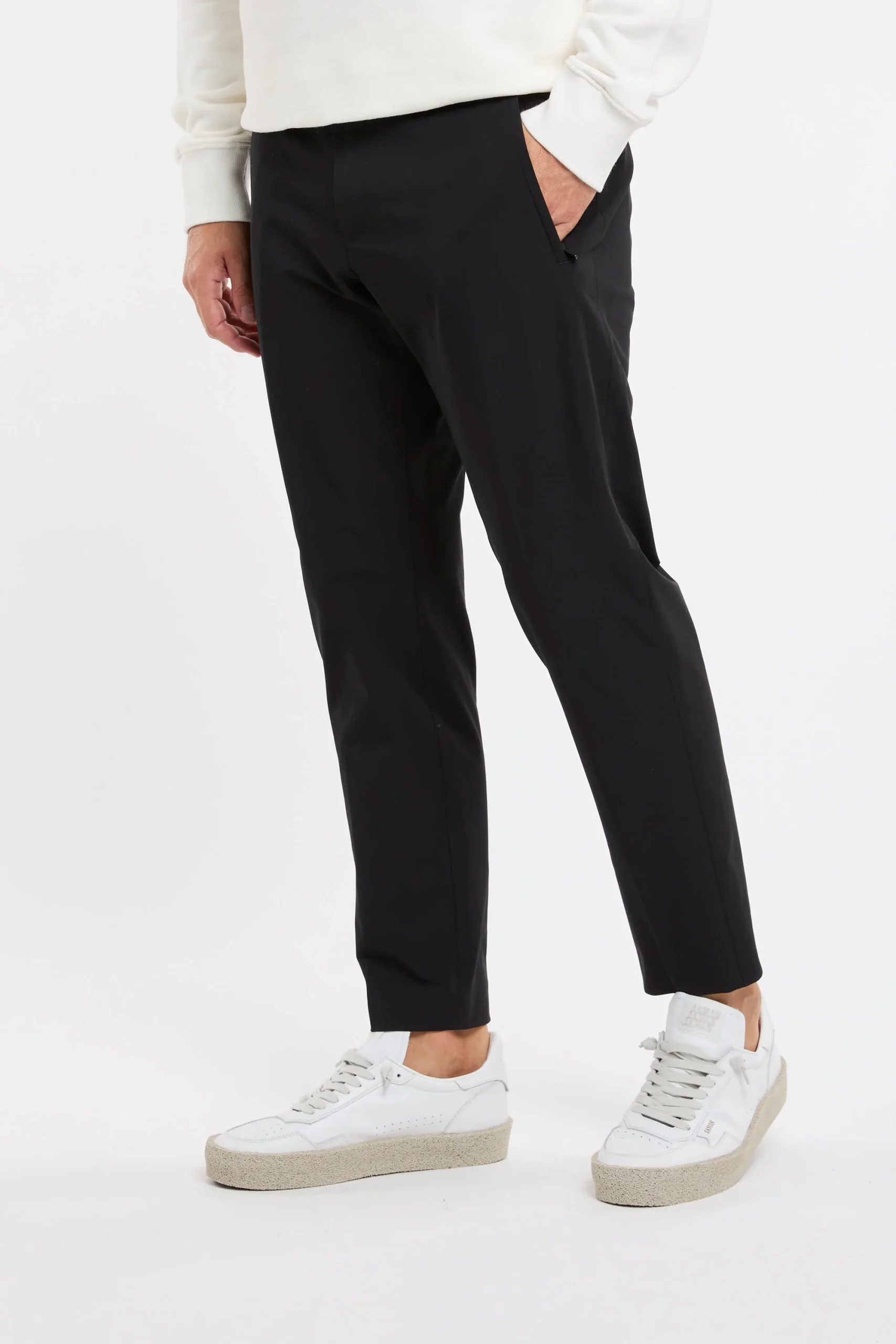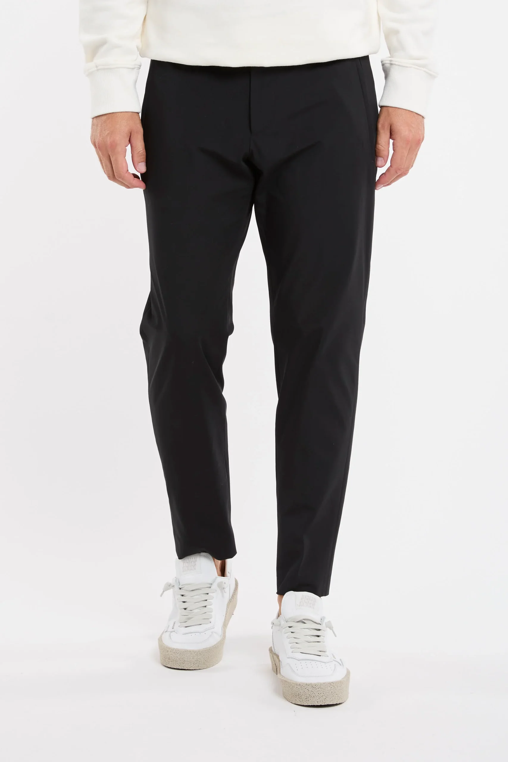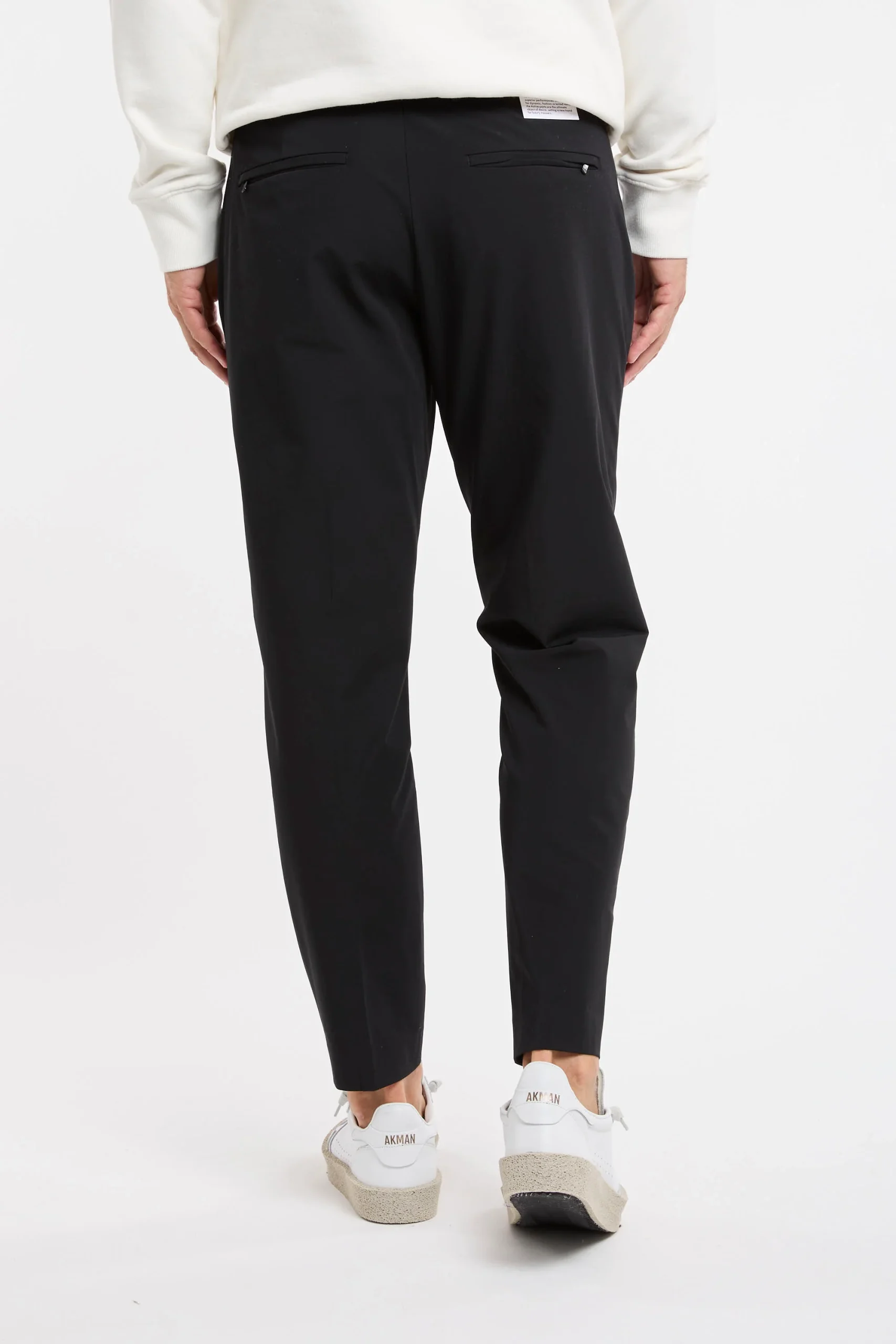 Pantalone misto cotone; Tessuto stretch active; Chiusura con zip e bottone automatico; Passanti per la cintura; Doppia tasca a filo e tasche posteriori con zip; Gamba dritta che si ristringe in fondo; Lunghezza alla caviglia; Logo in evidenza; Composizione: 48% Cotone, 46% Poliammidica, 6% Elastan; Larghezza fondo: 17,5 cm