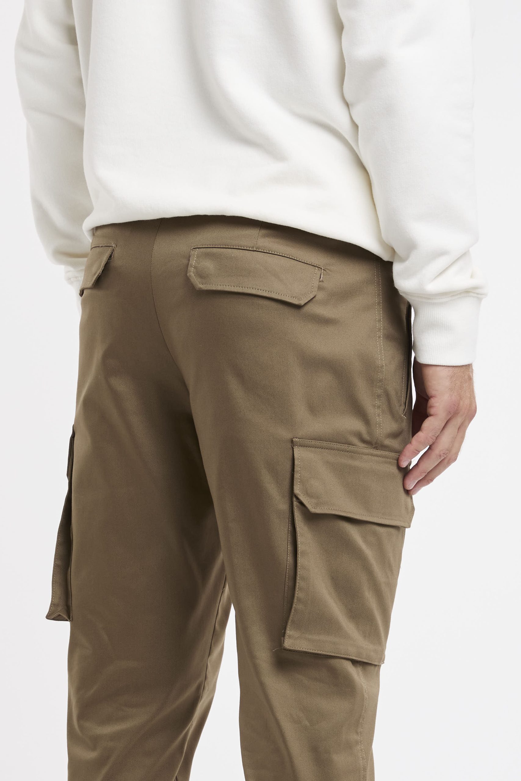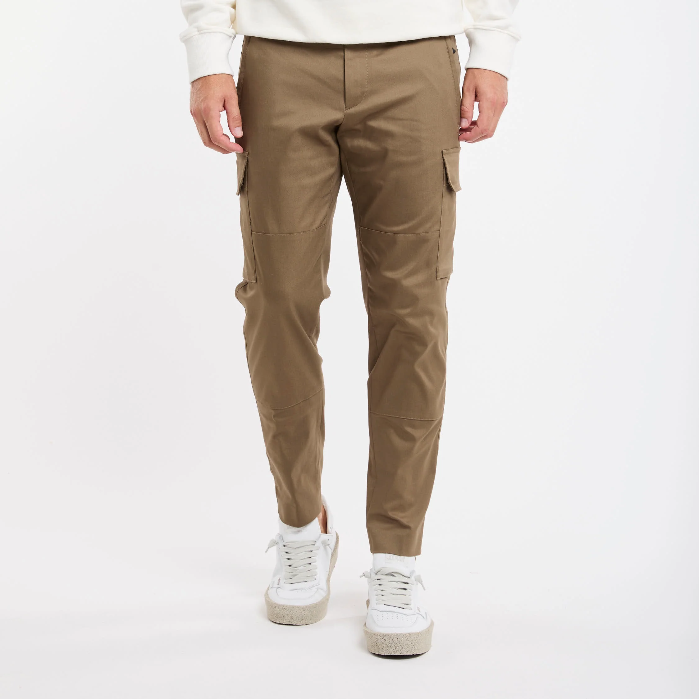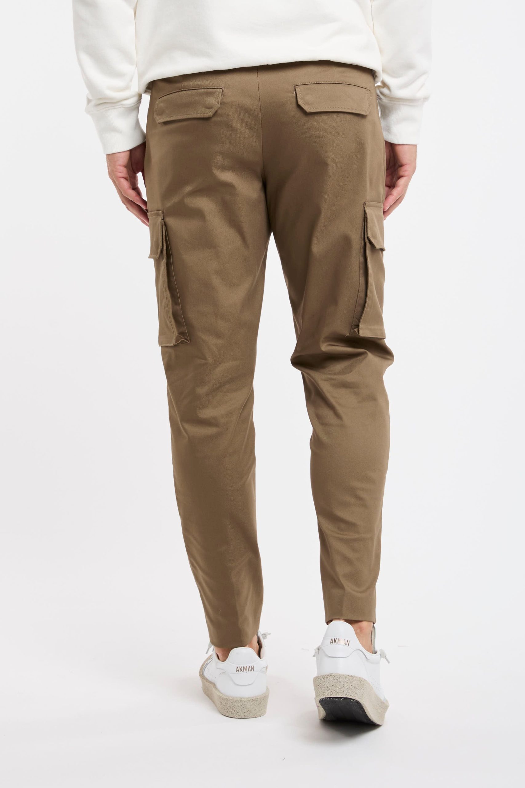 Pantalone tasconato in misto cotone; Tessuto stretch techno; Chiusura con zip e gancio metallico; Passanti per la cintura; Doppia tasca a filo co la zip e tasche posteriori con patta e bottoni automatici; Gamba dritta che si ristringe in fondo; Lunghezza alla caviglia; Logo in evidenza; Composizione: 60% Cotone, 36% Poliammidica, 4% Elastan; Larghezza fondo: 16,5 cm