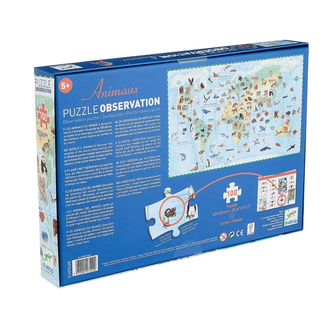 Nella confezione è presente un poster che aiuta i bimbi nella composizione del puzzle Come tutti i puzzle Djeco questo puzzle per bambini ti stupirà per la vivacità e la nitidezza dei colori. Nella scatola troverete anche un manuale per imparare i nomi degli animali e le regioni del mondo nelle quali vivono. Età consigliata 5 anni