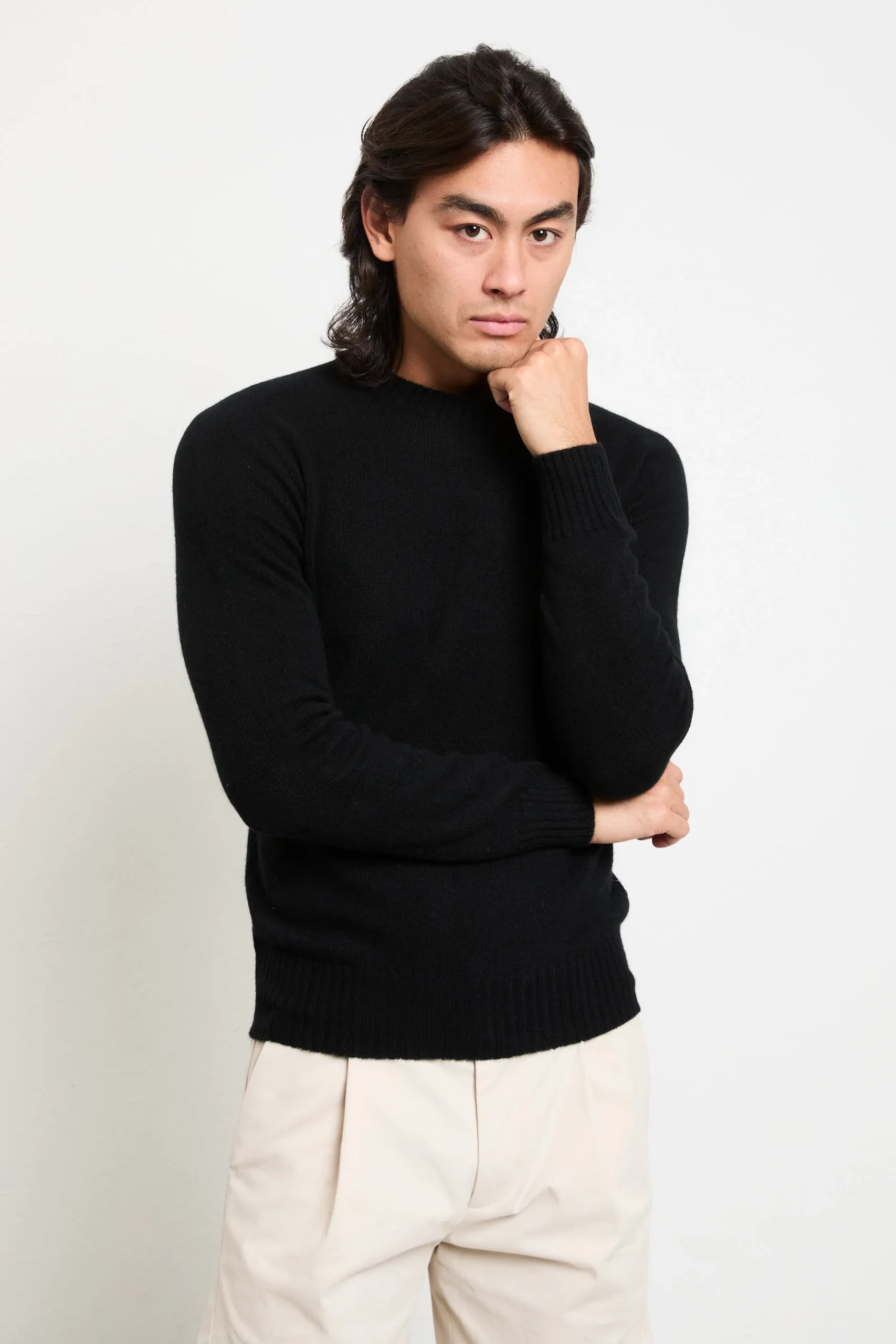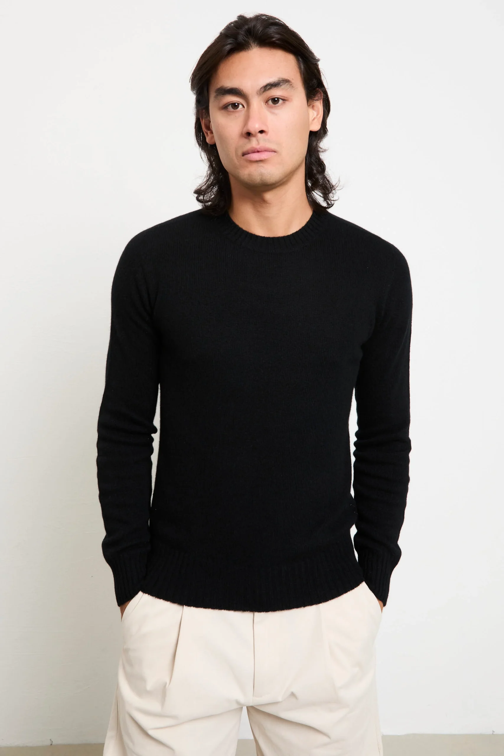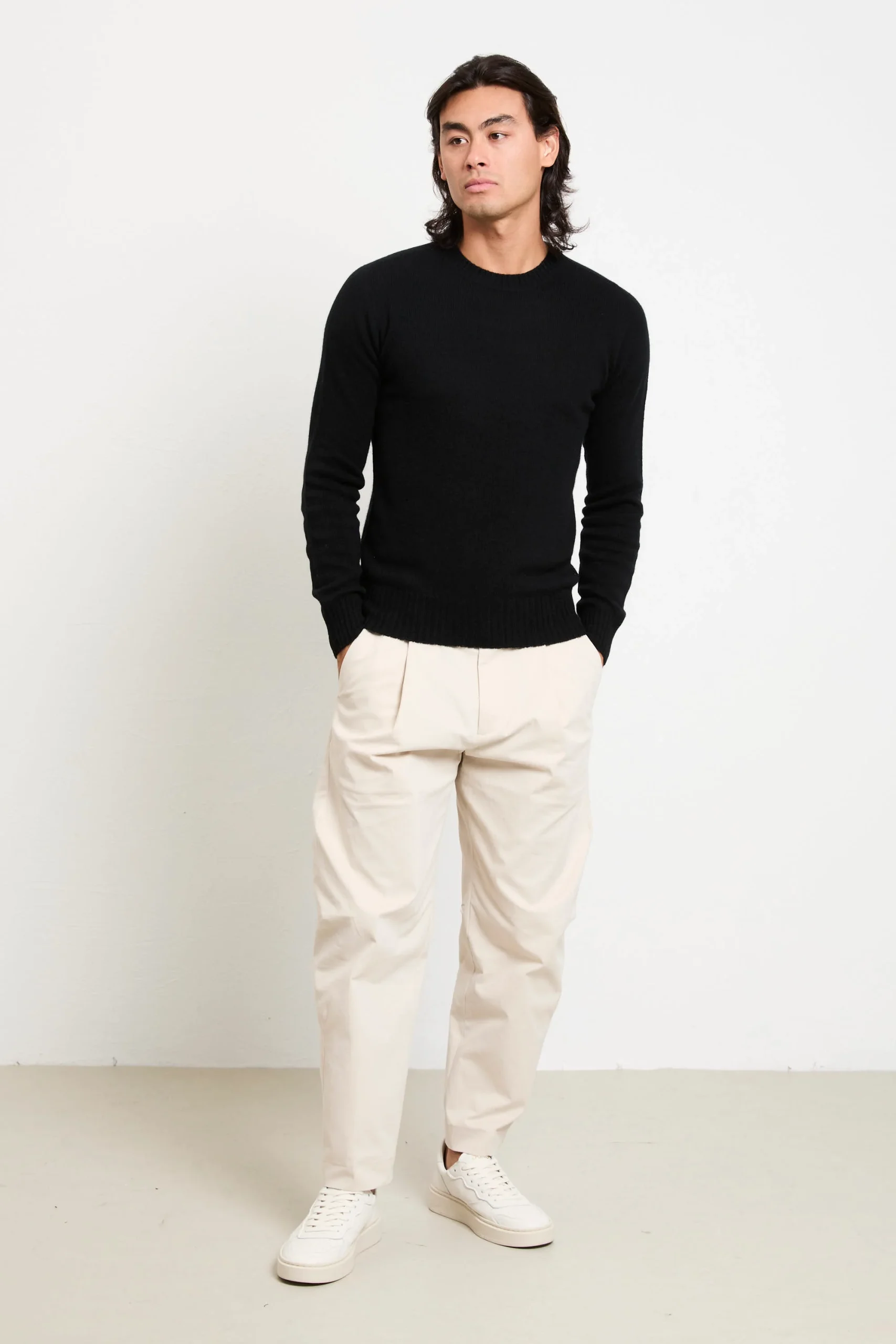 La maglia in puro cashmere di Retois offre una morbidezza impareggiabile e un’eleganza moderna che si presta tanto a un look da ufficio quanto a un momento più informale. Abbinala a pantaloni sartoriali grigio antracite e sneakers bianche per un effetto rilassato‑chic, oppure sotto un blazer blu notte con mocassini in suede per una serata sofisticata.