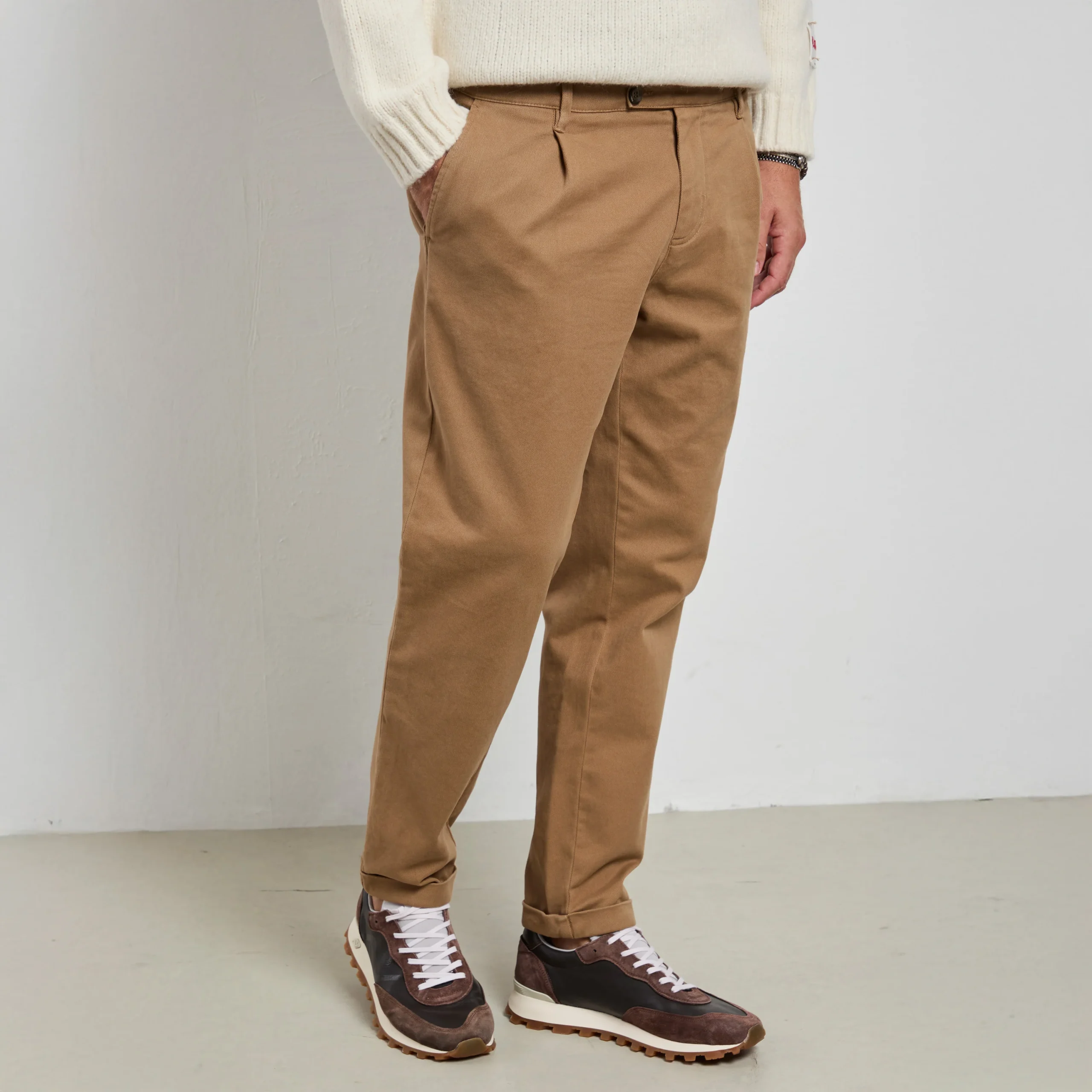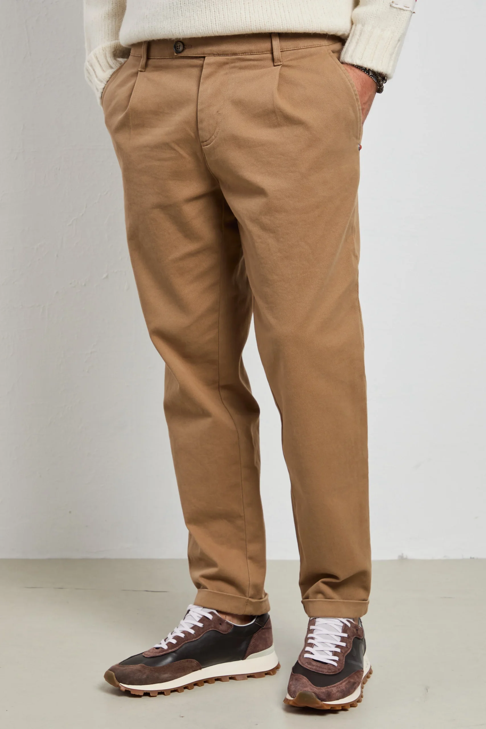 Chino in cotone color cammello dalla linea essenziale, pensati per chi cerca praticità e stile senza tempo. La tela medio-peso assicura comfort e resistenza, perfetti da indossare con sneakers e maglione per un look casual, oppure con camicia e giacca per un’occasione più elegante. Un capo versatile che accompagna con naturalezza ogni stagione.